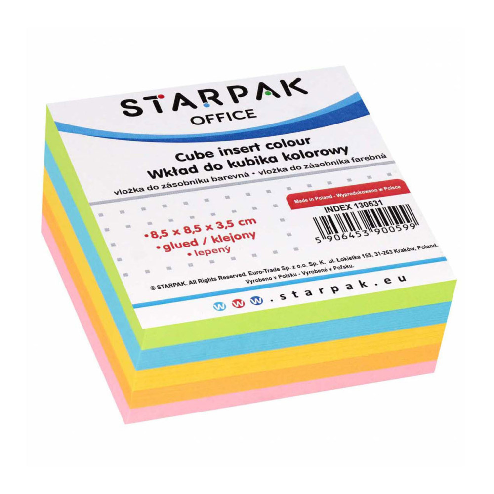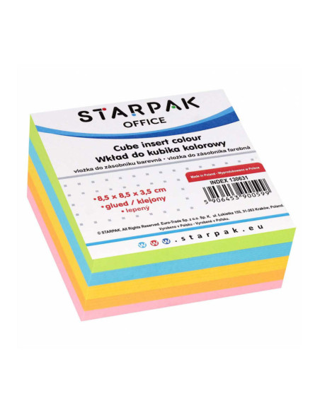 Ongelijmd notitieblokje. De afmeting van het papier is 85 x 85 x 35 mm.