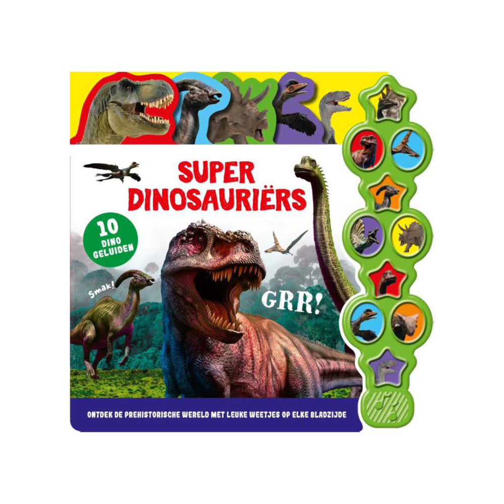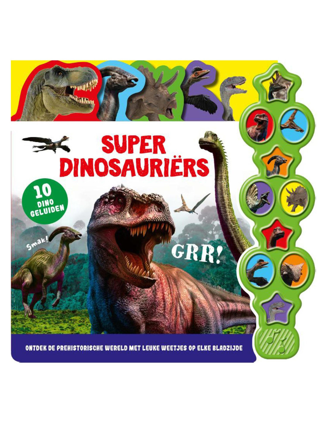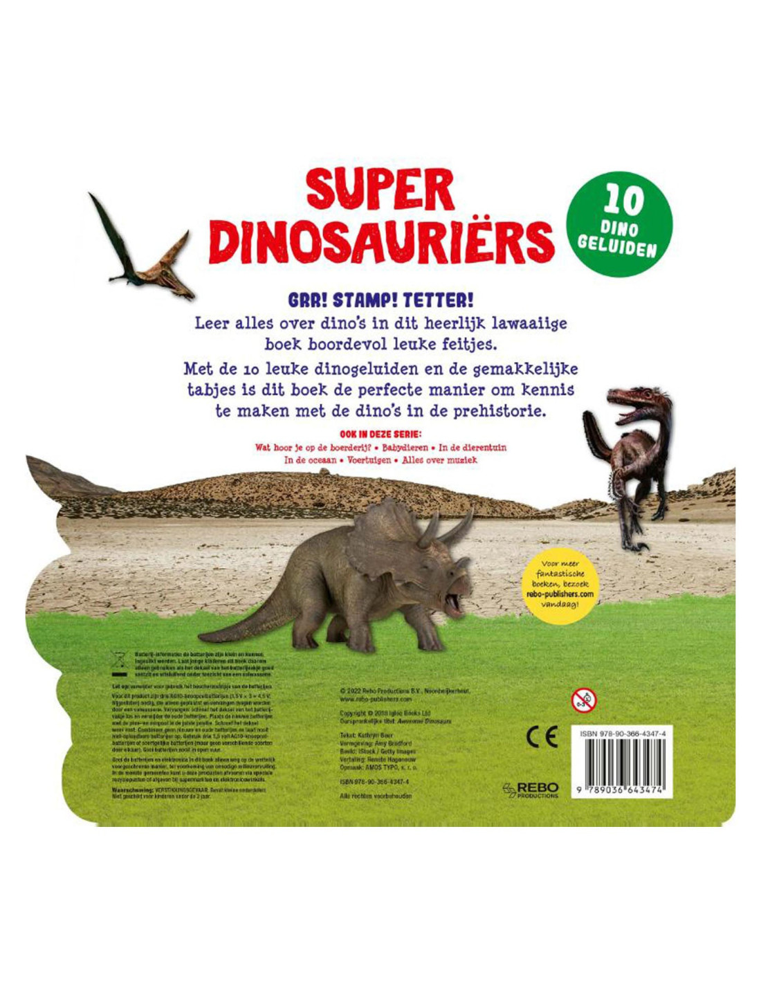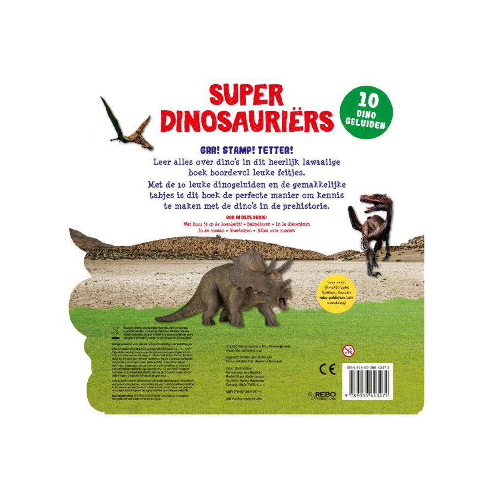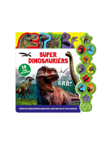 Leer alles over dino’s in dit heerlijk lawaaiige boek boordevol leuke feitjes. Met de 10 leuke dinogeluiden en de gemakkelijke tabjes is dit boek de perfecte manier om kennis te maken met de dino’s in de prehistorie.