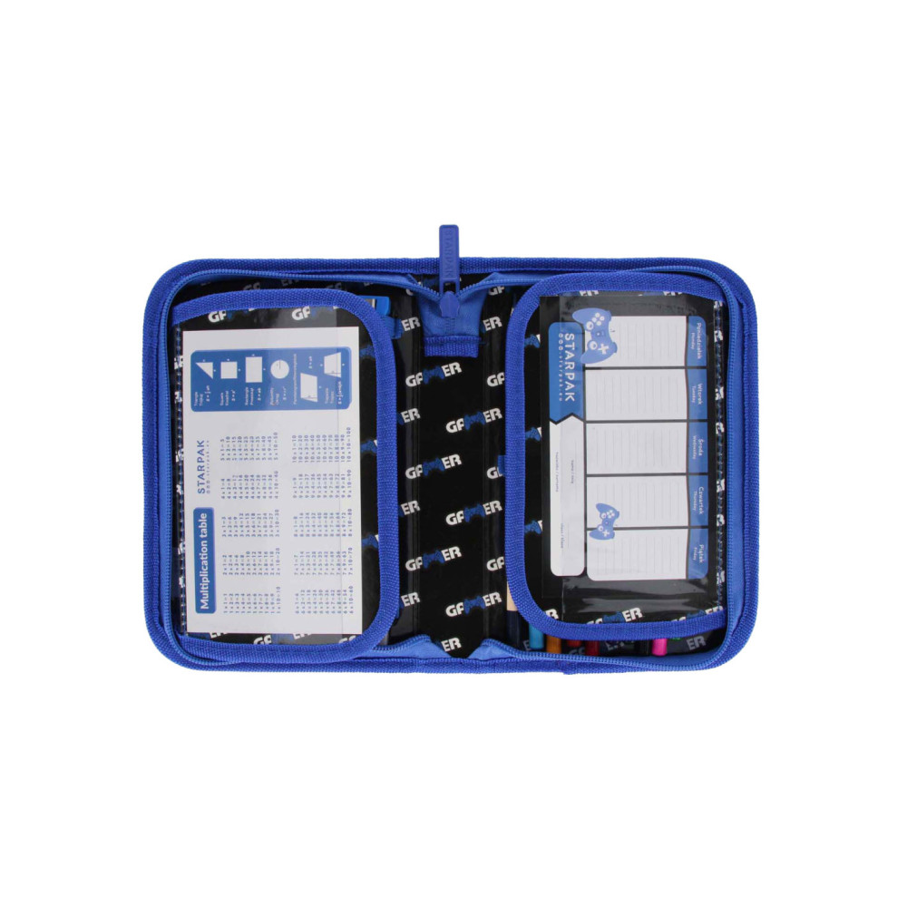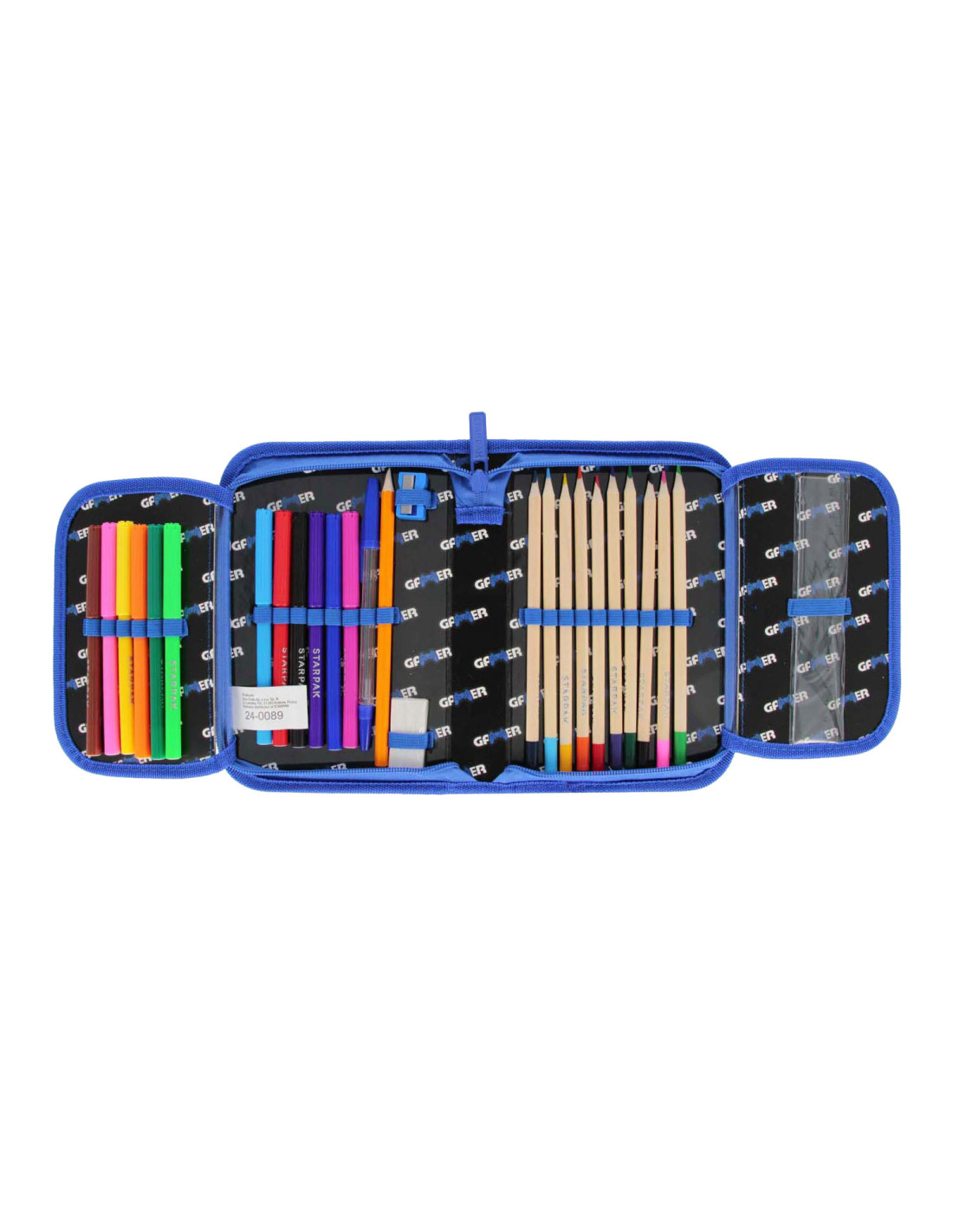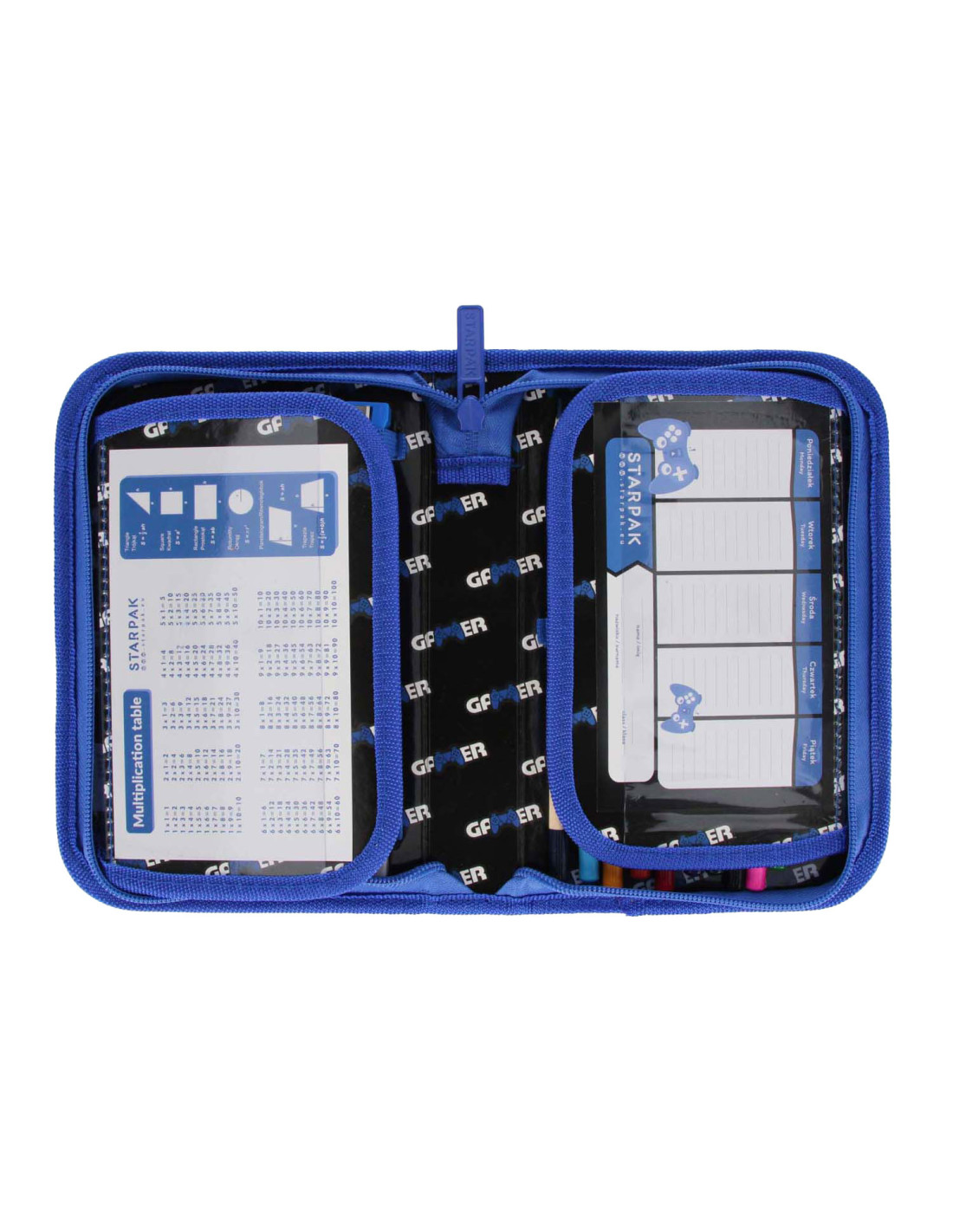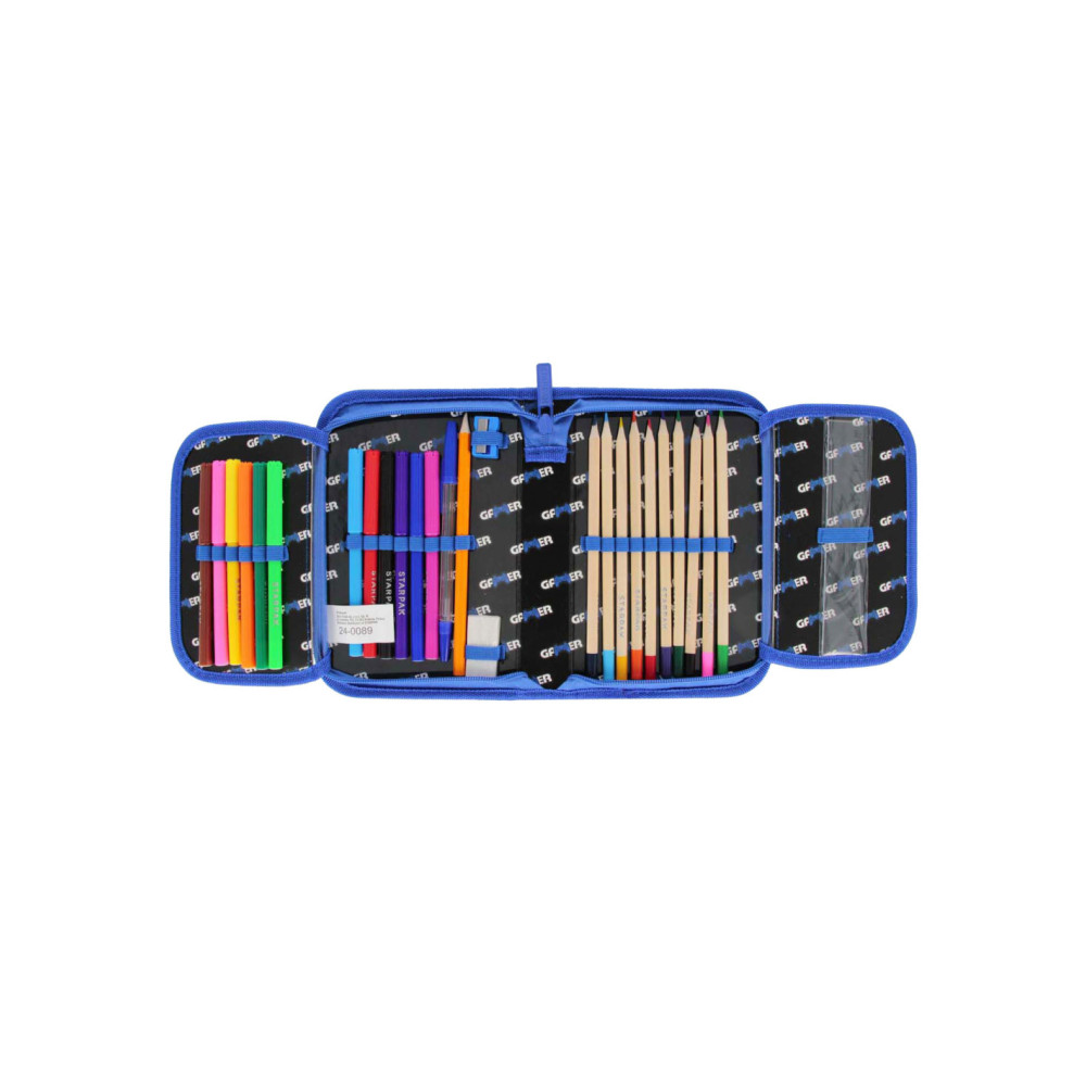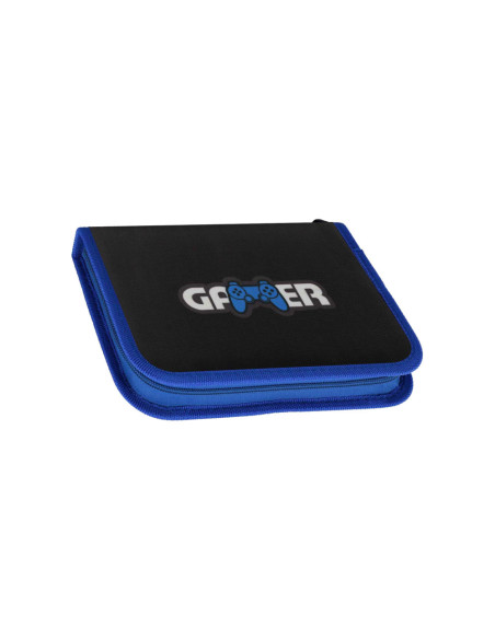 Etui met Accessoires gamer, 25dlg. Met o.a. stiften, kleurpotloden en diverse schrijfwaren. Afmetingen: 14 x 12 x 4 centimeter.