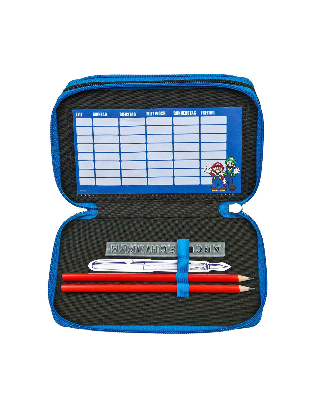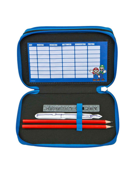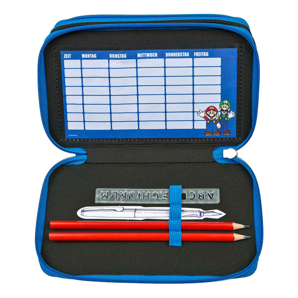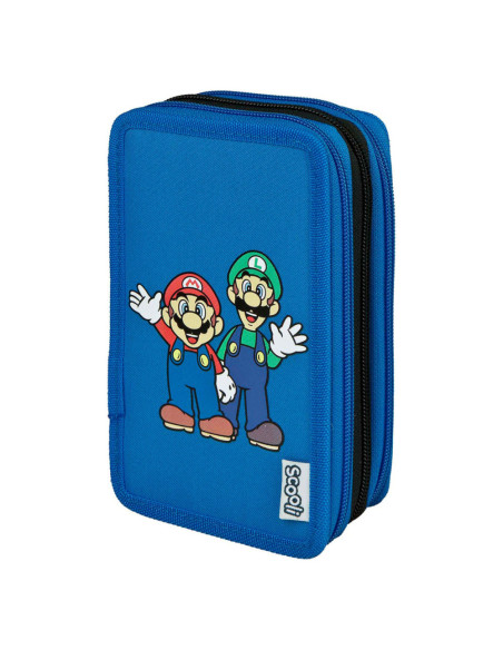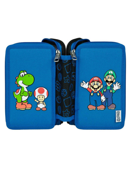 Etui met 3 compartimenten, versierd met Mario, Luigi, Yoshi en Toad.