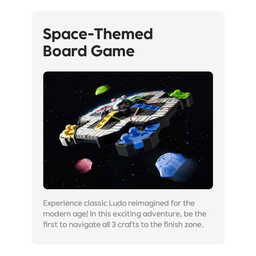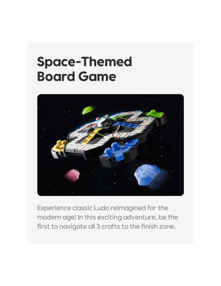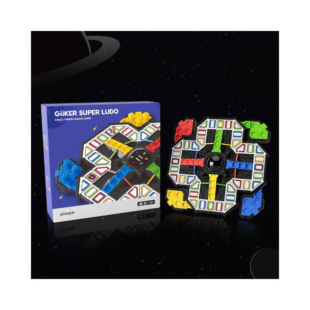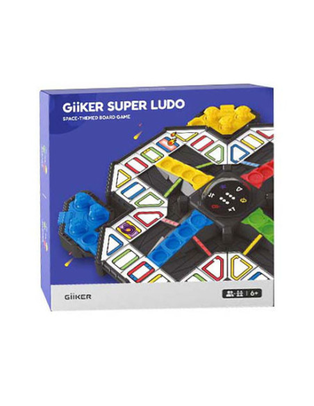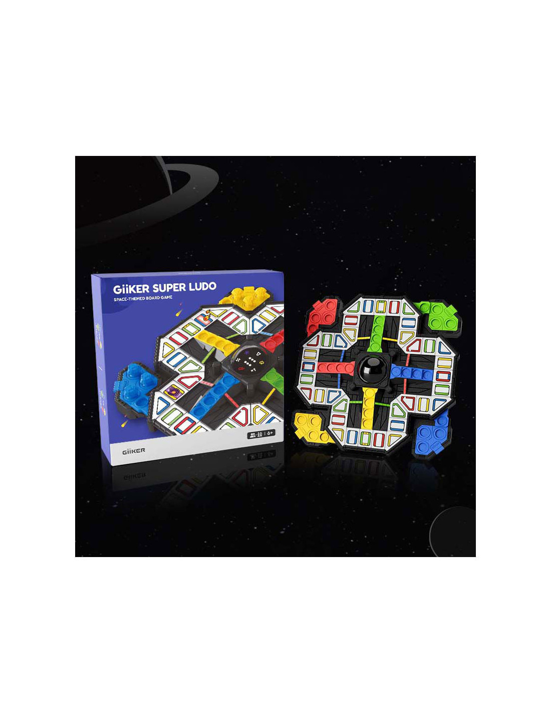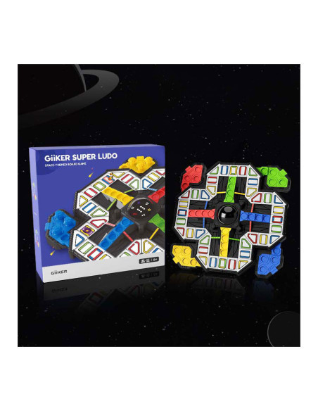 De GiiKER Super Ludo is een elektronisch bordspel met ruimte-thema, geschikt voor 2 tot 4 spelers vanaf 3 jaar. Het spel bevat zes unieke gebeurtenissen, interactieve lichteffecten en geluiden. Gemaakt van kunststof, afmetingen ca. 27 x 27 x 8 cm, en werkt op 3 AA-batterijen (niet inbegrepen).