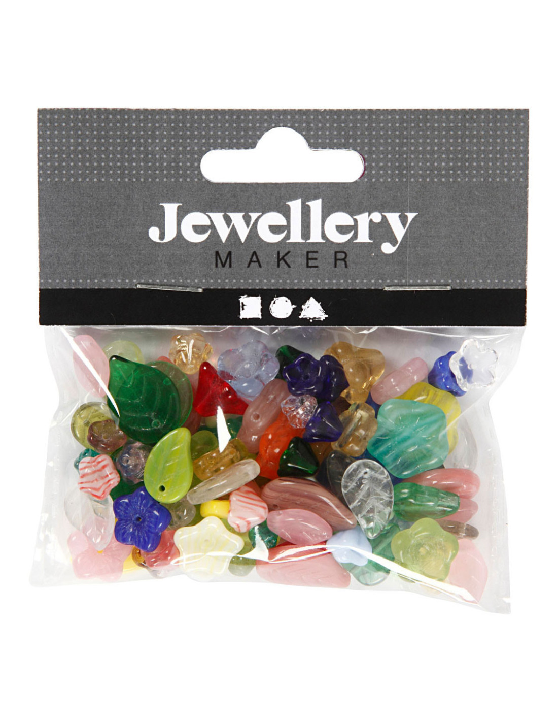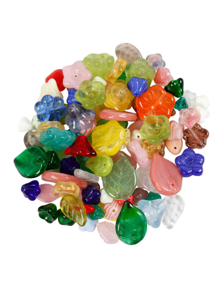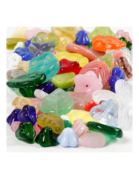Mix van aantrekkelijke glaskralen in verschillende vormen en kleuren voor vele soorten sieradenproductie en decoratie.