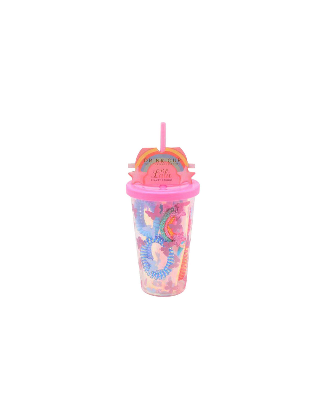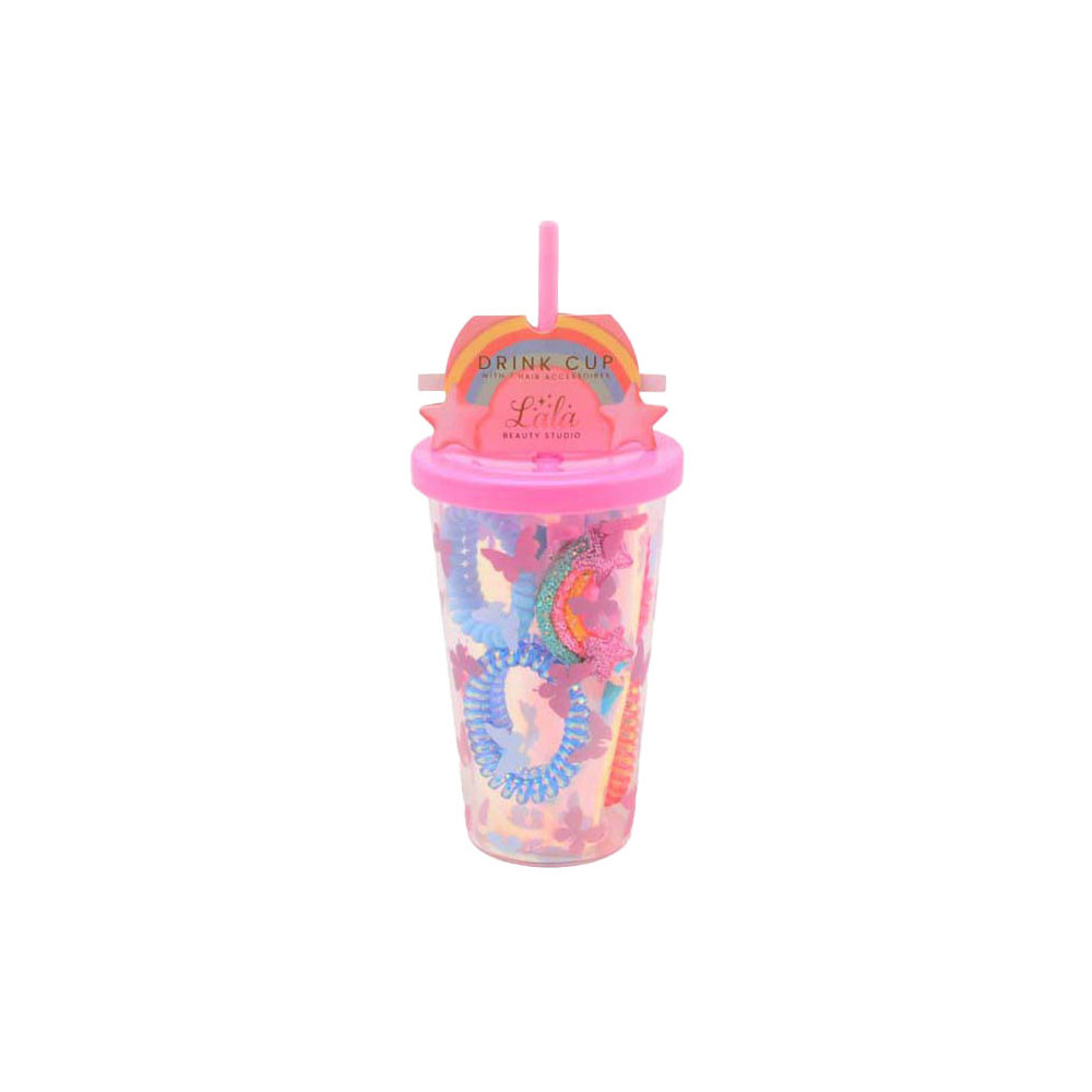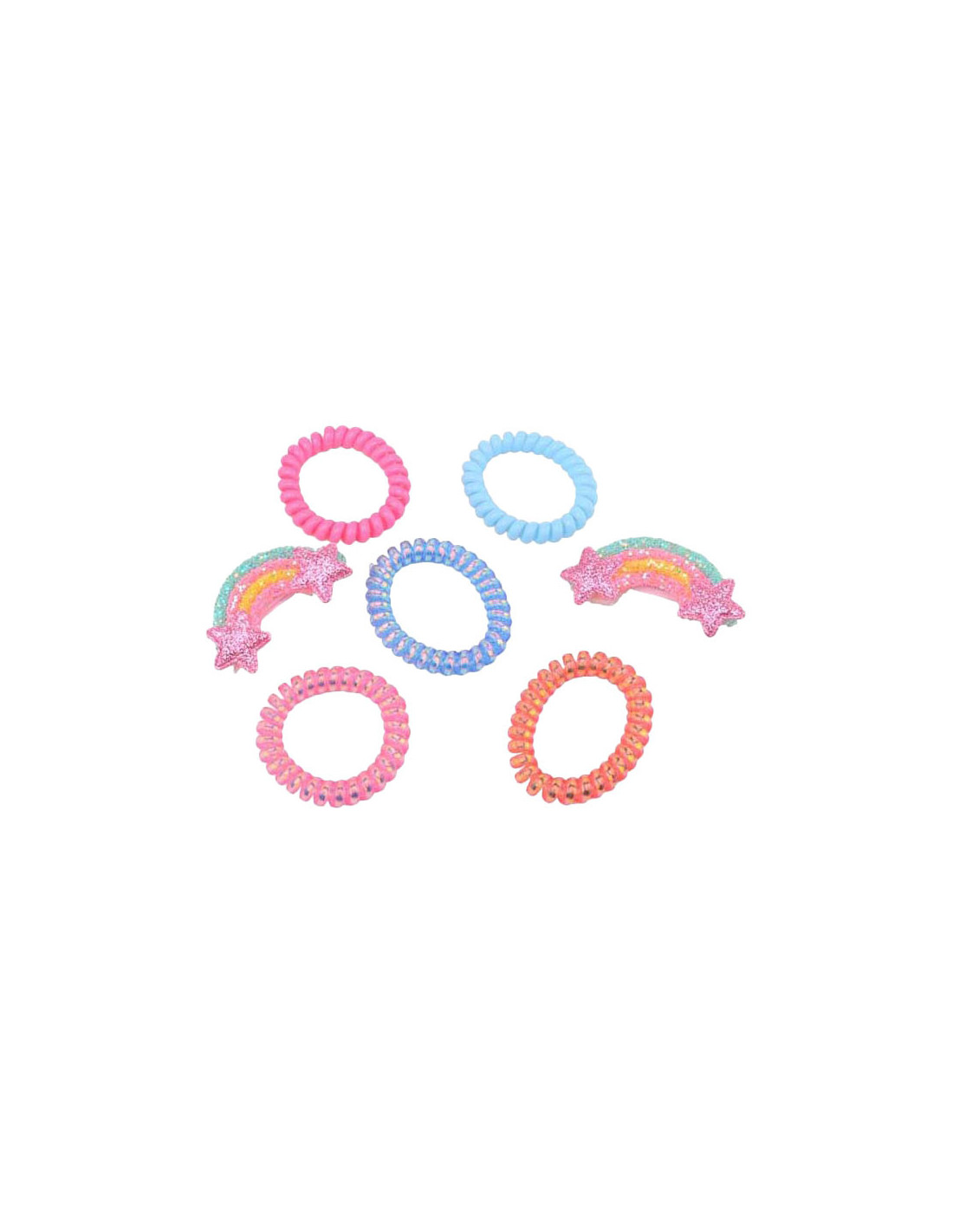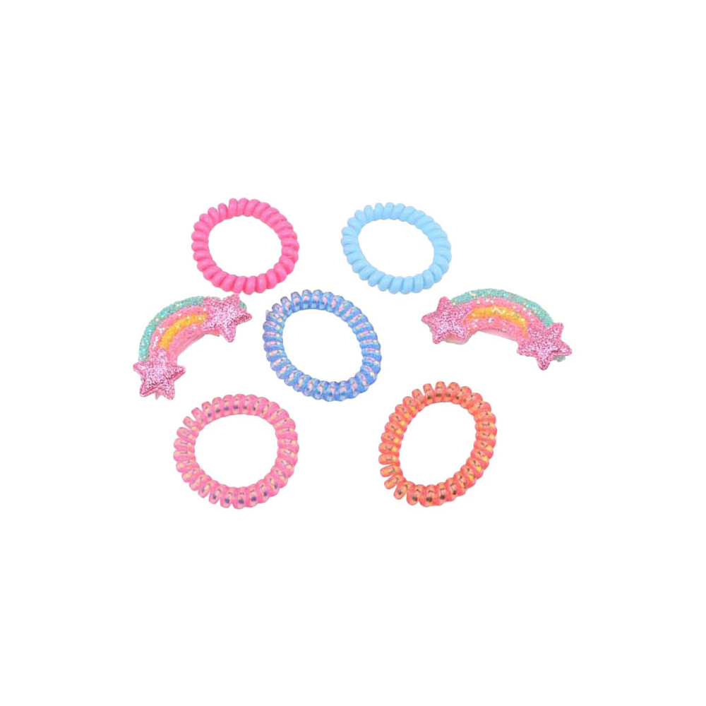 Haaraccessoires in Beker. Inhoud: 5 elastieken en 2 haarclips.