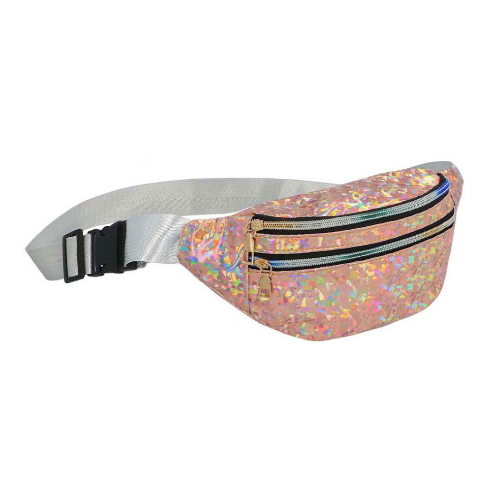 Roségouden holografisch heuptasje. Afmetingen verpakking: 45 x 13 x 8 cm.