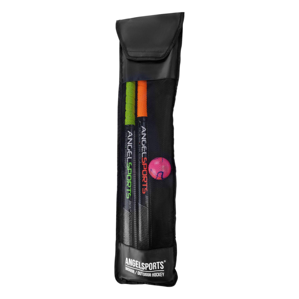 Met deze complete straathockeyset kan je zo de straat op! De set bestaat uit een handige draagtas met twee 30 hockeysticks en een hockeybal, allemaal van het merk Engelhart. Net als bij professionele Hockeysticks hebben deze sticks ook een bolling aan de onderkant.