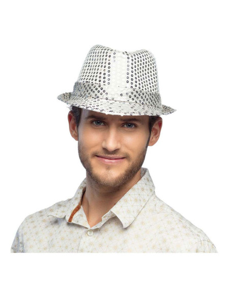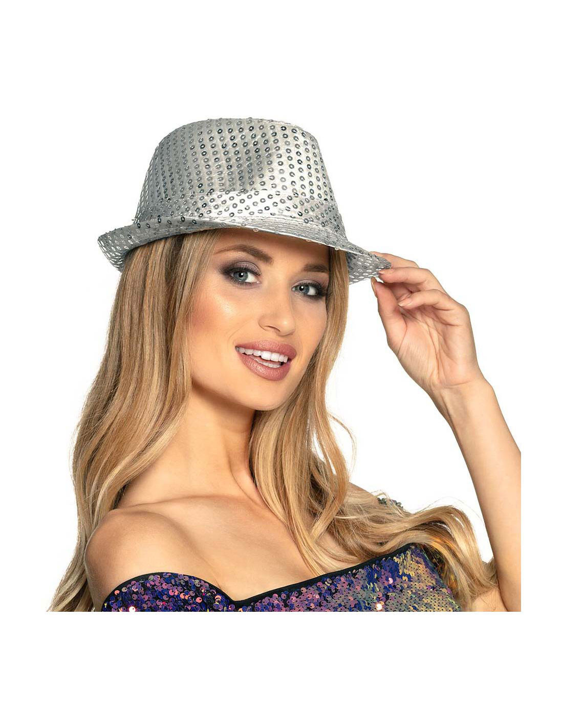 De Boland Hoed Popstar Sequins in zilver is een sprankelende trilby-hoed versierd met pailletten, perfect voor feestelijke gelegenheden. Met een hoofdomtrek van circa 59 cm en geschikt voor volwassenen vanaf 14 jaar.