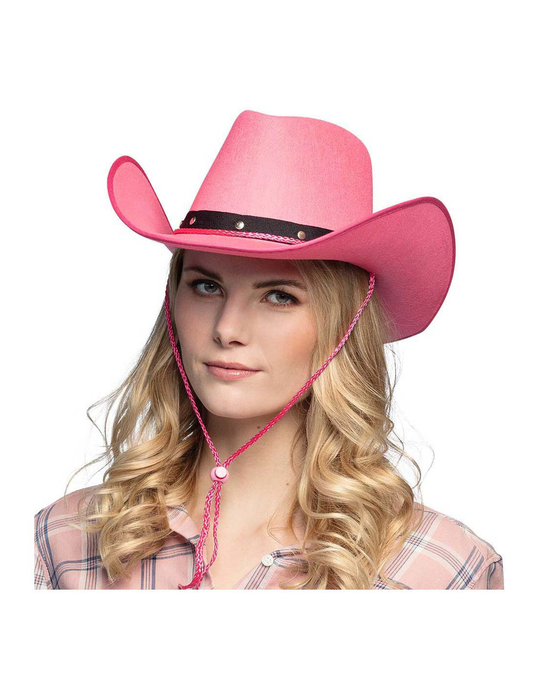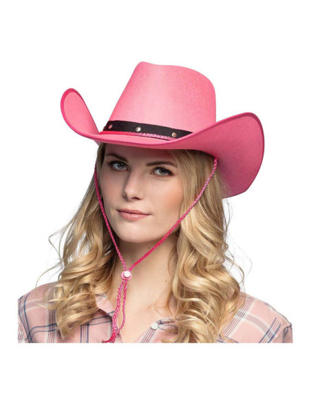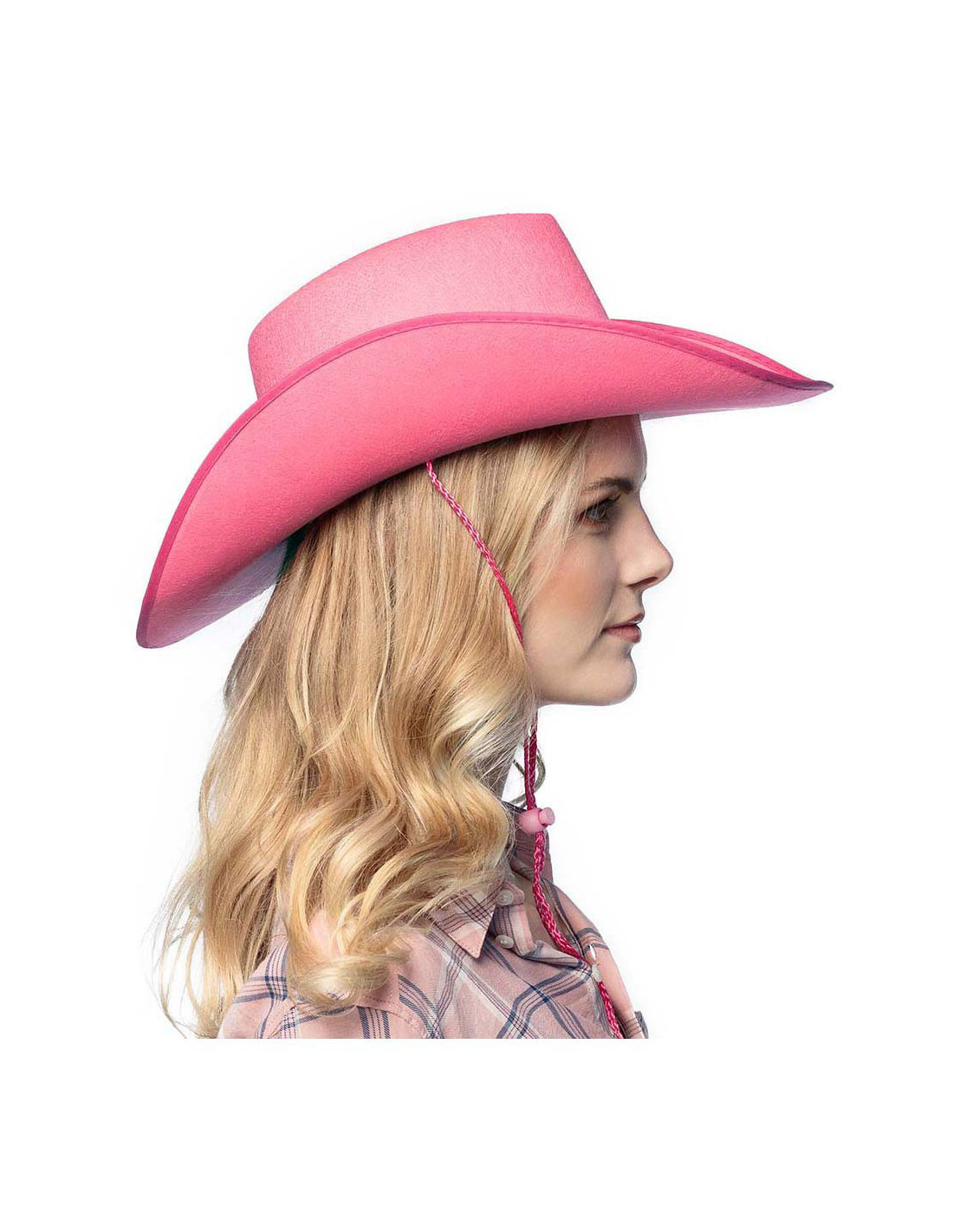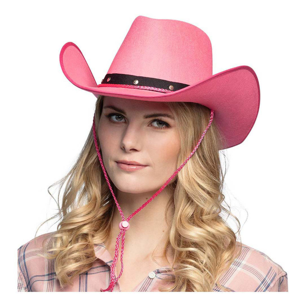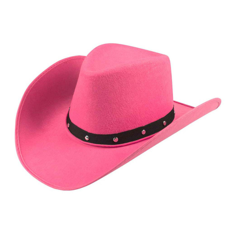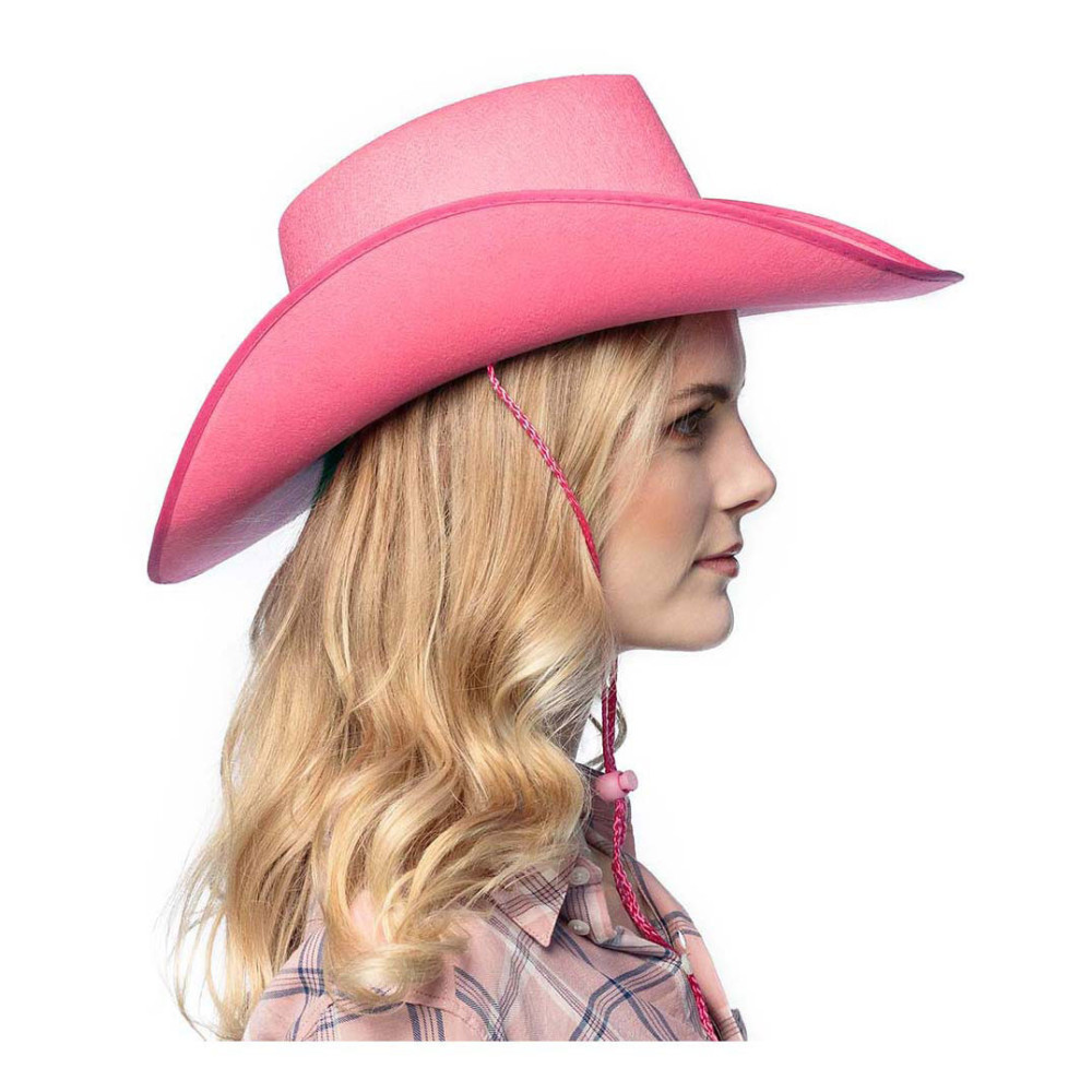 Knalroze cowboyhoed van 98% polyester en 2% ijzer met een hoofdomtrek van circa 59 cm. Geschikt vanaf 14 jaar.​