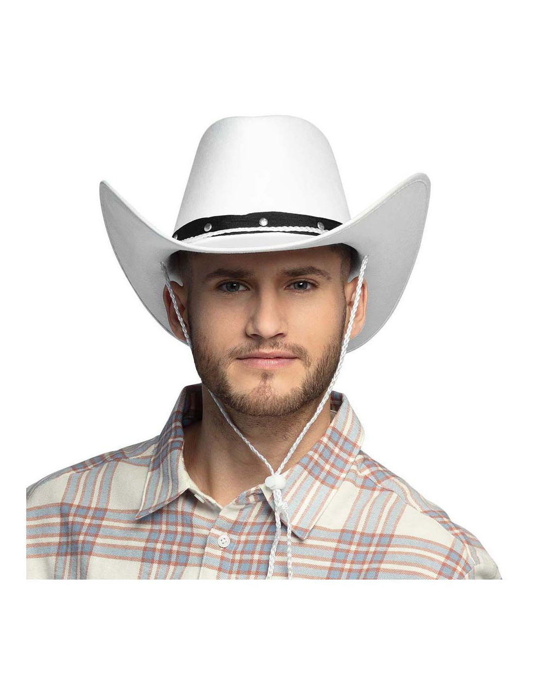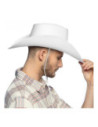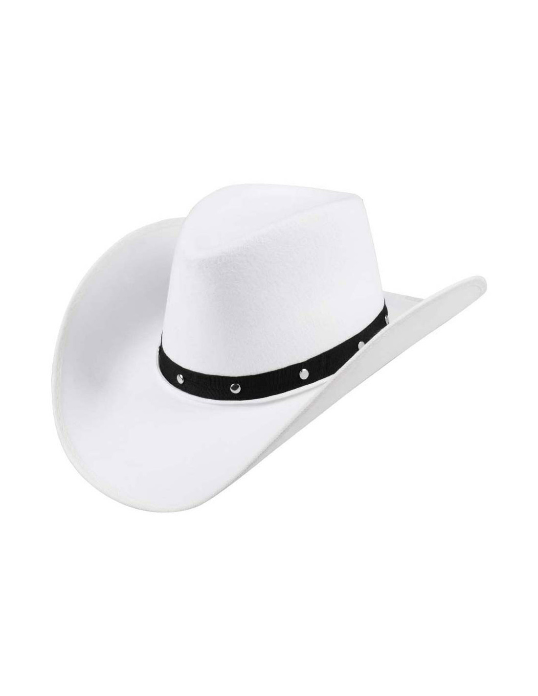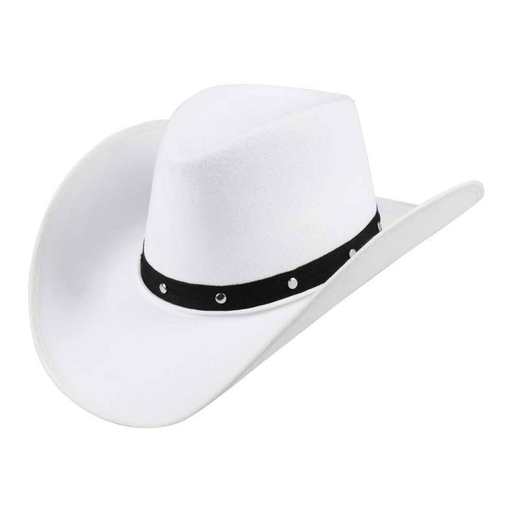 Witte cowboyhoed van 100% polyester met een hoofdomtrek van circa 59 cm. Geschikt vanaf 14 jaar.