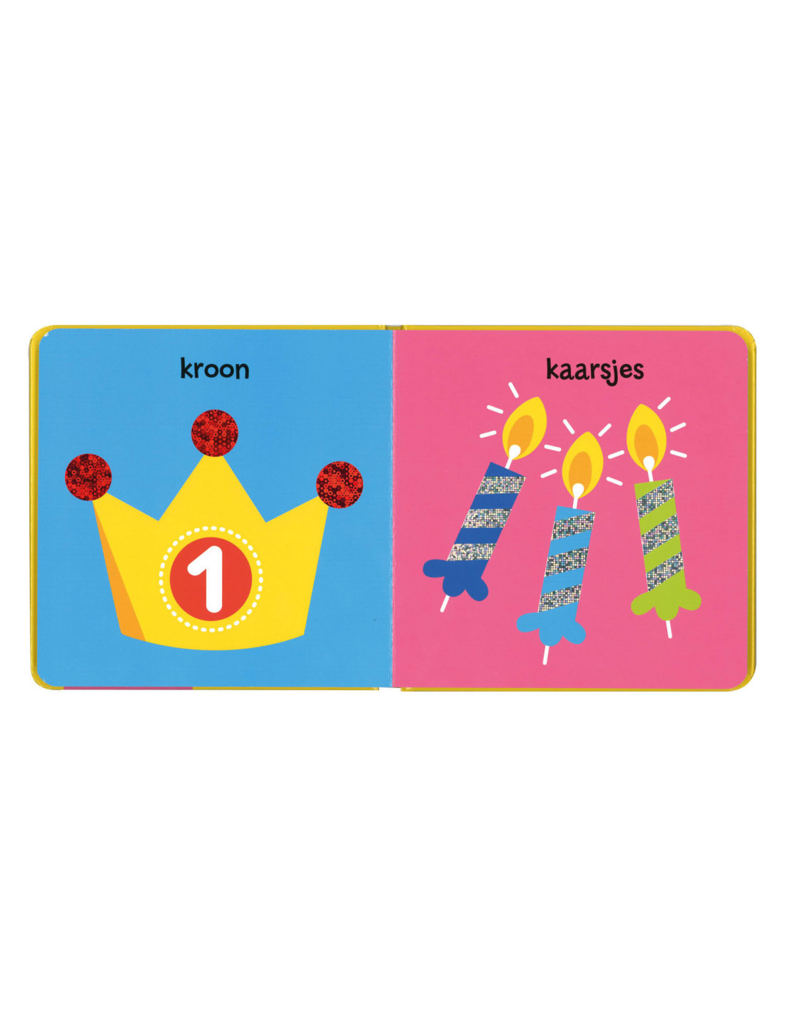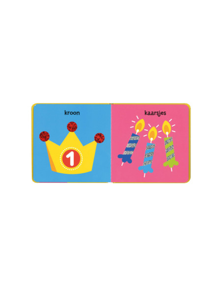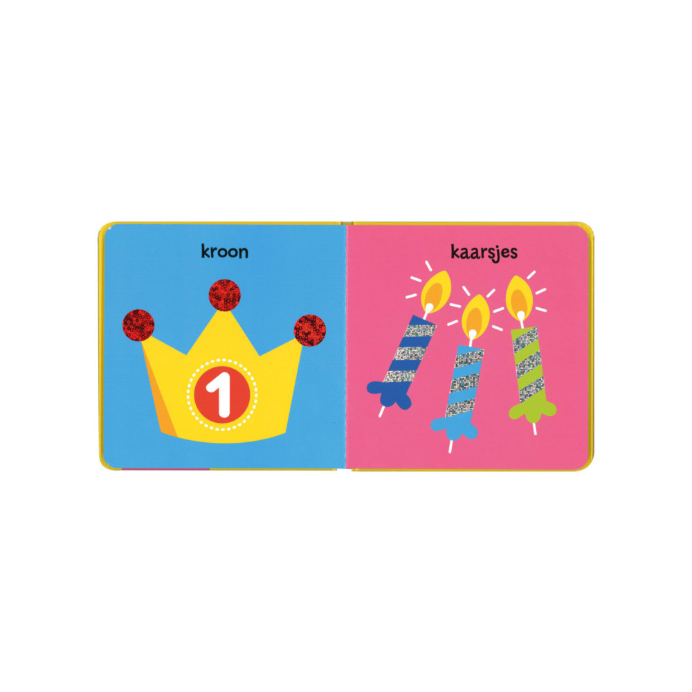 Dit schattige boekje is ideaal voor baby's die hun eerste verjaardag vieren.Een cadeautje, een kroon, een lekkere taart… Ze staan er allemaal in!De kleurrijke tekeningen en de glitters op elke pagina zullen je baby zeker aanspreken. Bovendien zijn de pagina's van stevig karton gemaakt zodat ze bestand zijn tegen enthousiaste kinderhandjes.Vanaf 1 jaarGebonden uitgave