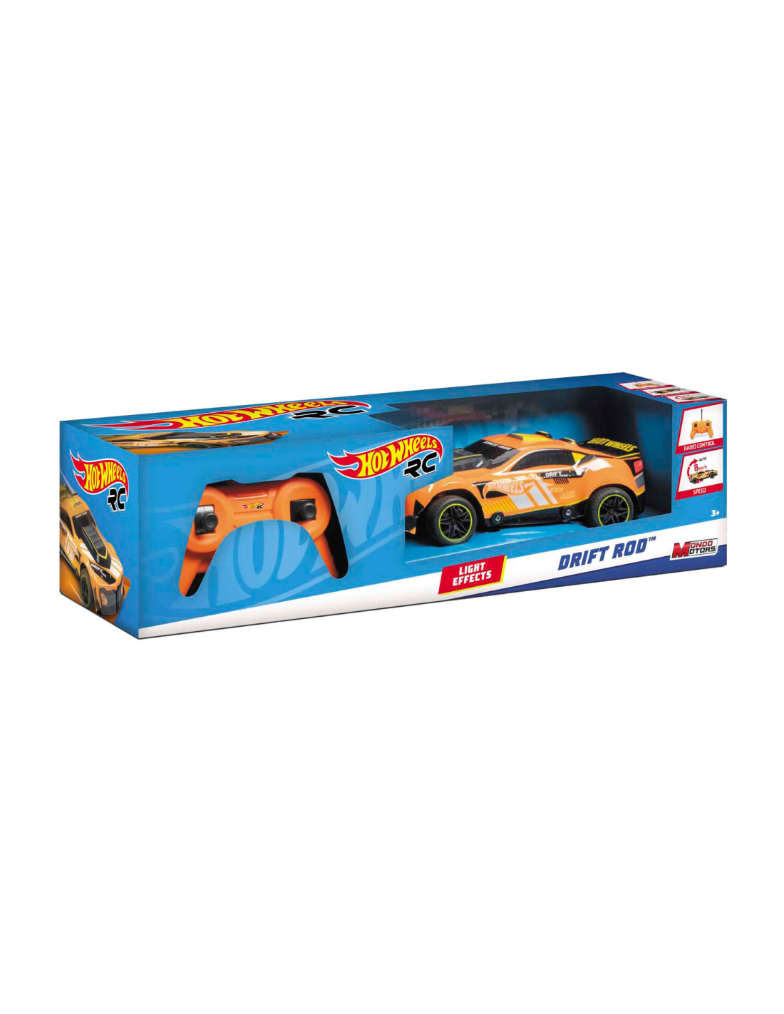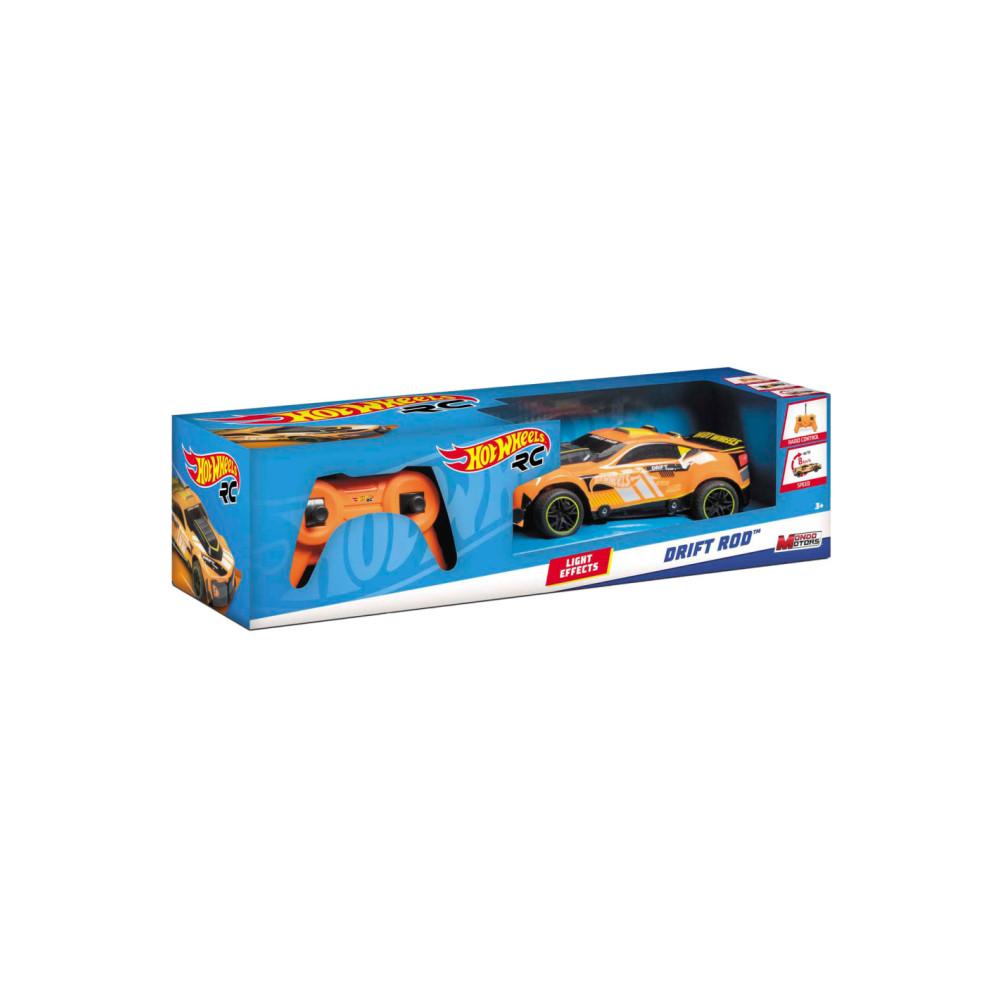 De Hot Wheels RC Drift Rod is een radiografisch bestuurbare auto met een topsnelheid van 8 km/u, een schaal van 1:24 en eenvoudige bediening via een multifunctionele afstandsbediening. Geschikt voor kinderen vanaf 3 jaar (onder toezicht van volwassenen). De auto werkt op 5 x AA-batterijen (niet meegeleverd) Frequentie: 27/40 MHz.