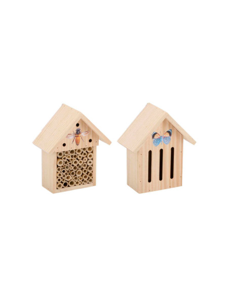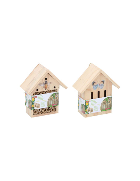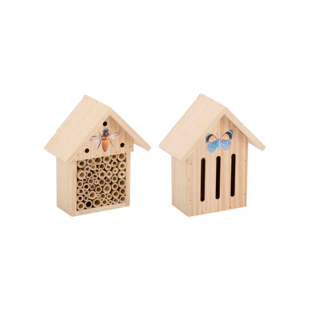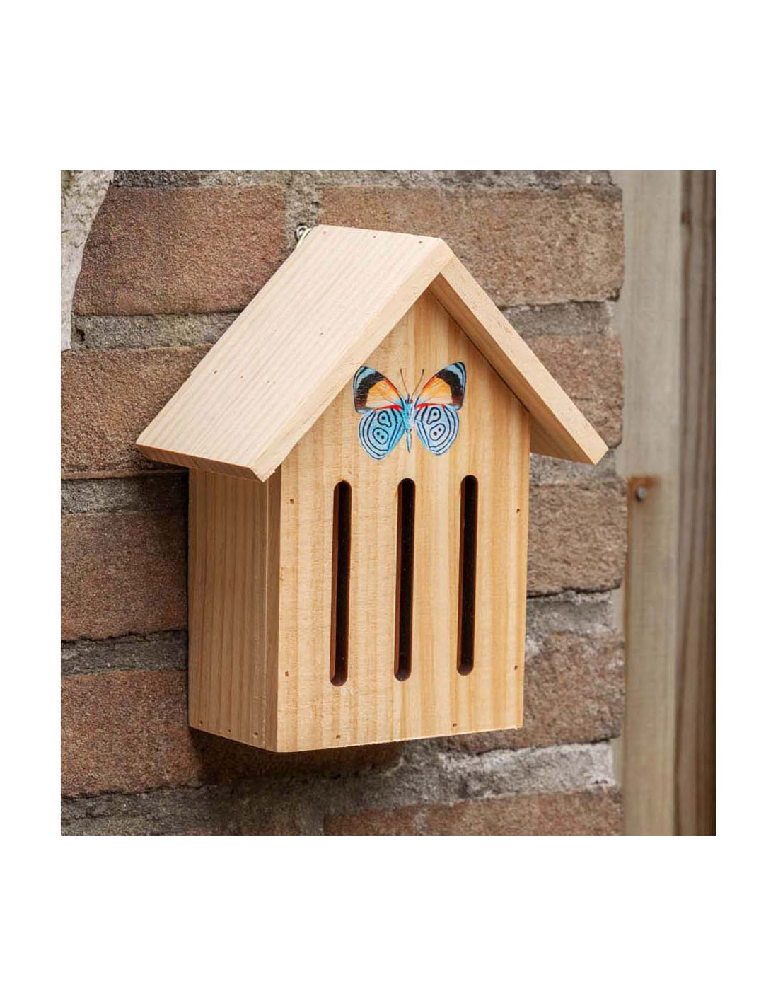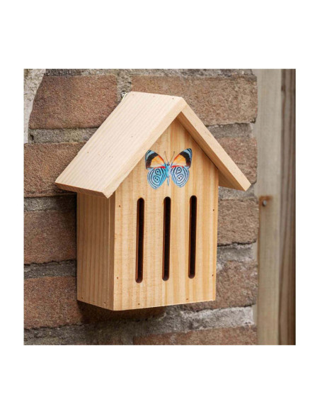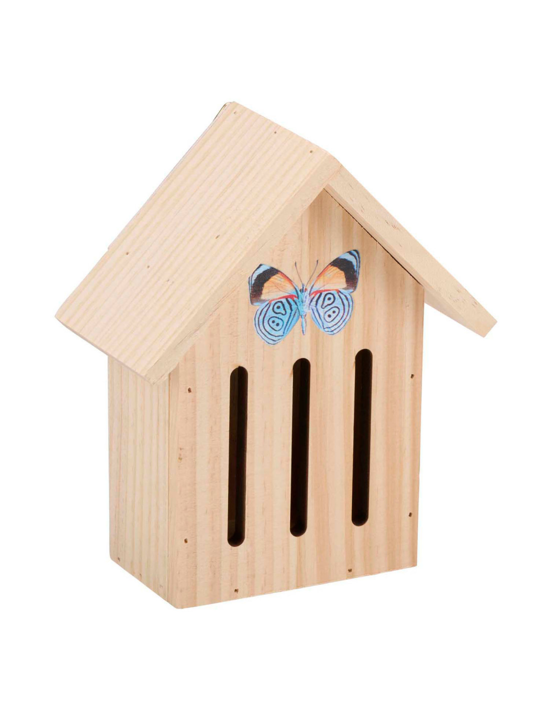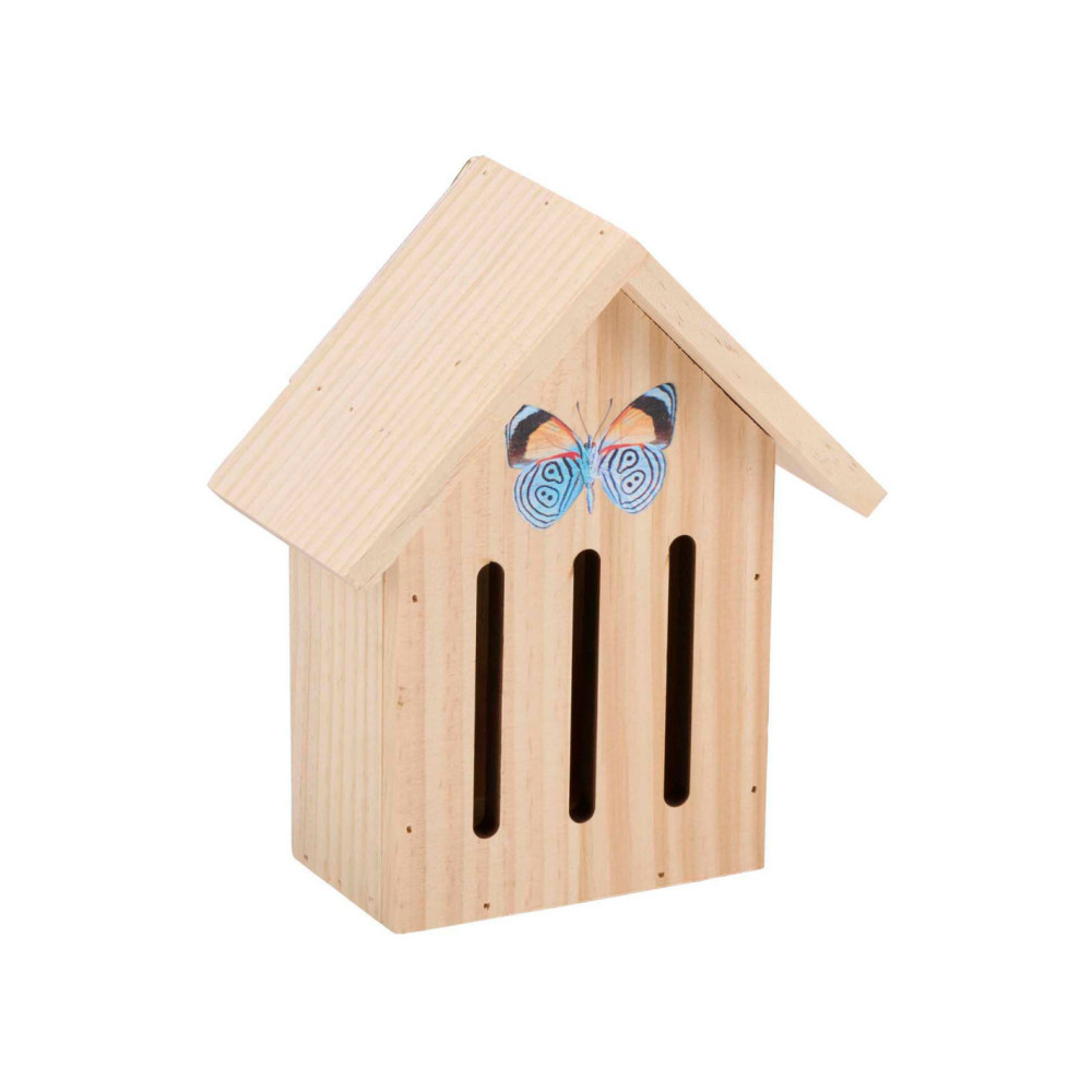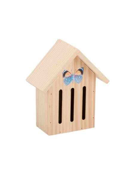 Houten insectenhotel voor vlinders of bijen. Verkocht per stuk. Gemaakt van natuurlijk hout. Afmetingen: 20 cm x 14 cm x 9 cm groot.