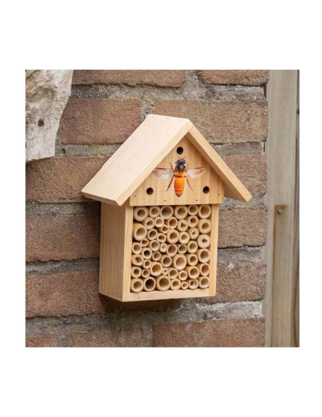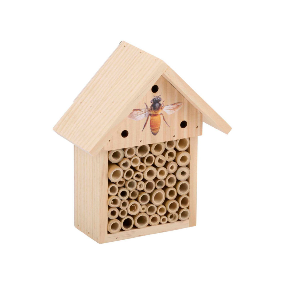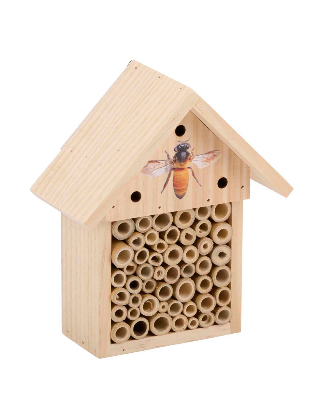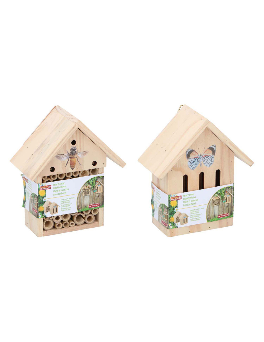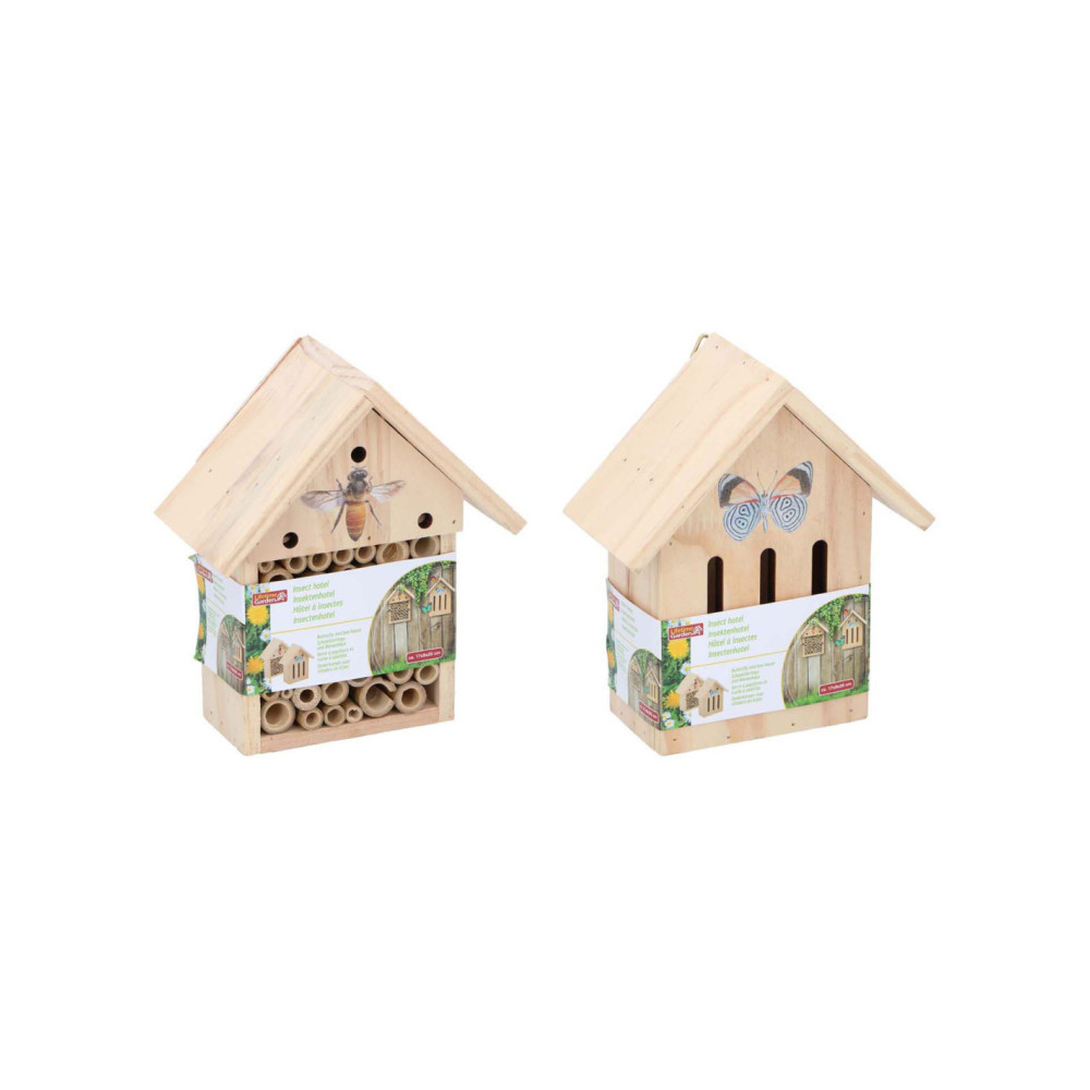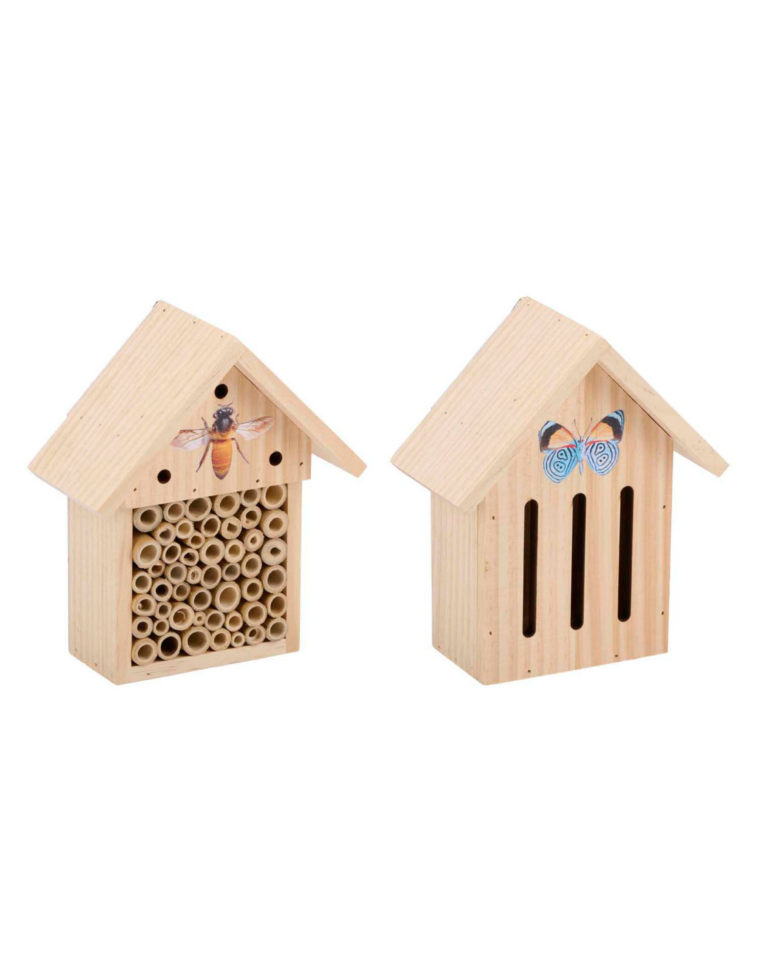 Houten insectenhotel voor vlinders of bijen. Verkocht per stuk. Gemaakt van natuurlijk hout. Afmetingen: 20 cm x 14 cm x 9 cm groot.