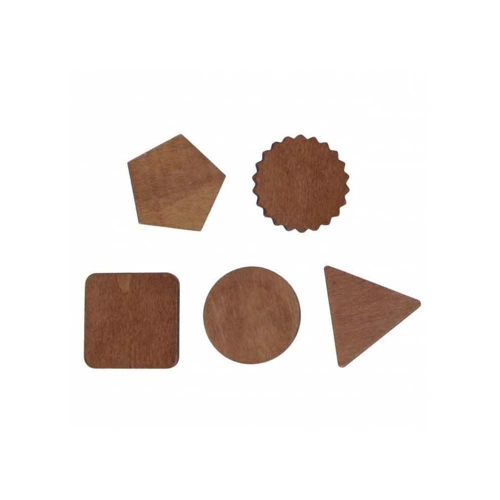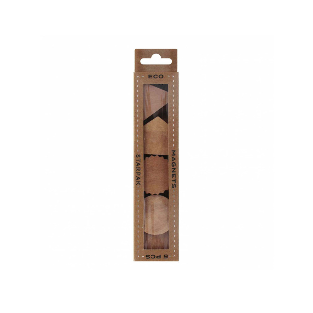 Houten magneten van 3 cm groot. Set van vijf stuks.