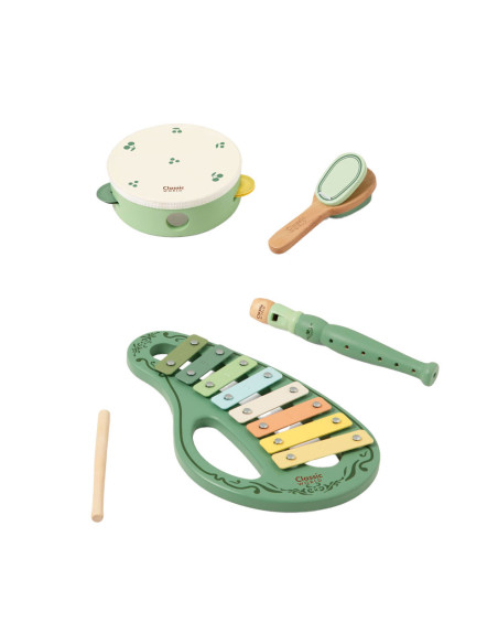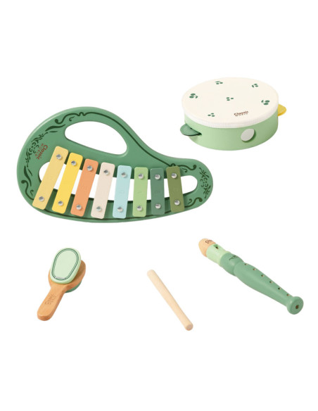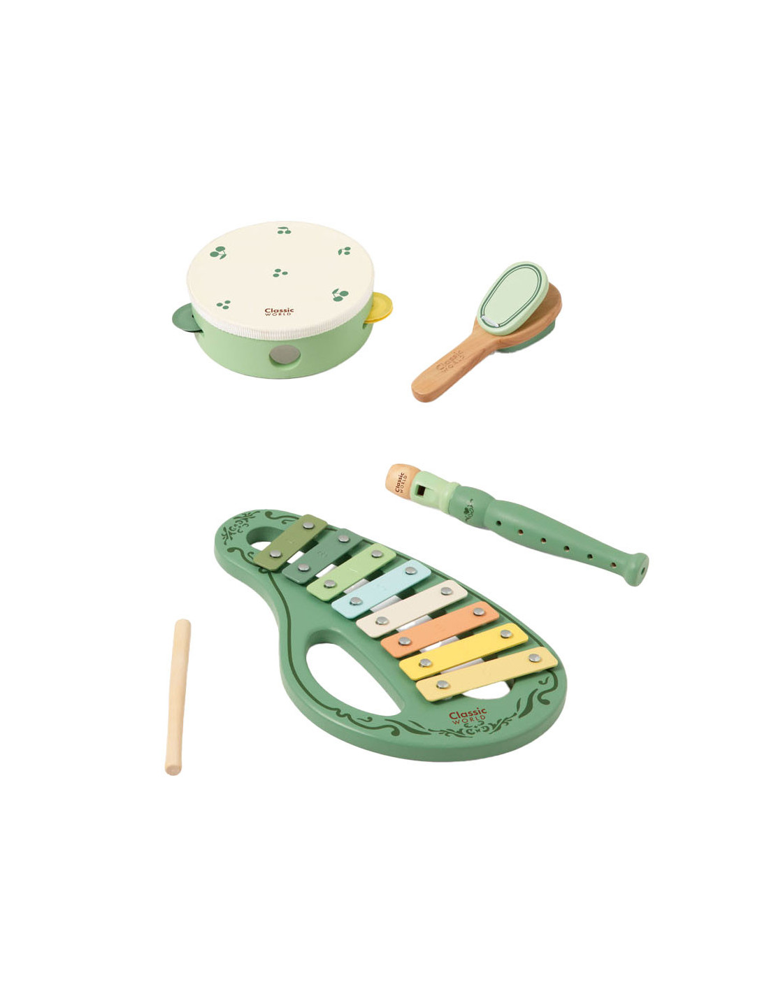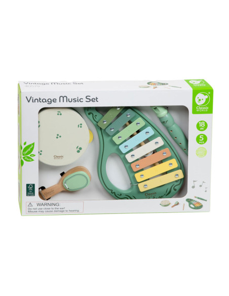 Klassieke retrokleuren passen bij elkaar om een ​​betoverend klassiek muziekpaleis te creëren. Deze retroserie muziekcombinatie omvat verschillende instrumenten zoals percussie, klankbord, fluit en drum. Kinderen kunnen genieten van verschillende textuur van geluid en hun eigen muziekmelodieën maken.
