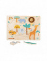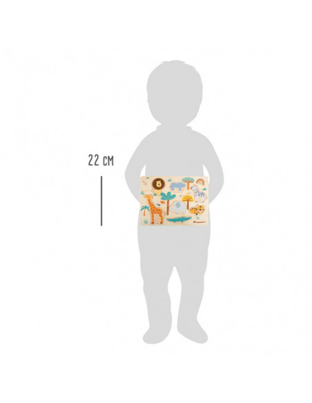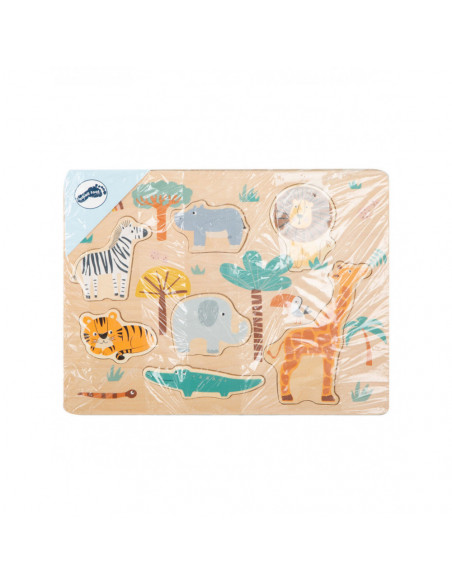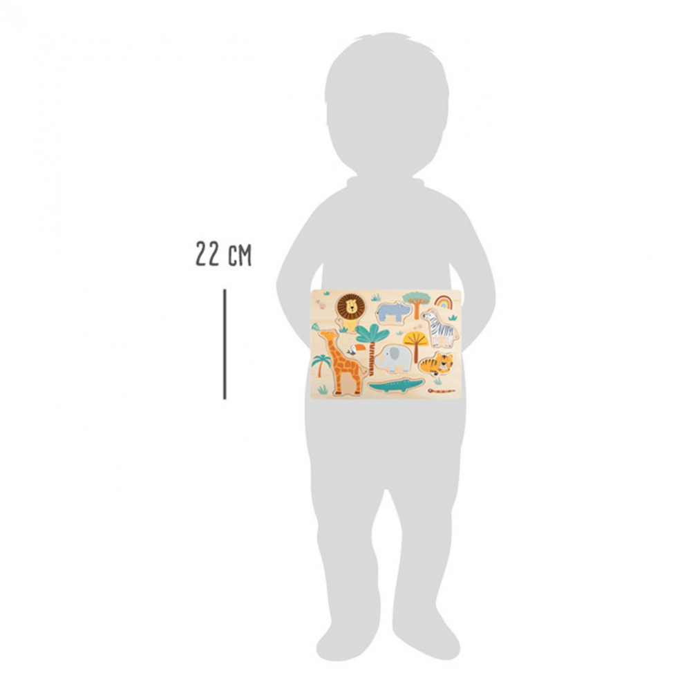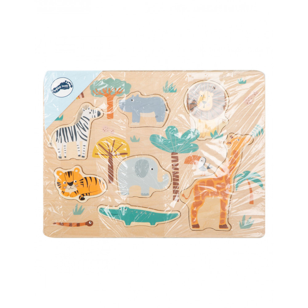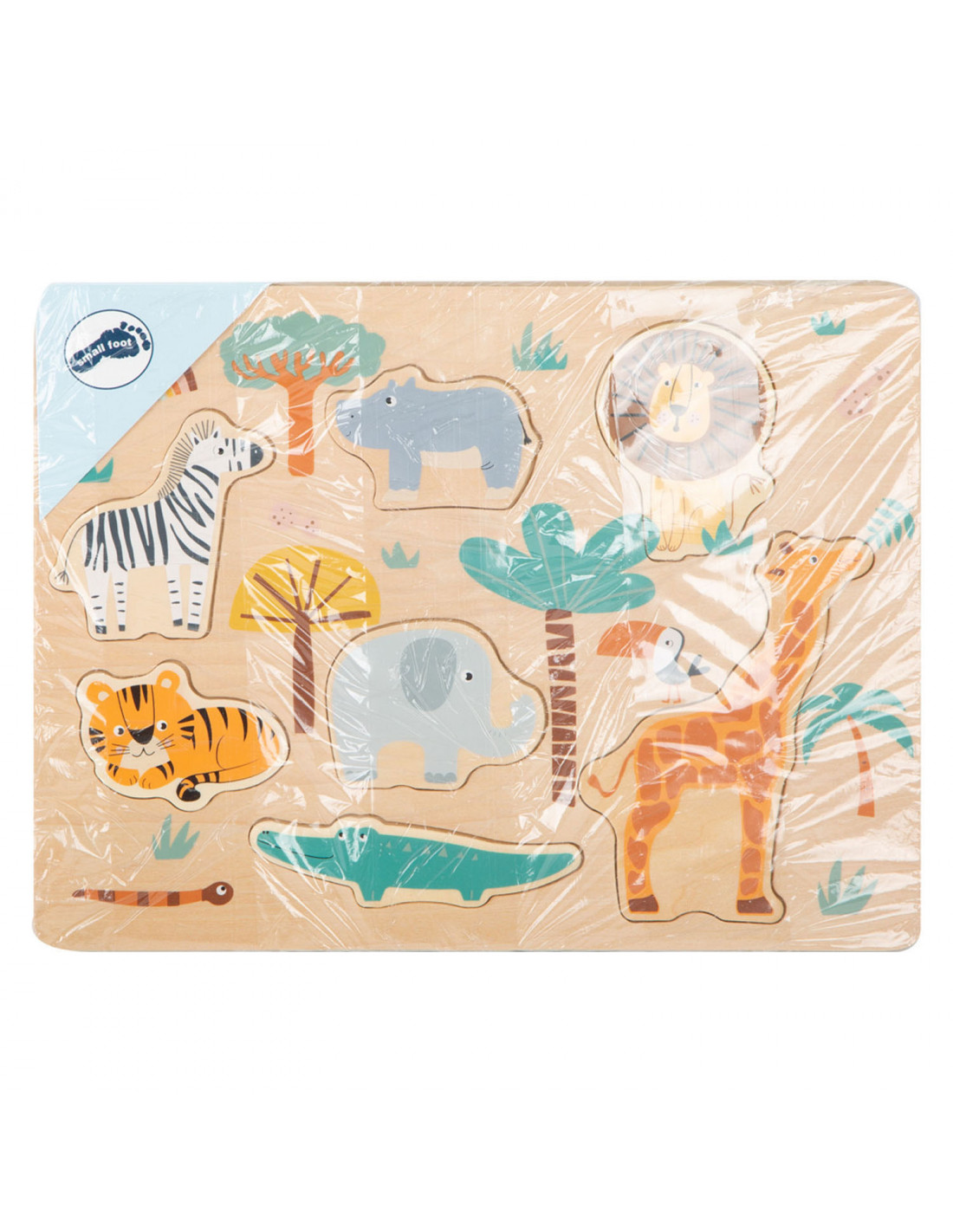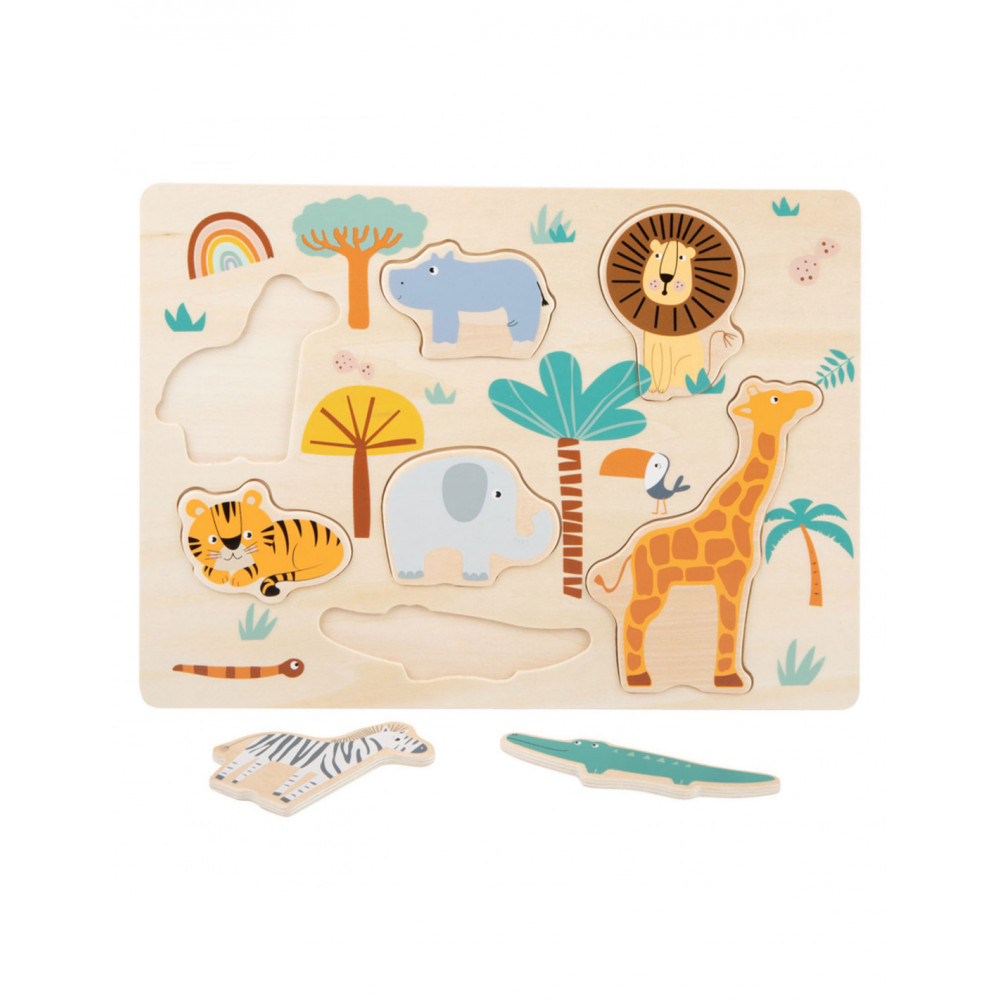 Plaats de juiste wilde dieren puzzelstukken in de juiste vorm. De puzzel is gemaakt van hout en hoogwaardige gedrukte illustraties met trendkleuren. Geschikt voor kinderen vanaf 12 maanden.