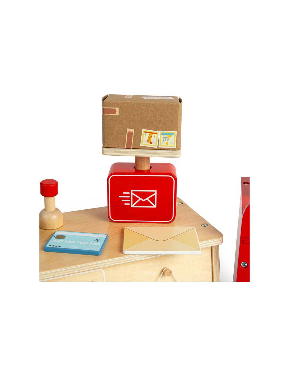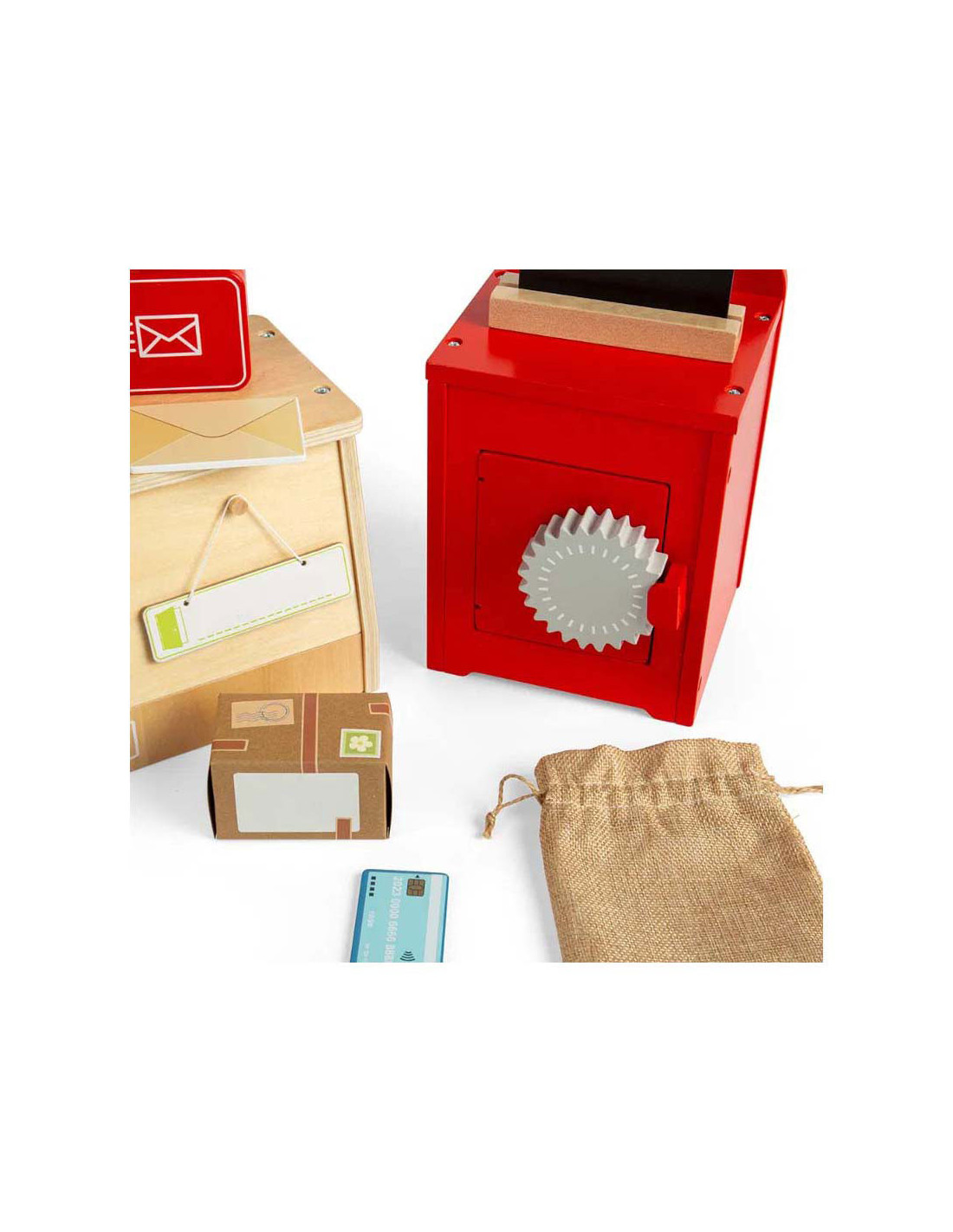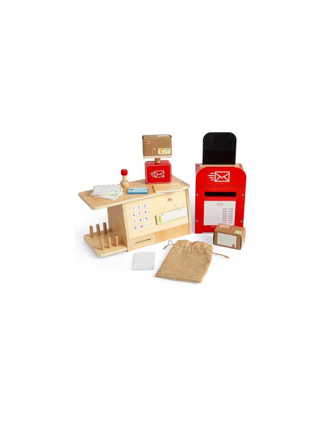 Rollenspelspeelgoed is uitstekend voor de verbeelding , creativiteit , sociale vaardigheden en taalontwikkeling van kinderen! Dit 19-delige postkantoor speelgoed is gemaakt van premium kwaliteit en duurzaam FSC® gecertificeerd hout en gekleurd met niet-giftige verf en lak.