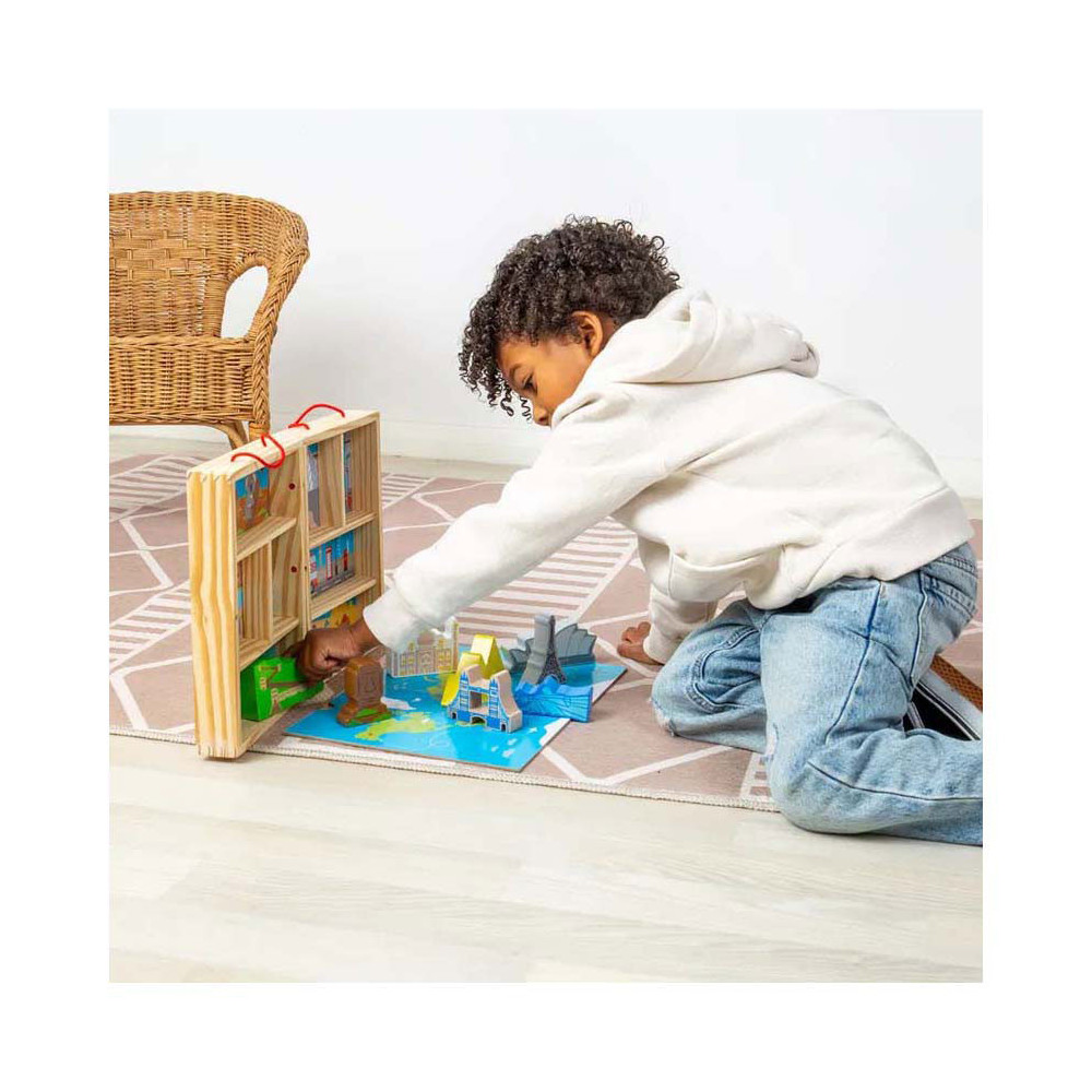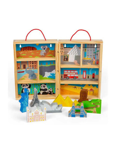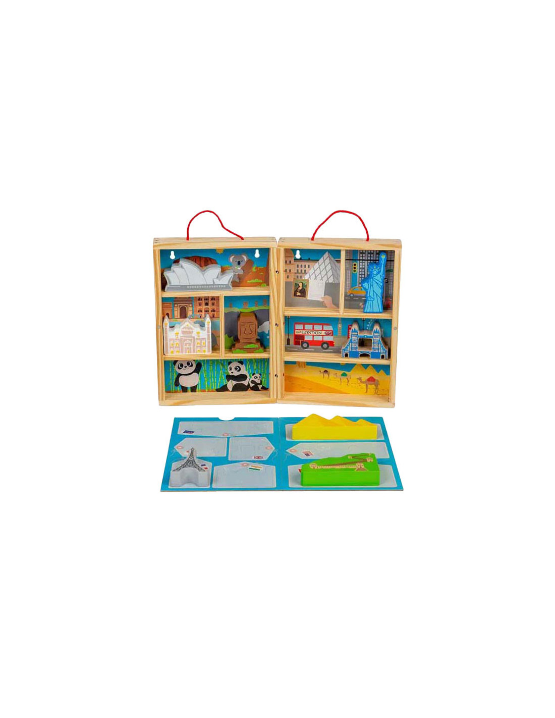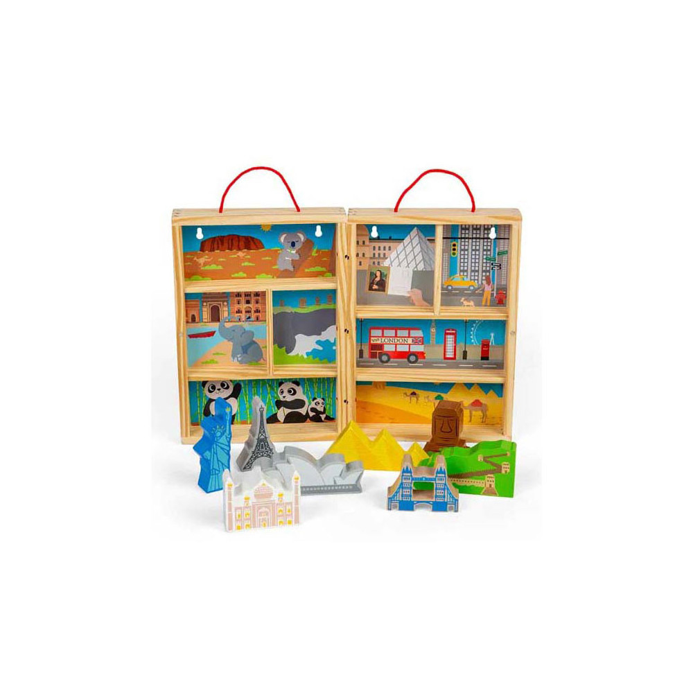 Kleine globetrotters kunnen de grote wijde wereld verkennen vanuit het comfort van hun huis met onze geweldige Travel Playbox . Open de box en ontdek iconische bestemmingen en beroemde bezienswaardigheden, van de Egyptische piramides en de Chinese Muur tot het Sydney Opera House in Australië en de Tower Bridge in Londen!