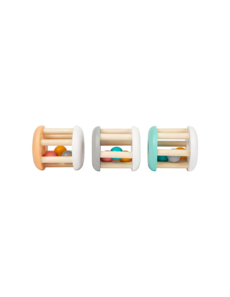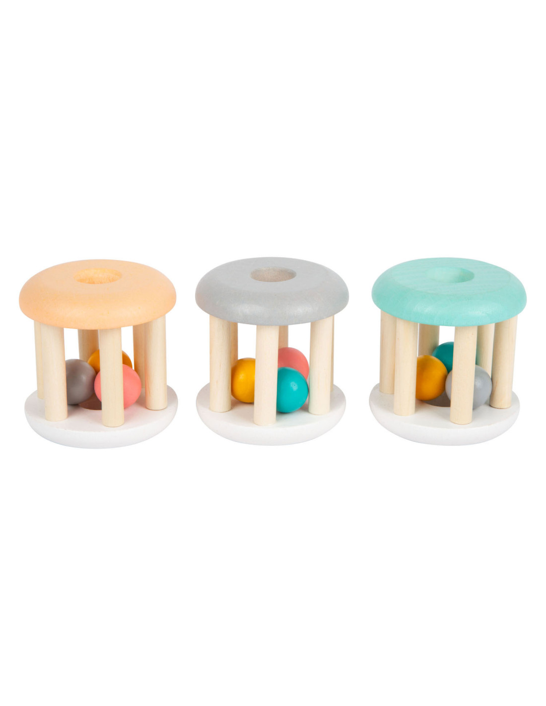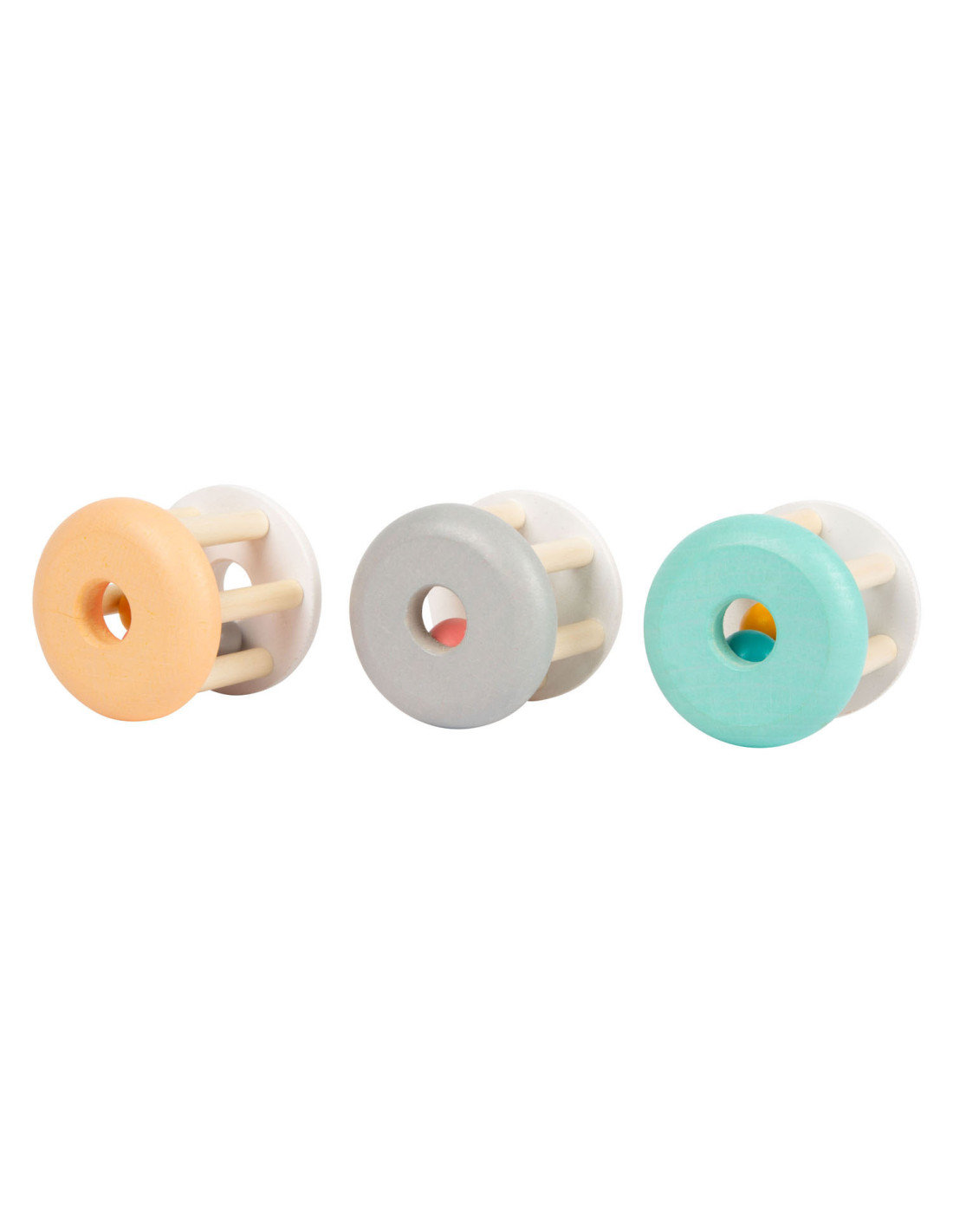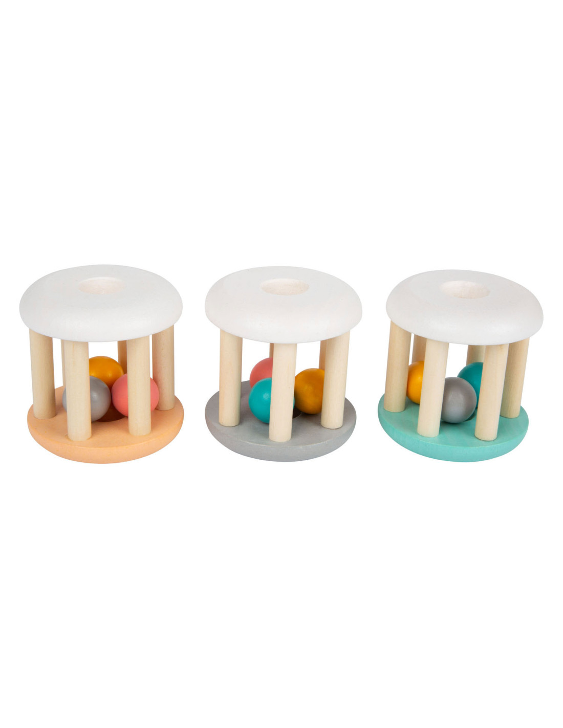 Waar komt dat heerlijke geratel vandaan? Deze fijne houten babyrammelaar in pastelkleuren in een set van 3 trekt op speelse wijze de aandacht van jonge ontdekkingsreizigers. Een opening aan de boven- en onderkant nodigt baby's uit om naar binnen te kijken. Deze slipvaste rammelaars zijn gemakkelijk vast te pakken voor kleine handjes en trainen baby's spelenderwijs naast hun motorische vaardigheden en het gehoor. Babyrammelaars zijn erg populair bij de allerkleinsten en animeren de kleintjes om te grijpen, spelen, luisteren en ontdekken. Perfect voor de eerste set speelgoed van een baby!