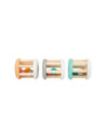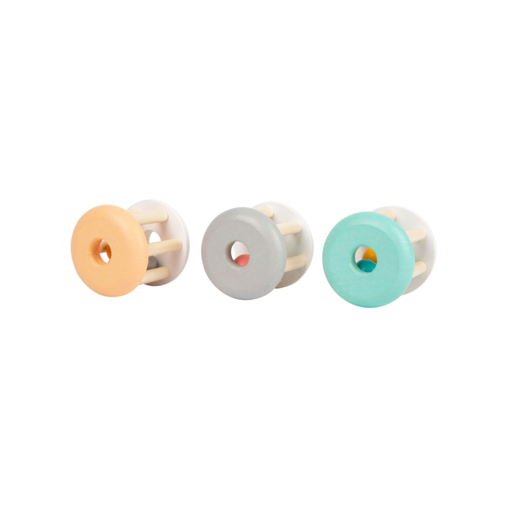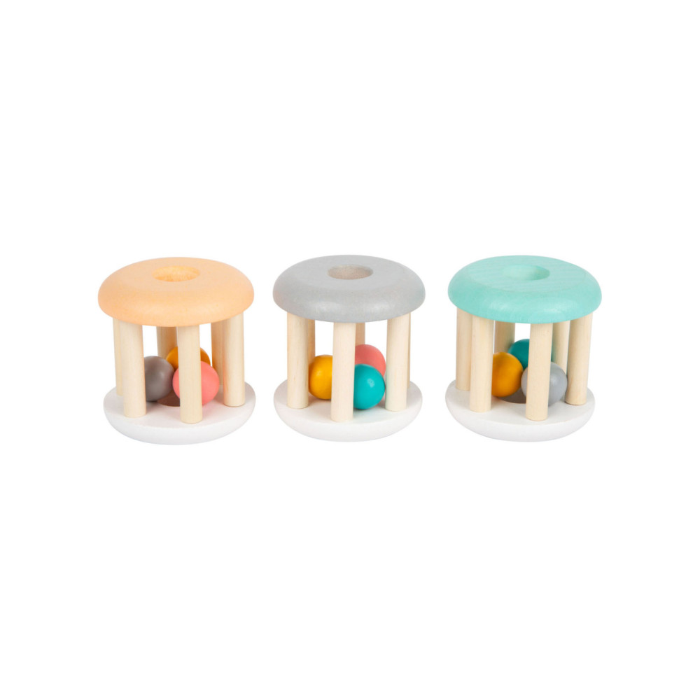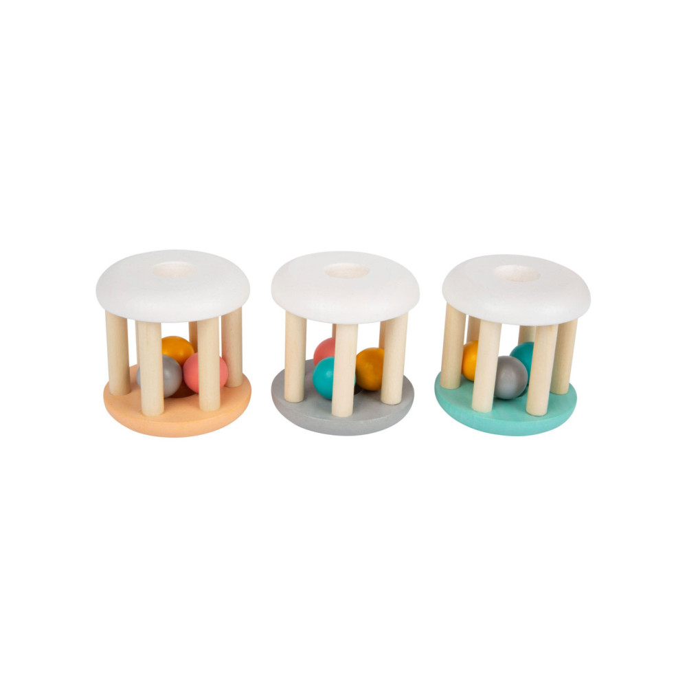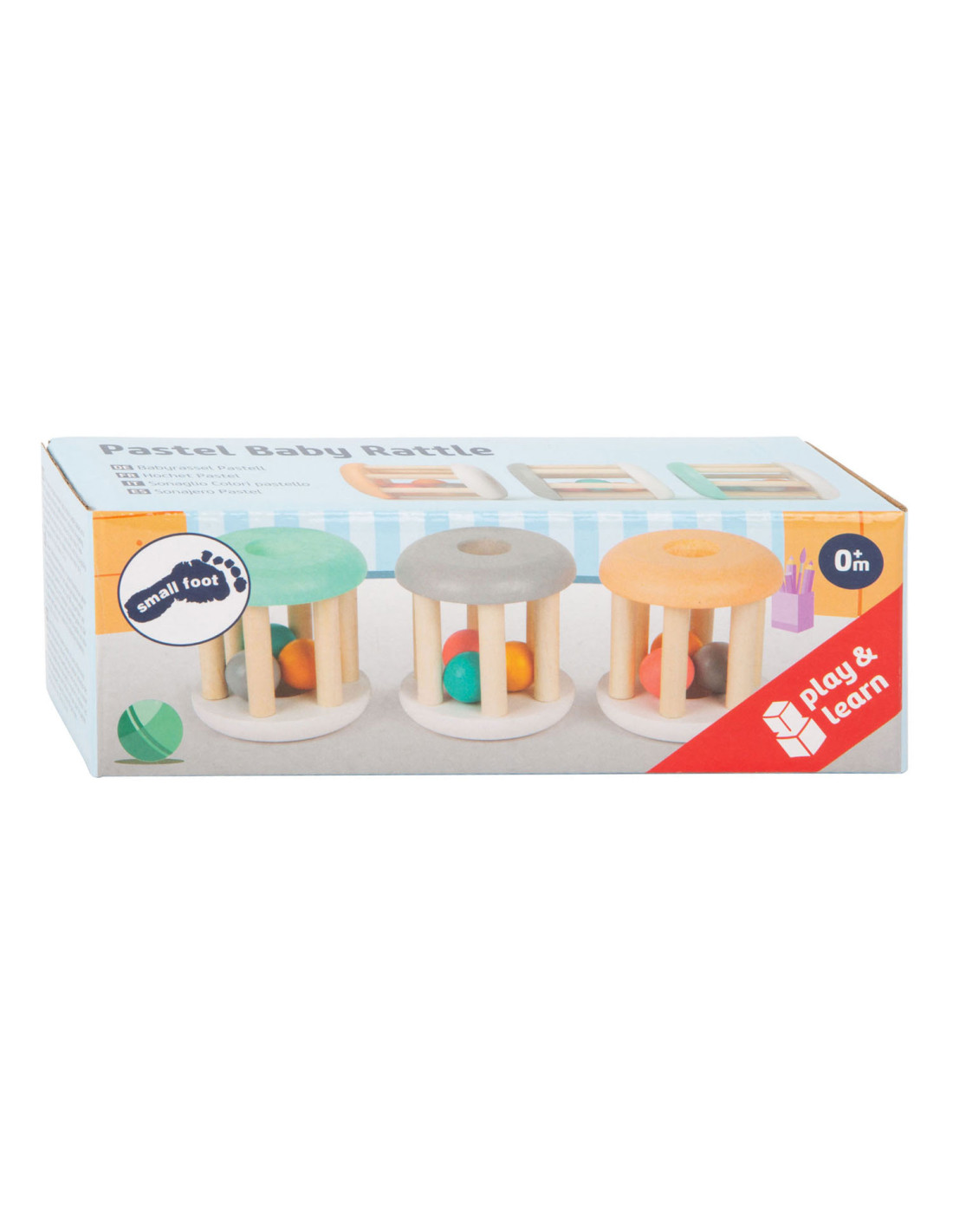Waar komt dat heerlijke geratel vandaan? Deze fijne houten babyrammelaar in pastelkleuren in een set van 3 trekt op speelse wijze de aandacht van jonge ontdekkingsreizigers. Een opening aan de boven- en onderkant nodigt baby's uit om naar binnen te kijken. Deze slipvaste rammelaars zijn gemakkelijk vast te pakken voor kleine handjes en trainen baby's spelenderwijs naast hun motorische vaardigheden en het gehoor. Babyrammelaars zijn erg populair bij de allerkleinsten en animeren de kleintjes om te grijpen, spelen, luisteren en ontdekken. Perfect voor de eerste set speelgoed van een baby!