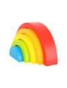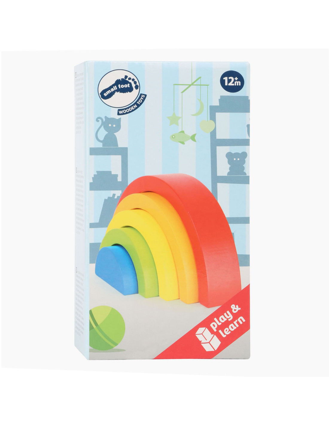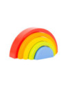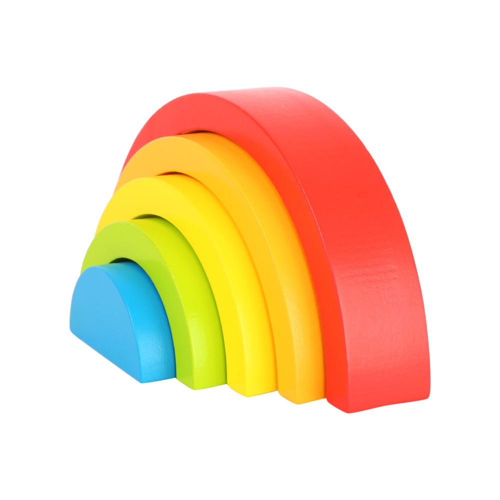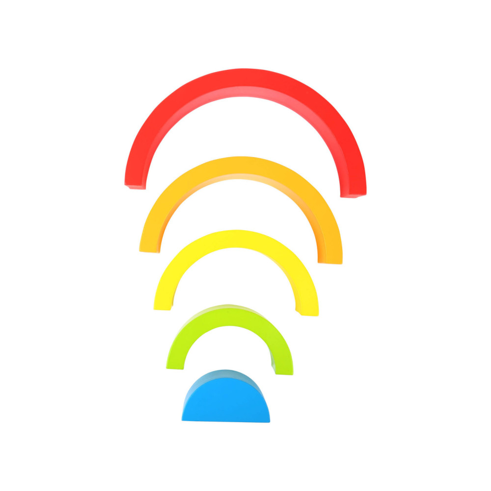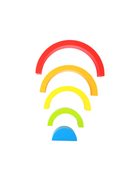 Kun jij ze in de juiste volgorde bij elkaar zetten? Deze felgekleurde halve cirkel van stabiel hout is een gemakkelijke introductie in de wereld van de motoriek. Met zijn op water gebaseerde en speekselbestendige verf biedt het niet alleen een kans om kleuren en vormen te leren, maar ook ruimtelijk inzicht, behendigheid en oog-handcoördinatie bij jonge kinderen. Leuk leerspeelgoed voor thuis.