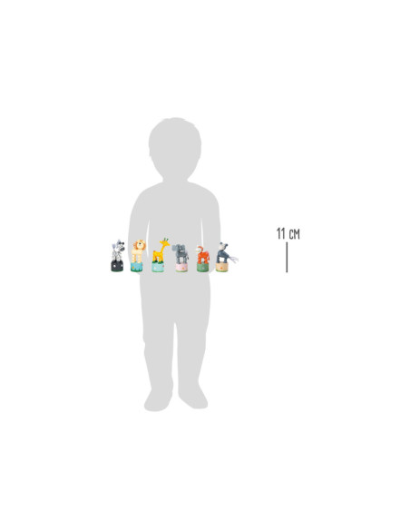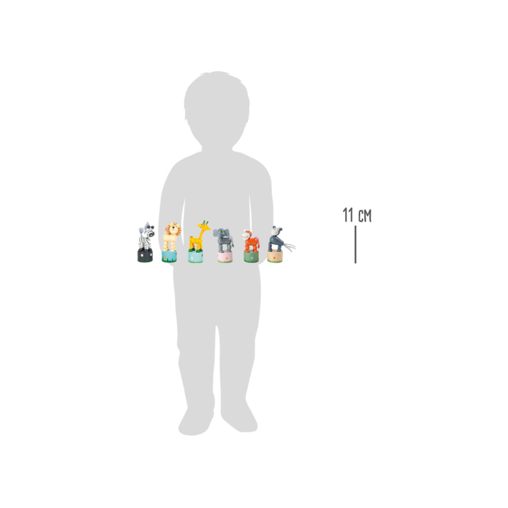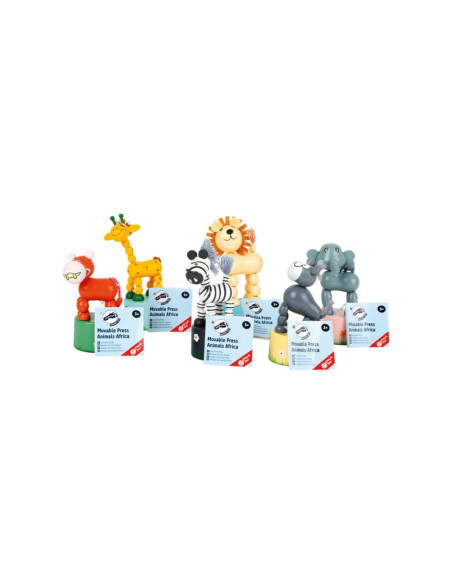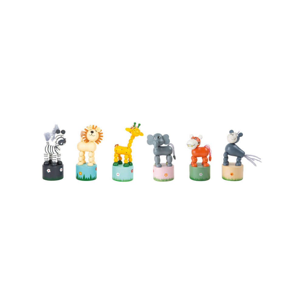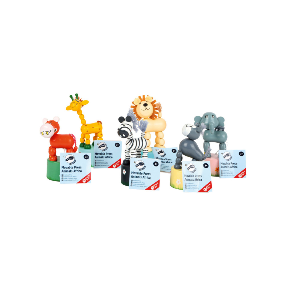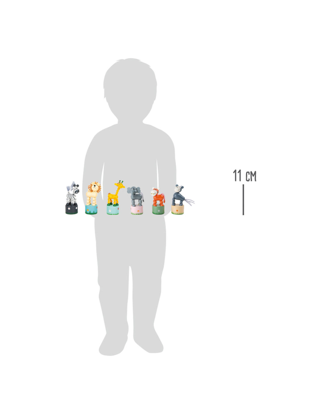 Nu wordt het wiebelig! Door tegen de onderkant van dit speeltje te duwen komen deze vrolijke Afrikaanse dieren tot leven. Ze kunnen veel gekke bewegingen maken en geen twee bewegingen zijn gelijk, afhankelijk van hoe en waar de basis wordt ingedrukt. Het is enorm wiebelplezier voor spelen, verzamelen en cadeau geven! Per 6 stuks.
