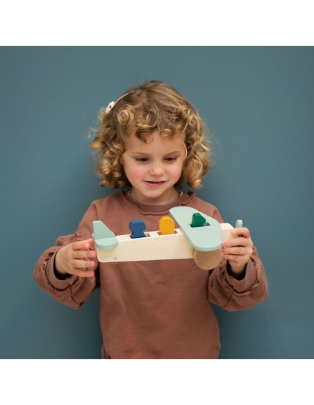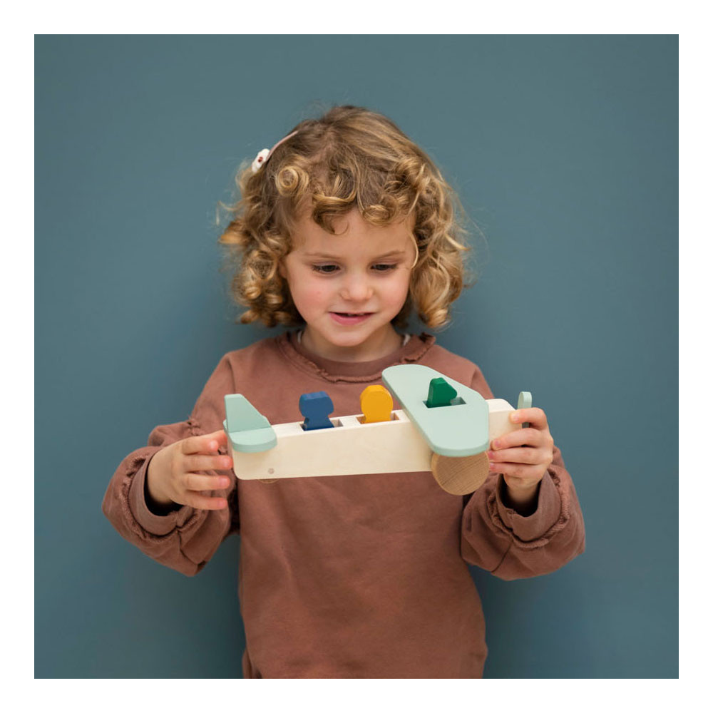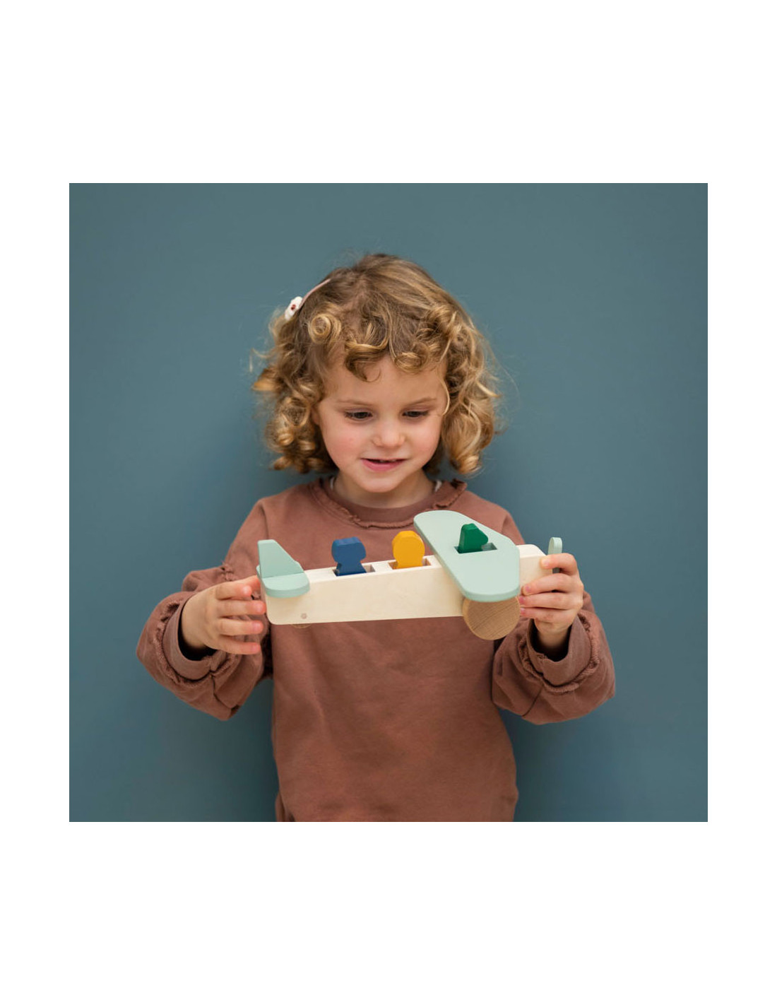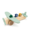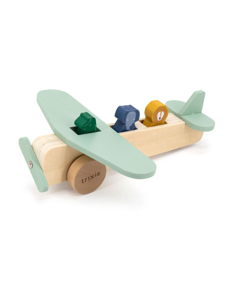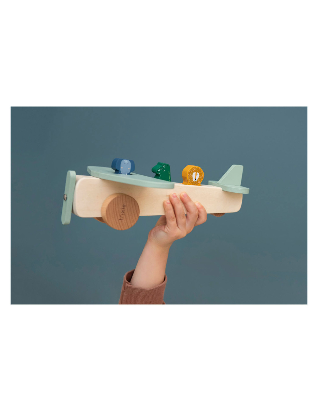 Kom mee vliegen met onze dierenvrienden! Mr. Crocodile is klaar om op te stijgen. Samen met zijn twee passagiers reizen ze de wereld rond. Elke dierenpion past in elke stoel. Een wiel aan de voorkant en een verborgen wiel aan de achterkant zorgen ervoor dat de dieren veilig kunnen landen. Draai aan de propellor en het vliegtuig is klaar om te vertrekken! Het vliegtuig en de dieren zijn gemaakt van 100% FSC © gecertificeerd hout. Alle verven zijn op waterbasis en veilig voor baby's.