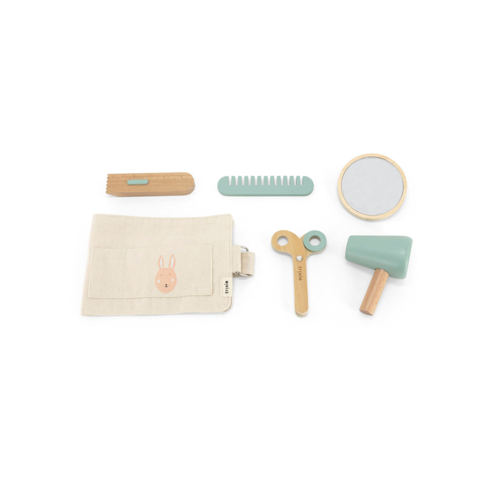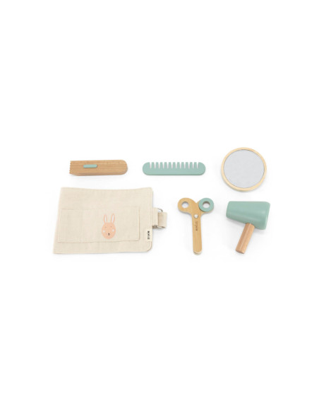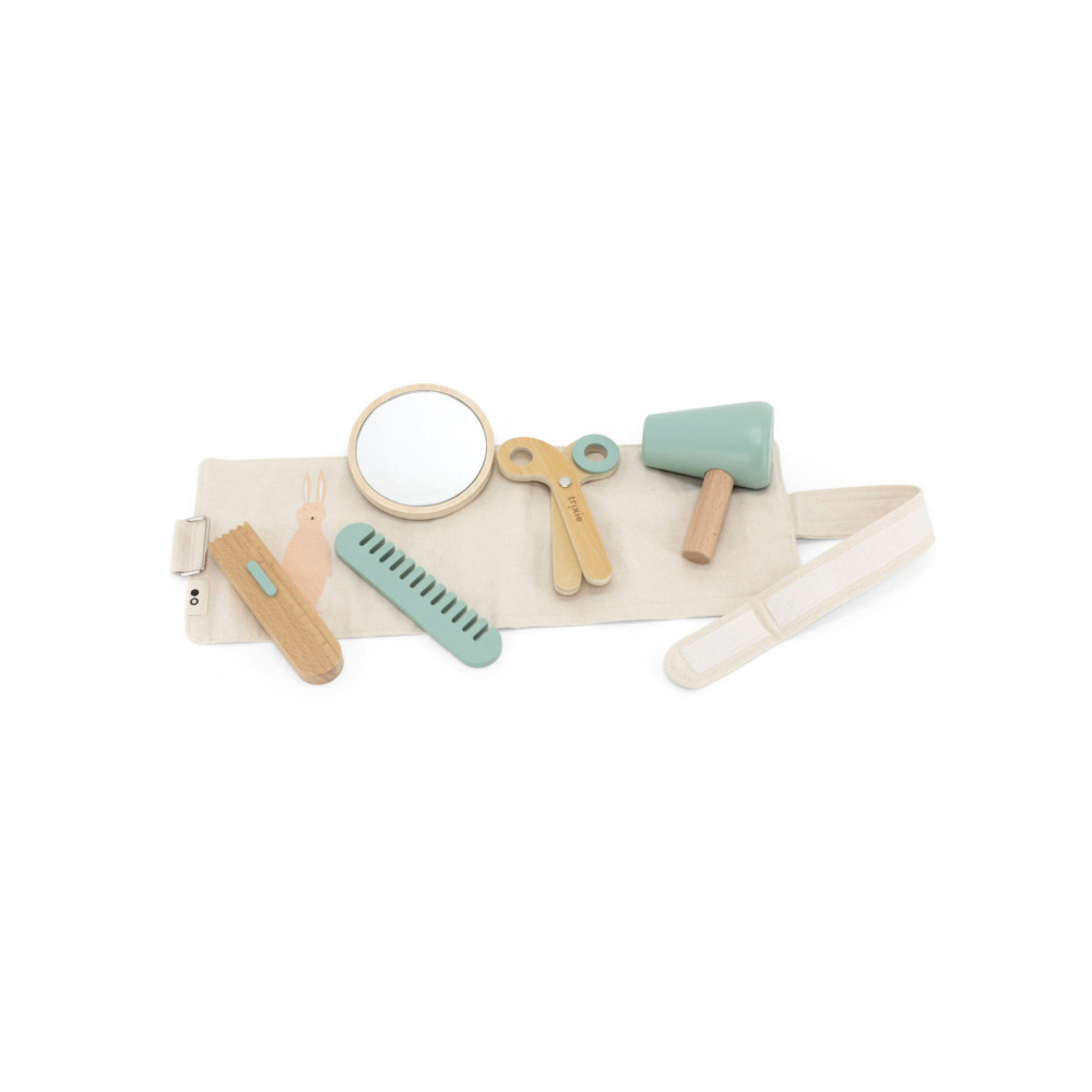 Een prachtige kappersset die garant staat voor urenlang speelplezier! Kam, knip, scheer of föhn je haar en bekijk het resultaat in het spiegeltje. Het zakje kan om de heupen worden gedragen. Perfect om je favoriete pop of broers en zussen een grote make-over te geven!