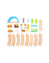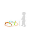 Een ware spoorwegidylle in de kinderkamer! Deze compacte houten speelgoedtreinset heeft alles wat de harten van alle treinreizigers sneller doet kloppen. De rails kan eenvoudig worden gebouwd en vervolgens met de vele accessoires worden omgetoverd tot een prachtige speelgoedtreinwereld, zodat de houten trein met zijn drie wagons op zijn gemak door het land kan tuffen. Jonge spoorwegexploitanten kunnen hier zeker hun fantasie de vrije loop laten. Het is een speelgoedtreinwereld die in elke kinderkamer thuishoort.