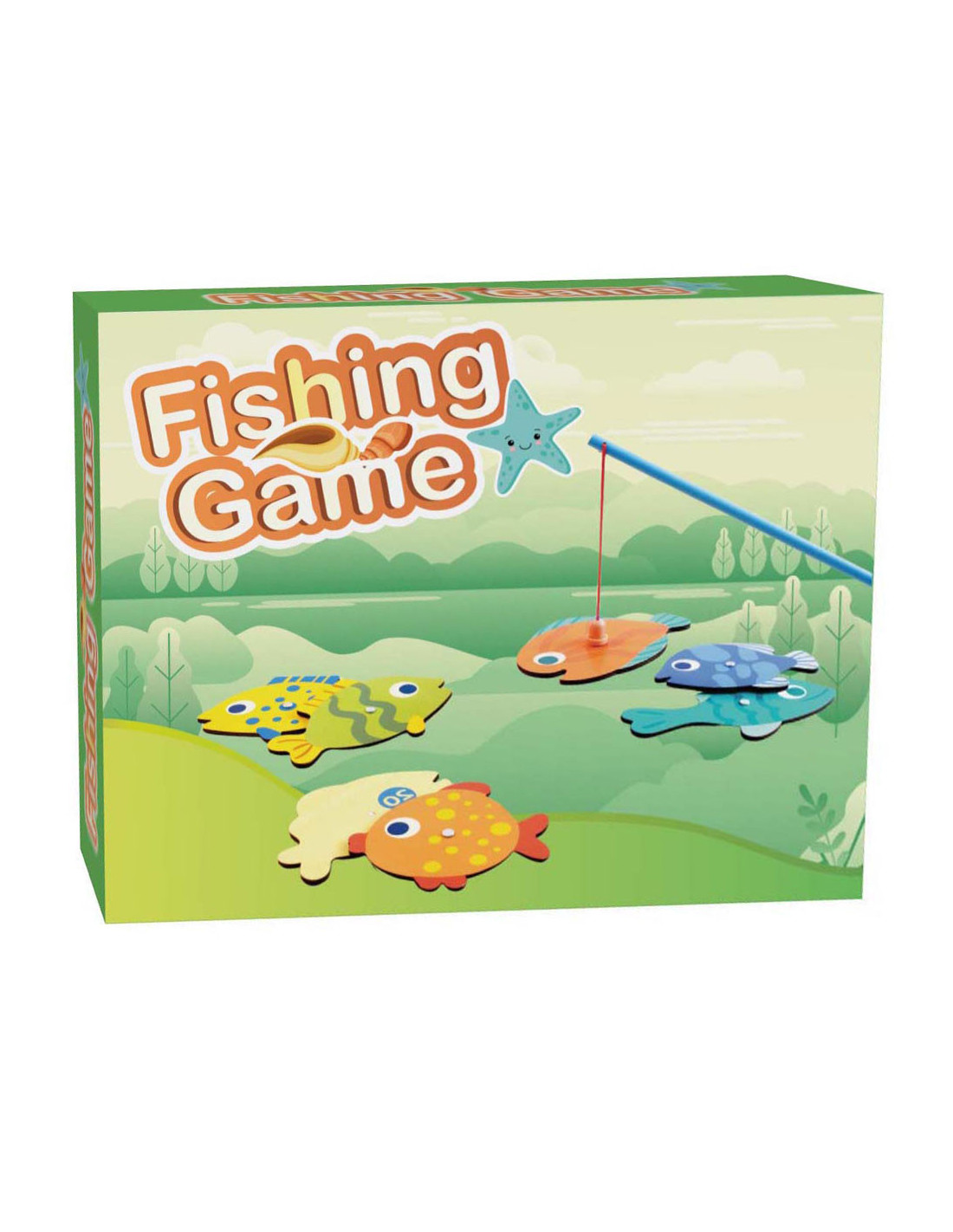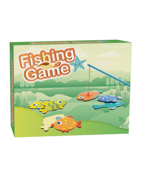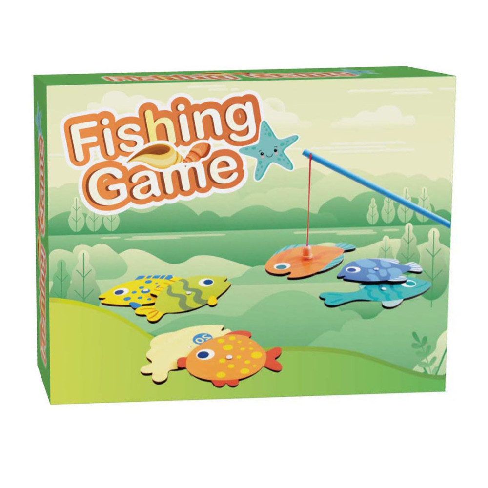 Houten Visvangspel, 9dlg. Inhoud: 7 vissen en 2 hengels.