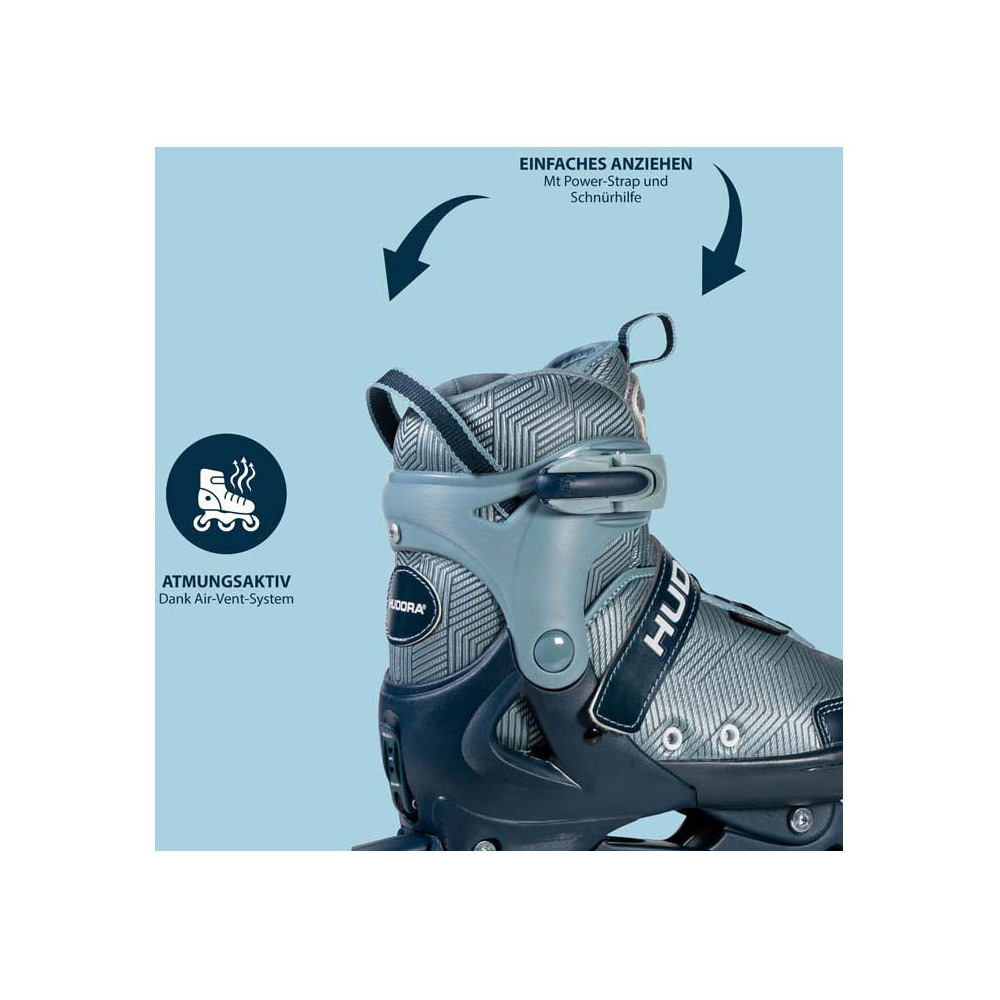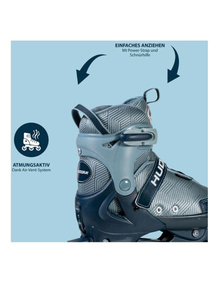 Het Leon-model voor veeleisende skaters maakt indruk met zijn snelle loopeigenschappen en groot comfort. ABEC 5 kogellagers en superlichte wielen maximaliseren het rijplezier. De binnenschoen past zich perfect aan de voet aan en is perfect opgevuld. De schoen kan eenvoudig worden vastgemaakt dankzij de aantrekhulp en het snelvetersysteem met powerstrap en drukgesp. Als het warm wordt, zorgt het luchtdoorlatende Airvent-systeem voor verkoeling. Bijzonder praktisch: met de microverstelling groeien de skates over vier maten.