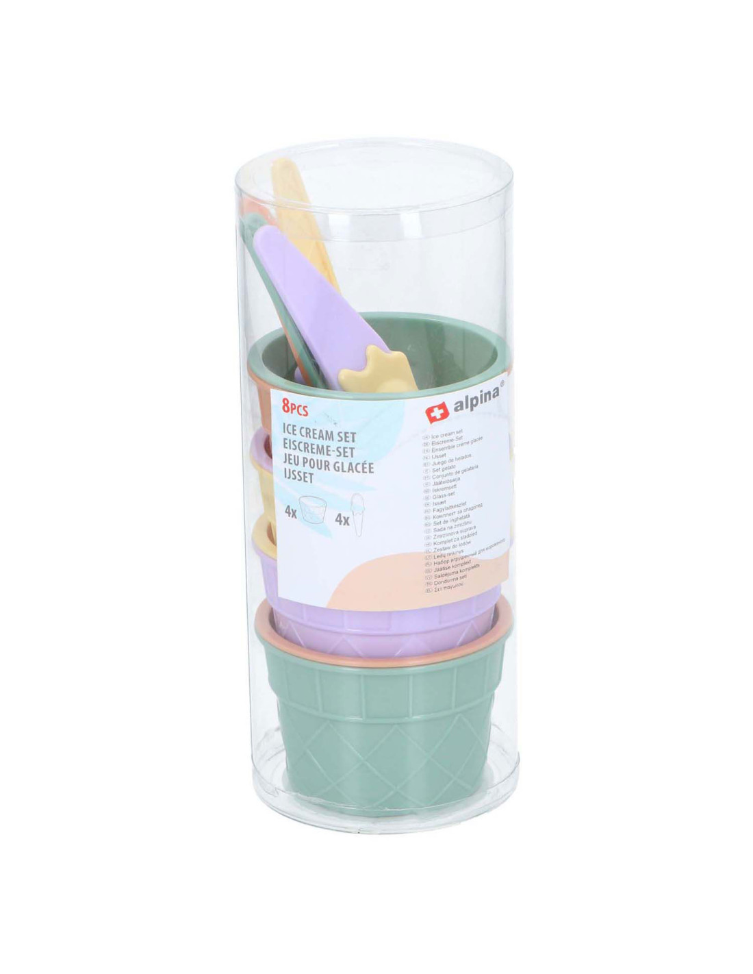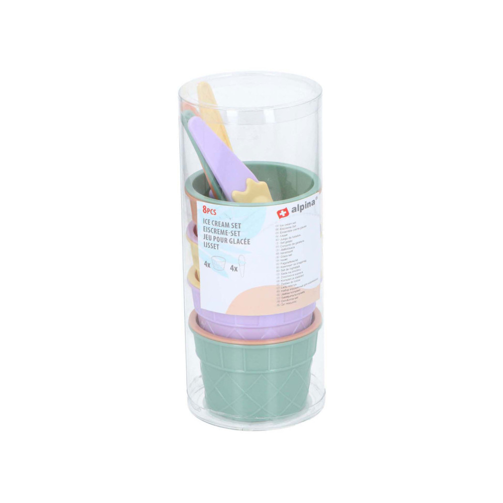 Deze kleurrijke 8-delige ijsset bevat vier bekers en vier lepels, perfect voor het serveren van heerlijke ijsjes. Ideaal voor feestjes of elke dag plezier. Kenmerken • Kleurrijk ontwerp • Inclusief lepels en bekers • Geschikt voor feestjes