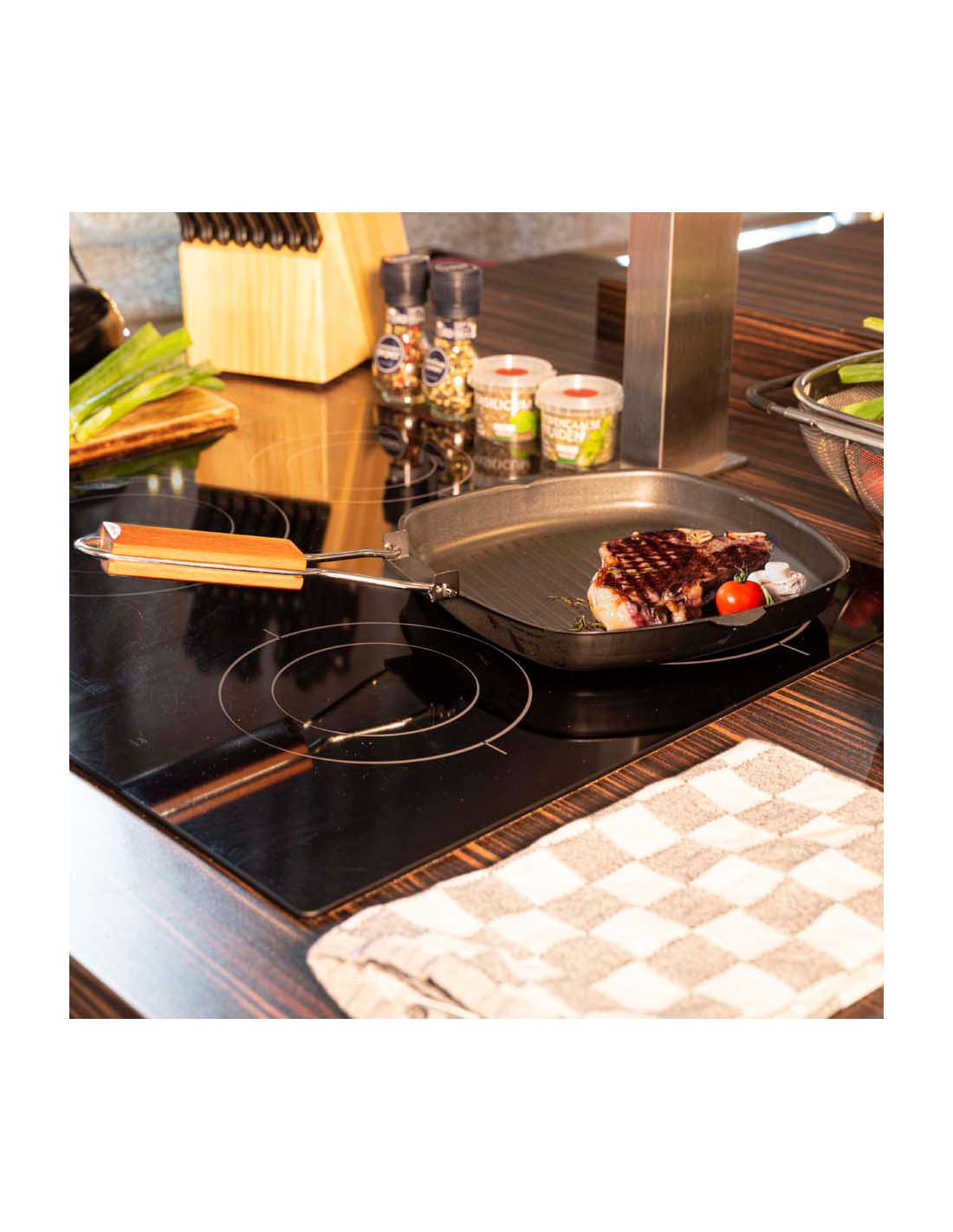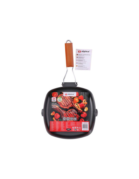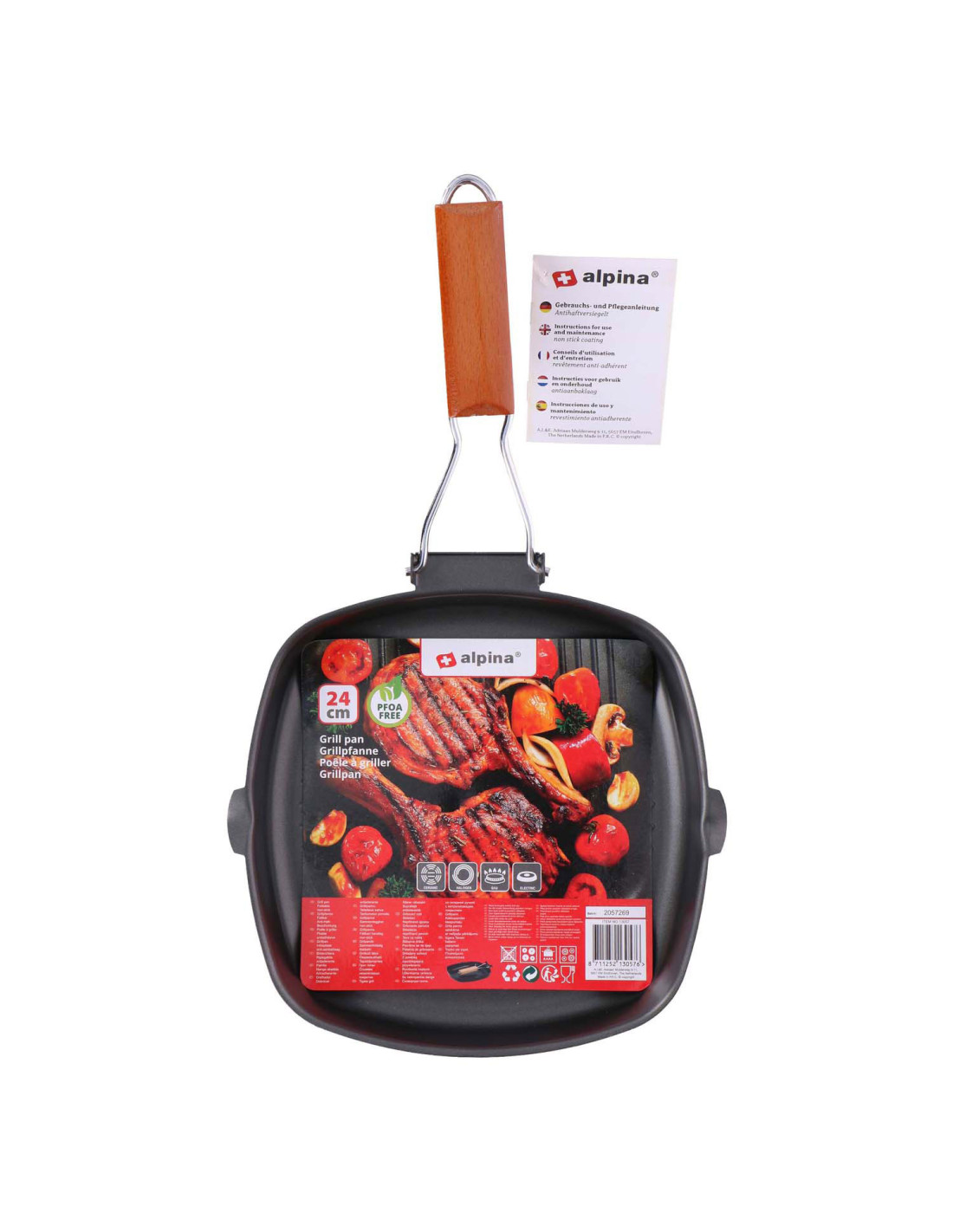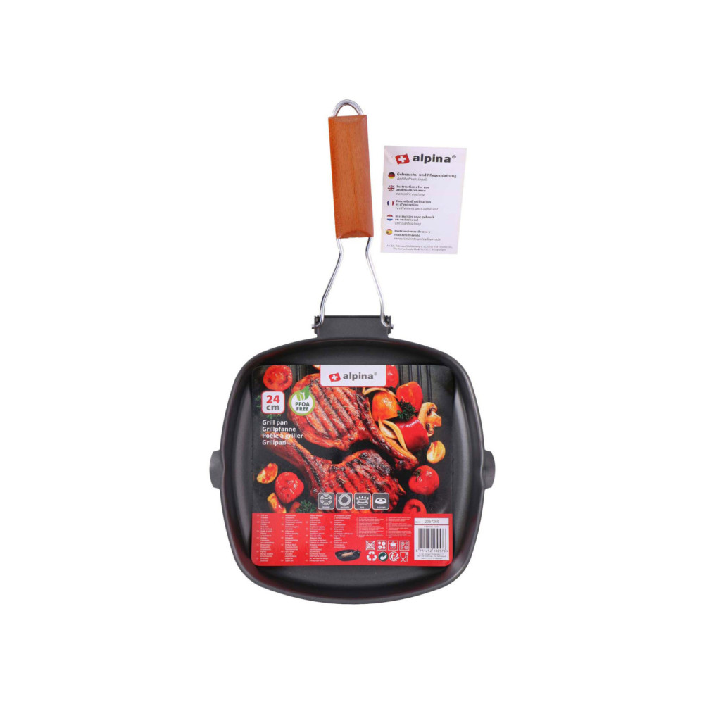 Deze inklapbare grillpan van ALPINA is niet alleen handig in gebruik, maar heeft ook een anti-aanbaklaag voor een moeiteloze bereiding van je maaltijden. Kenmerken • Inklapbaar • Anitaanbaklaag • Afmetingen: 24 x 24 cm