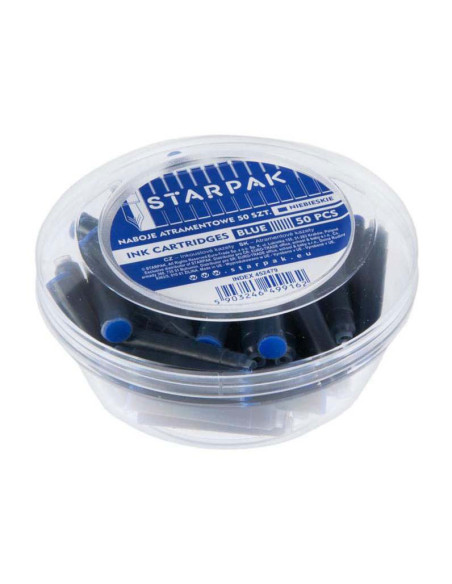 Set van 50 blauwe inktpatronen, die snel drogen. Niet geschikt voor kinderen jonger dan 3 jaar.