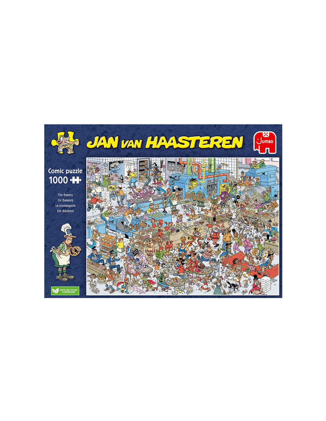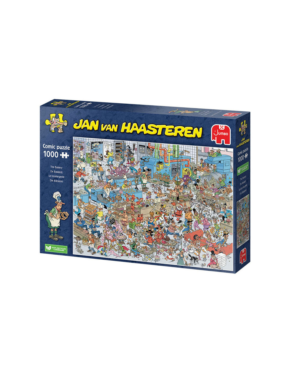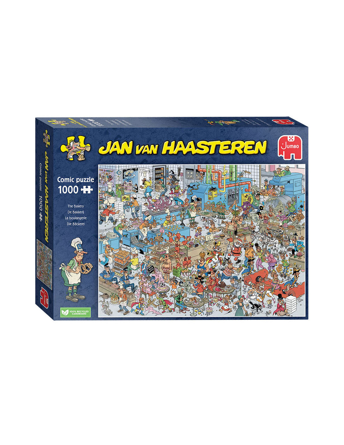 Brood, gebak en koekjes, allemaal specialiteiten van Jan van Haasteren's Bakkerij. Octo is een ware productiekampioen, en Jan heeft een wel heel slimme manier gevonden om spookkoekjes te maken. Terwijl Sinterklaas en de Kerstman niet op hun beurt kunnen wachten. Deze specialiteiten moeten wel buitengewoon lekker zijn!Een Jan van Haasteren puzzel is meer dan een gewone legpuzzel: het is een avonturenserie, met vertrouwde hoofdrolspelers in een eindeloos decor vol absurde details. Ontdek alle doldwaze avonturen van de Jan van Haasteren-familie!We zijn trots dat onze puzzels zijn gemaakt van gerecycled karton in Europa. Om het karton in puzzelstukjes te snijden, gebruiken we het dunste mes dat er is. De puzzel ziet er bijna naadloos uit als hij klaar is. Geniet van deze Jan van Haasteren-puzzel!
