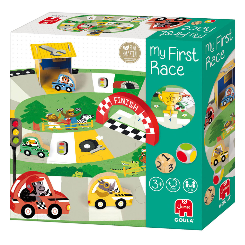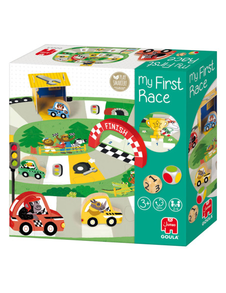 - INHOUD: 9-delig speelbord, 4 auto's, 1 finishboog, 1 dobbelsteen met cijfers en 1 stoplichtdobbelsteen