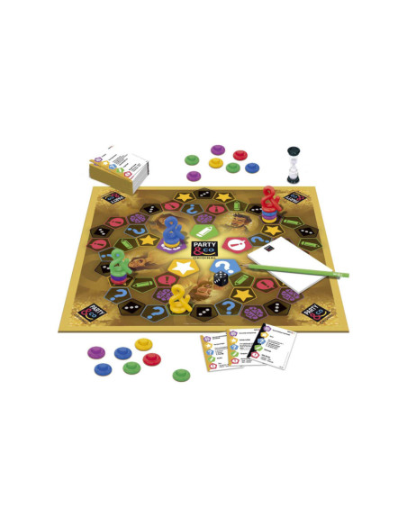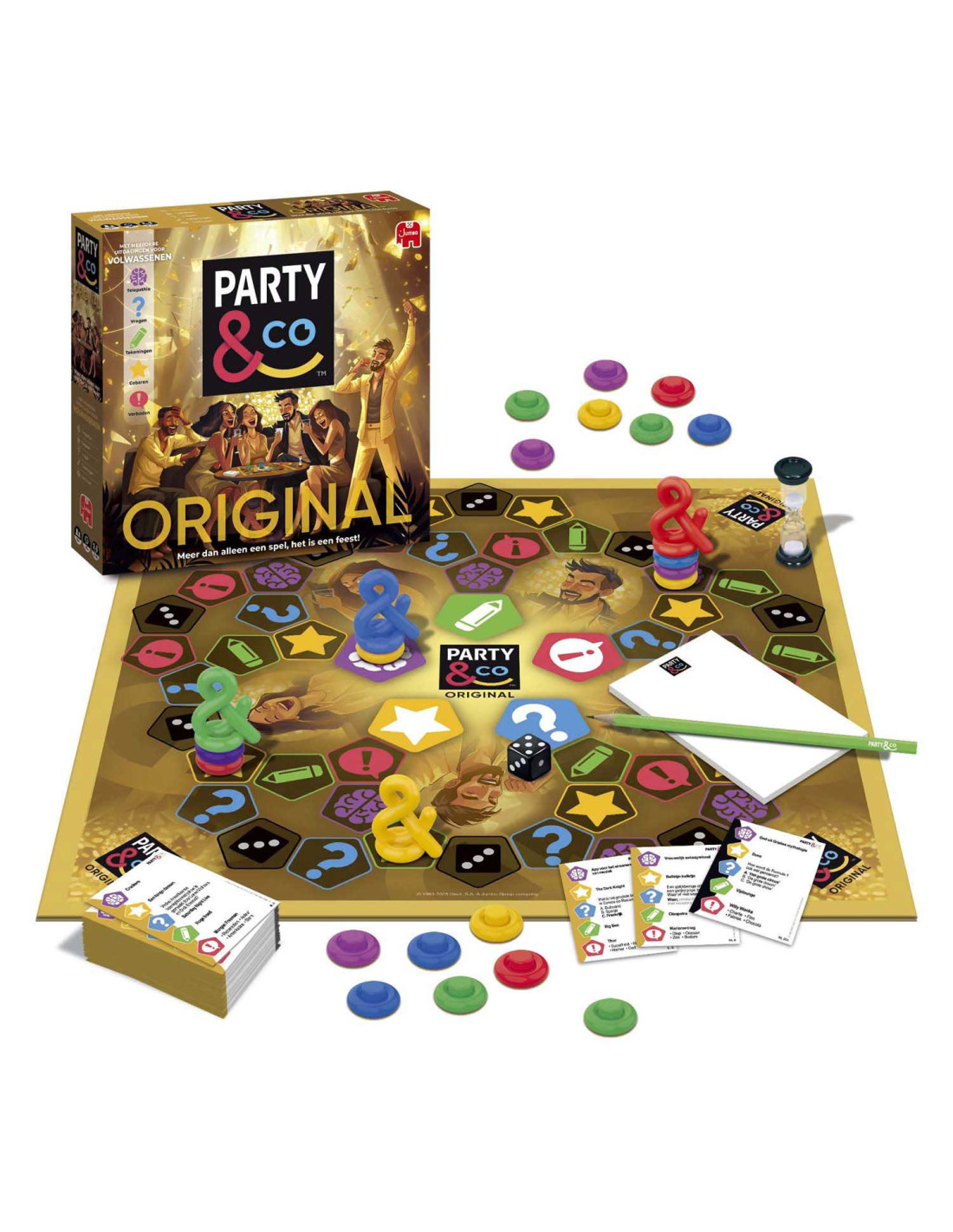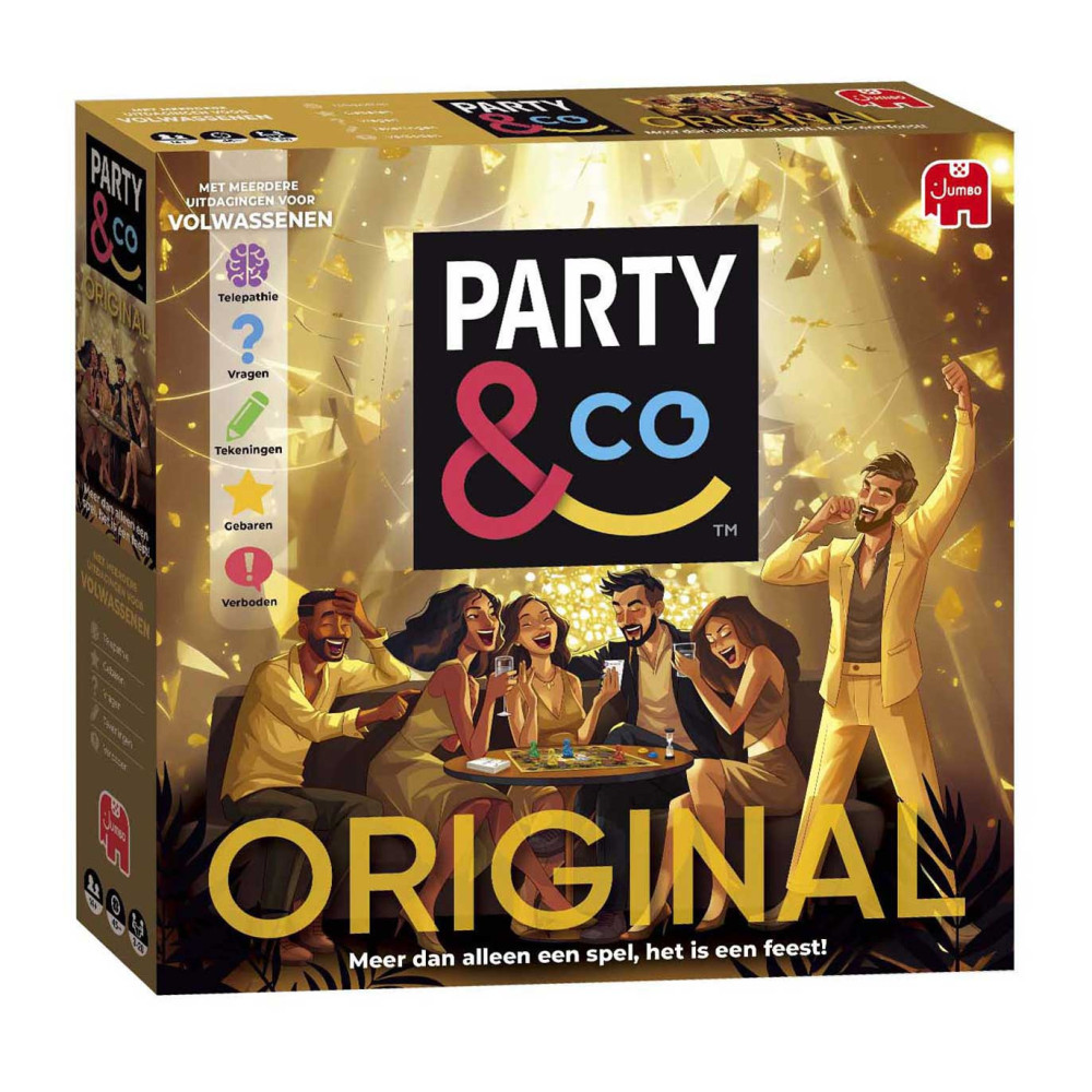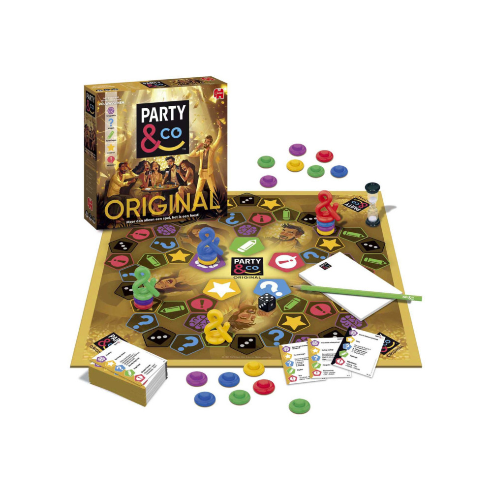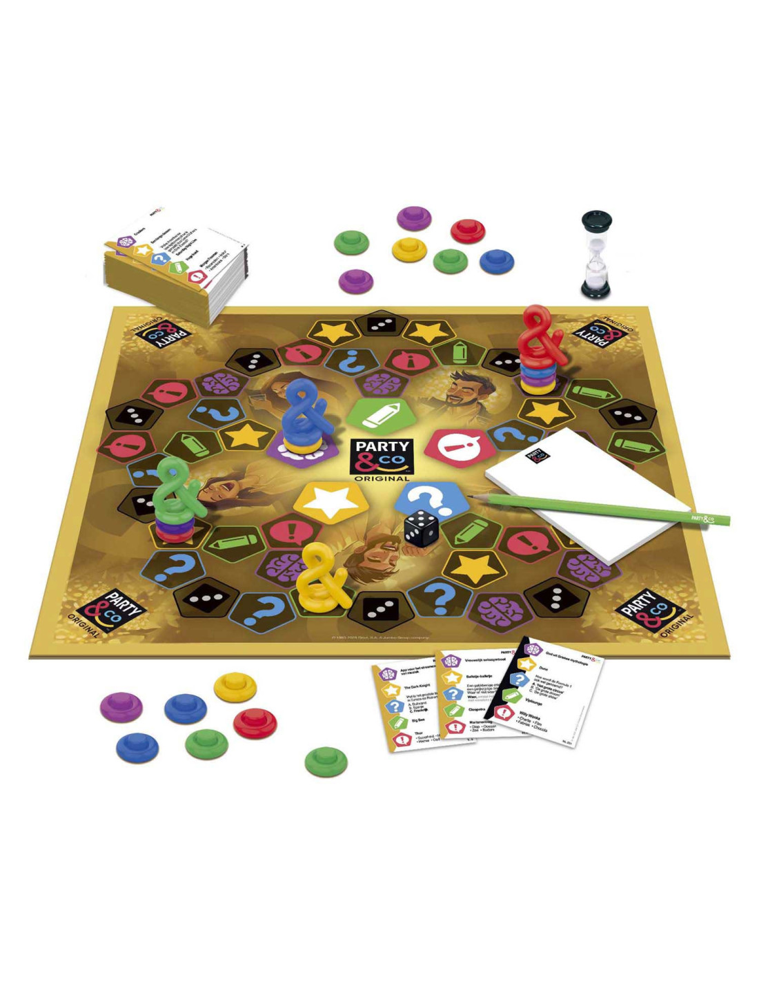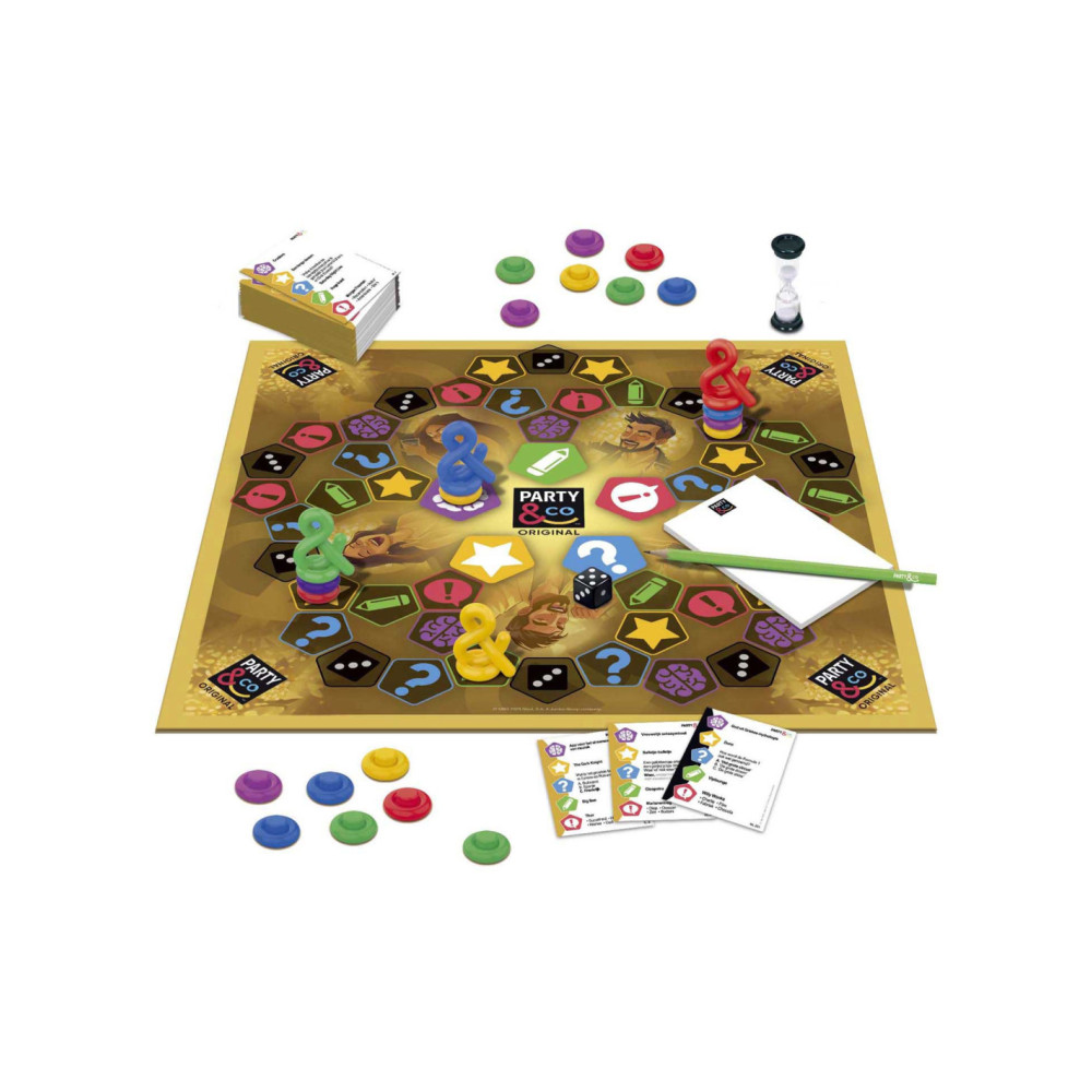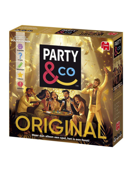 Party & Co Original is hét feestspel dat garant staat voor hilariteit, teamwork en een flinke dosis gezelligheid! Speel in teams en werk samen om opdrachten te volbrengen in vijf unieke categorieën: Telepathie, Gebaren, Vragen, Tekeningen en Verboden woord. Elk vak op het speelbord daagt je team uit op een andere manier, van creatief tekenen tot snel denken zonder verboden woorden te gebruiken. Heb je een opdracht goed uitgevoerd? Dan mag je team verder richting het midden van het bord.