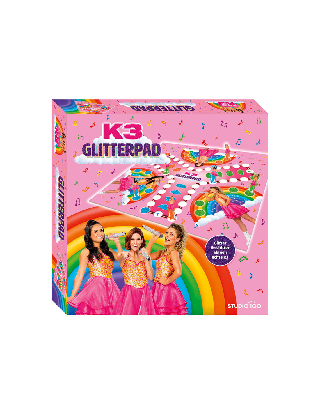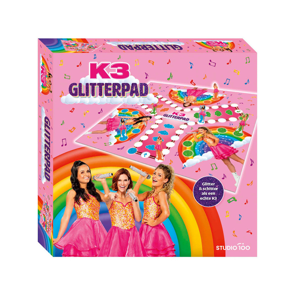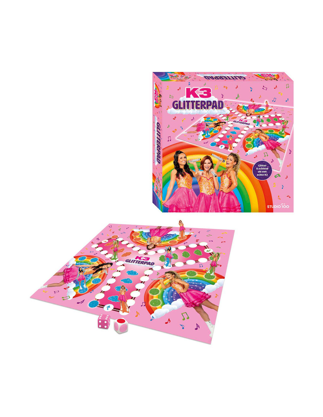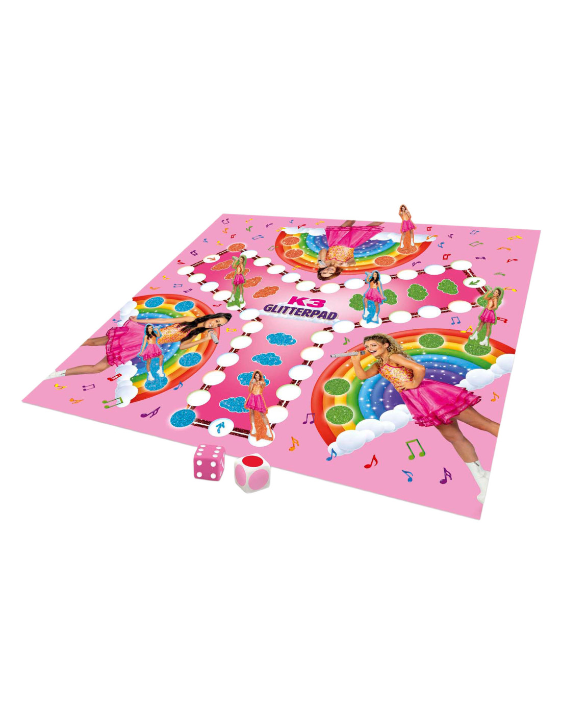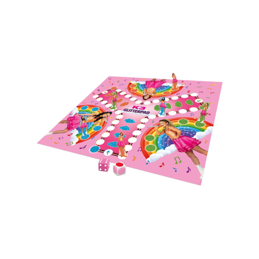 Het K3 Glitterpad is een kleurrijk bordspel met glittereffecten en bekende K3-figuren. Geschikt voor 2 tot 4 spelers vanaf 4 jaar, met speelfiguren, dobbelstenen en een vrolijk vormgegeven bord.