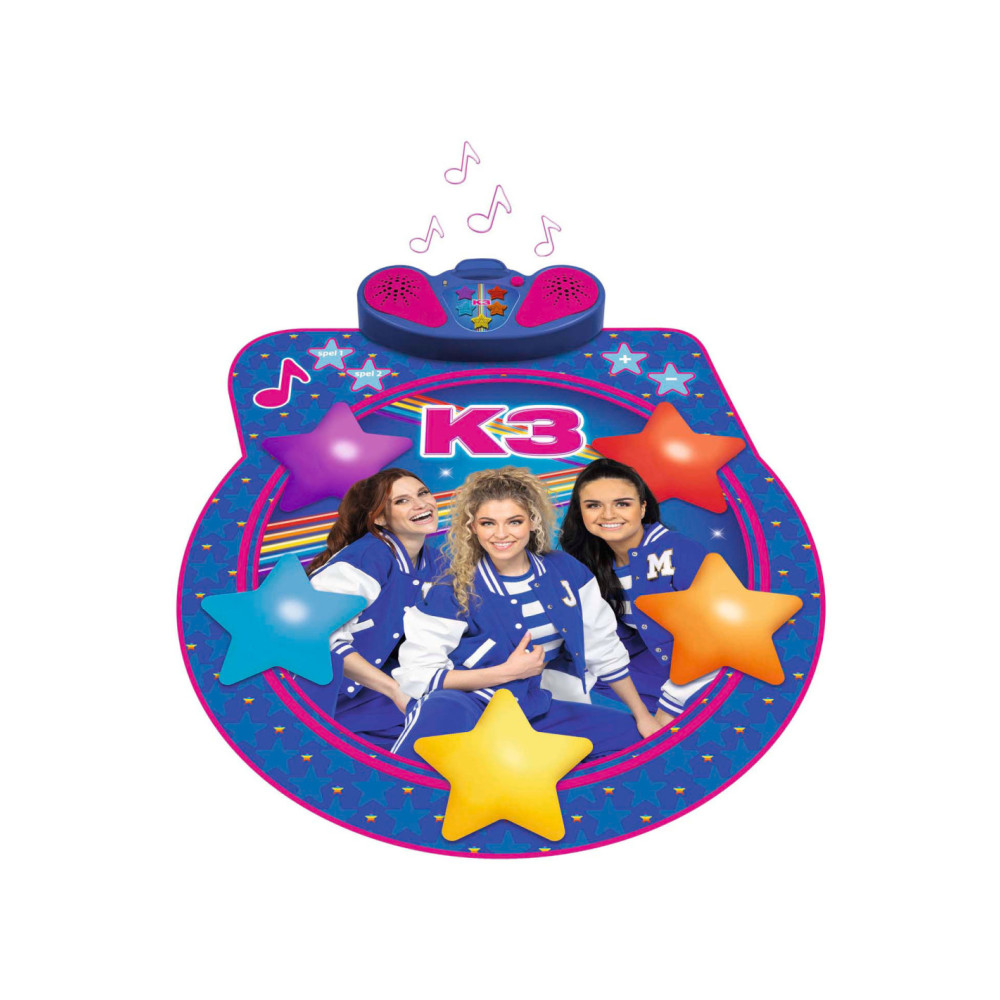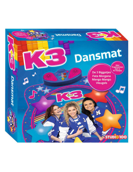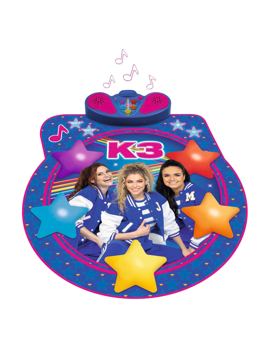 Wil jij lekker dansen en bewegen? Met de K3 dansmat kun jij helemaal losgaan! Verzin zelf wat coole moves of swing mee op de nieuwste K3 hits. Volg de lichtjes op de muziekbox en oefen jouw dansoptreden. Ben je er klaar voor?