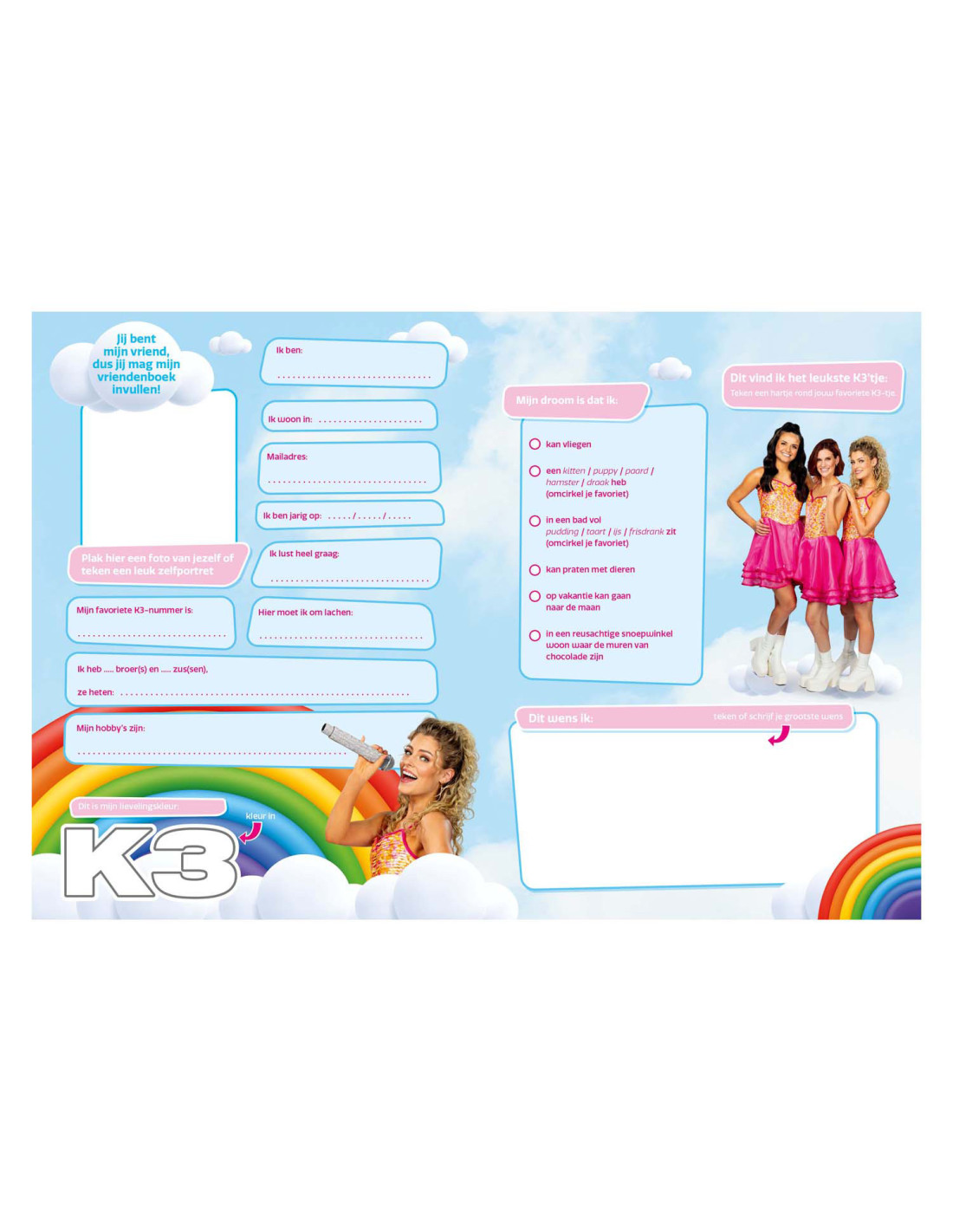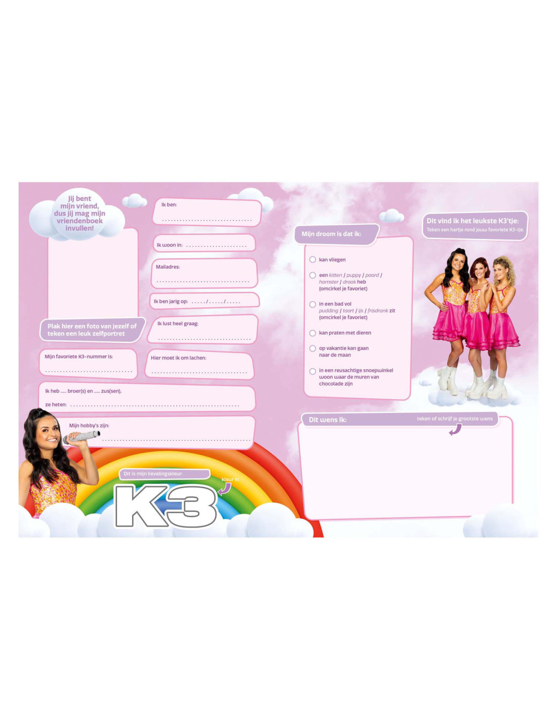 Het K3 Vriendenboek - Lied van de Zeemeermin is een kleurrijk invulboek met ruimte voor klasgenootjes en vriendjes om over zichzelf te schrijven. Geschikt vanaf 4 jaar, met afbeeldingen van Hanne, Marthe en Julia. Gemaakt van papier en karton.