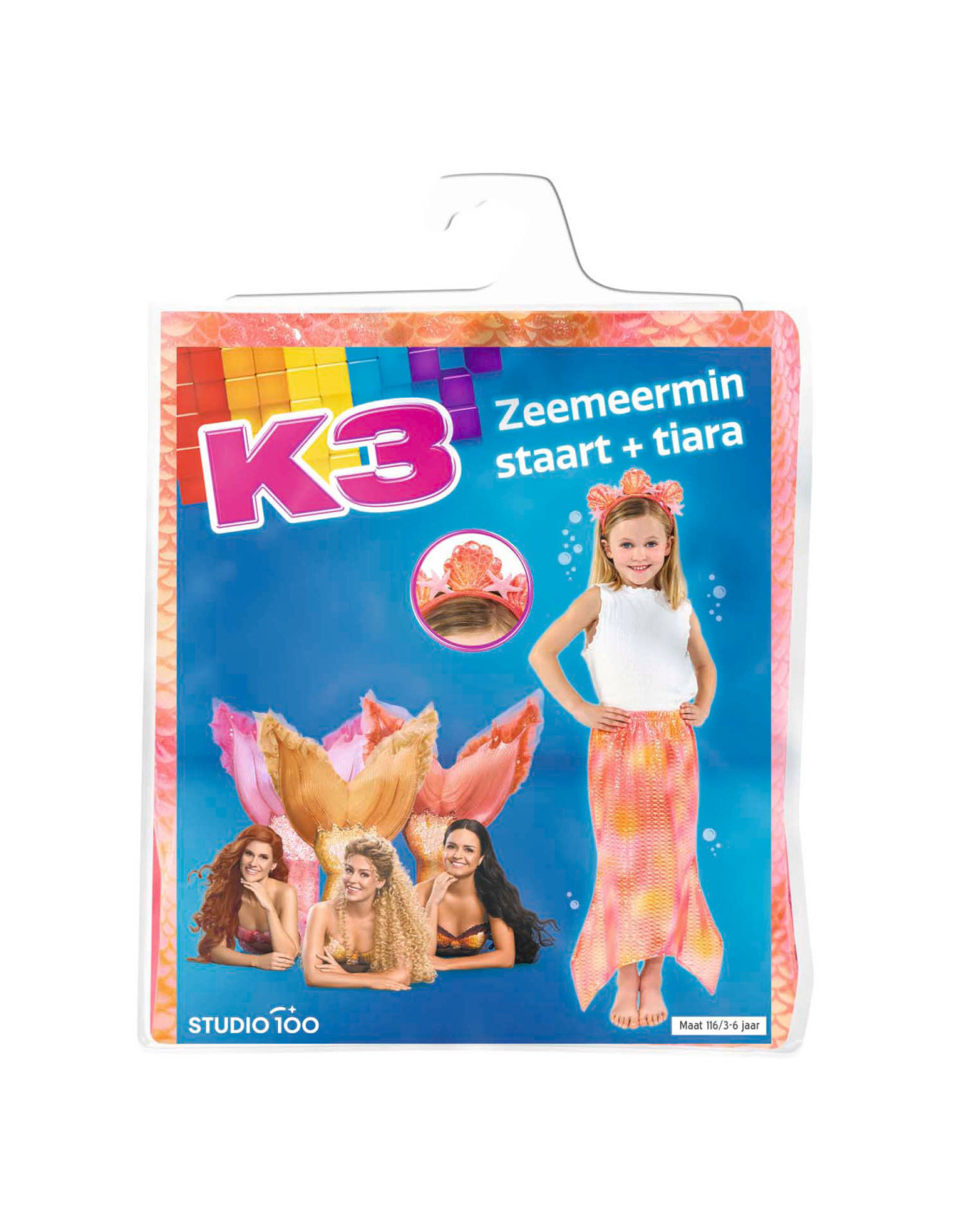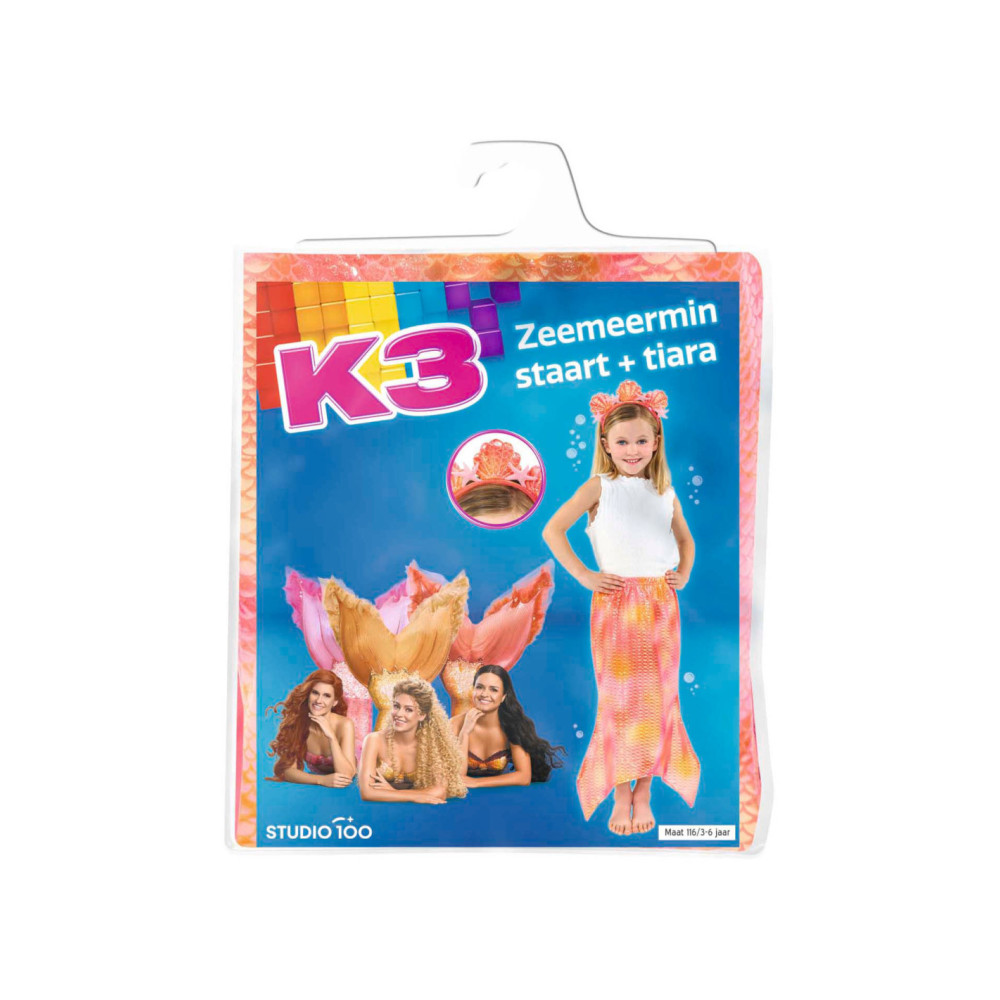 Maak van elke dag een magisch zeemeerminavontuur met deze prachtige K3 verkleedstaart en bijpassende tiara! Maat: 116 (3 tot 6 jaar).