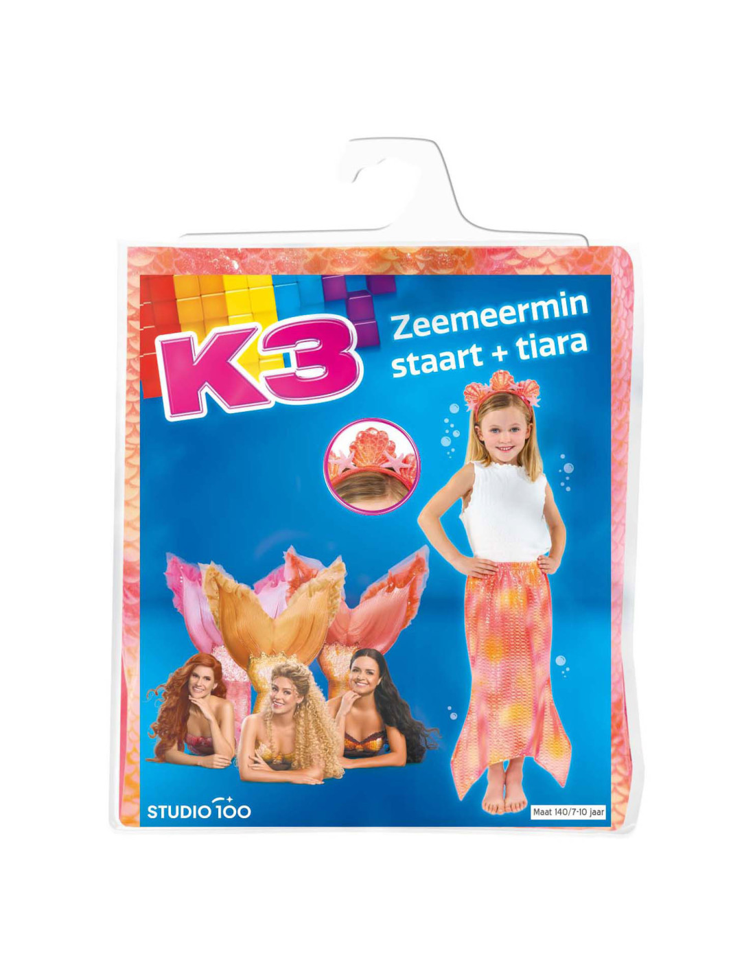 Maak van elke dag een magisch zeemeerminavontuur met deze prachtige K3 verkleedstaart en bijpassende tiara! Maat: 140 Geschikt voor kinderen van 7-10 jaar.