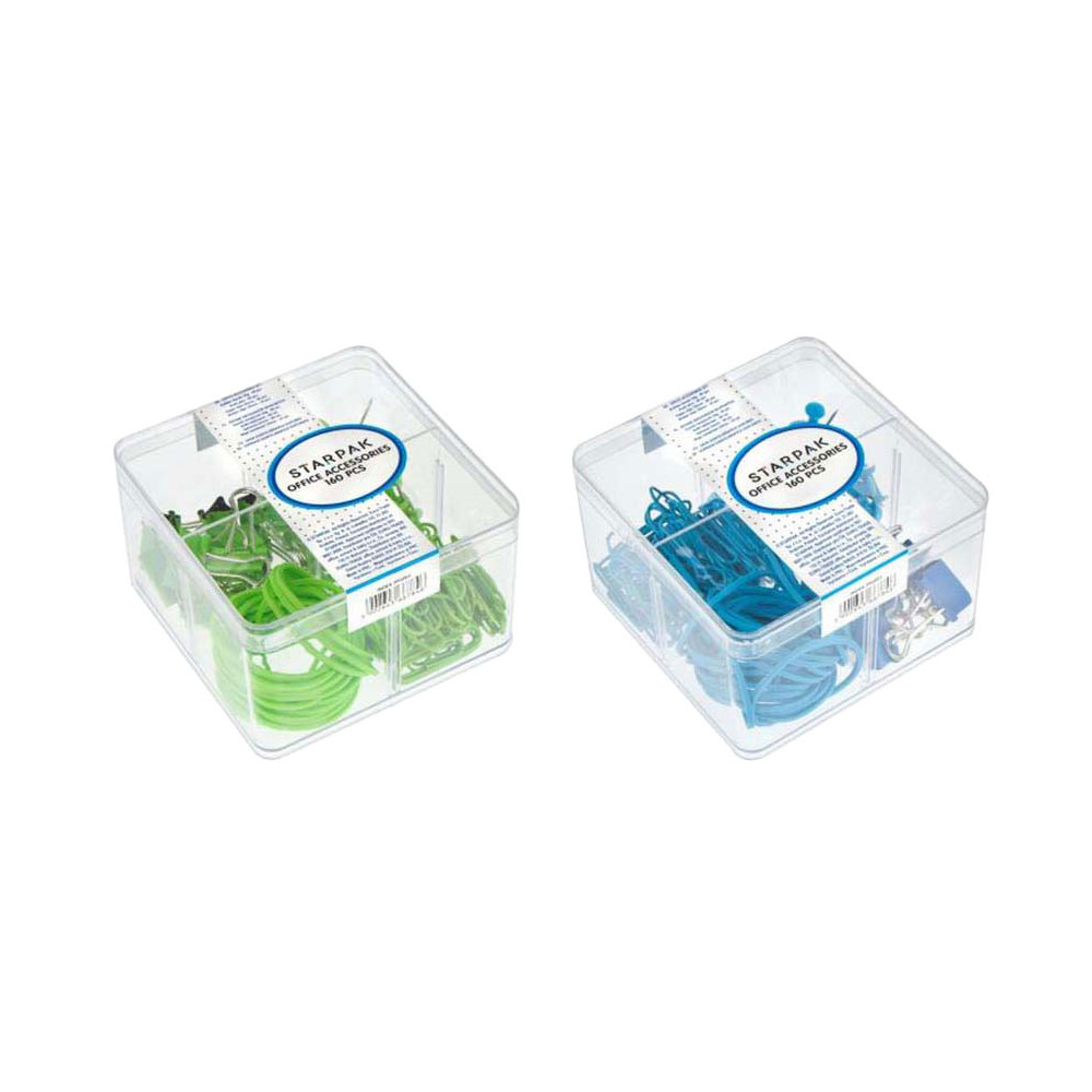 Kantoor accessoires, bevat 160 onderdelen. Geschikt voor kinderen vanaf 3 jaar. Afmeting verpakking: 6 x 9,5 x 9,5 cm.