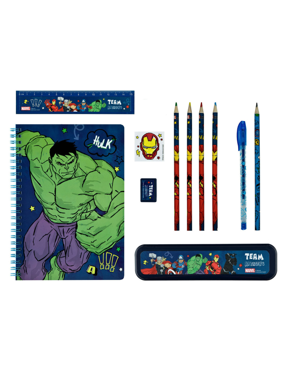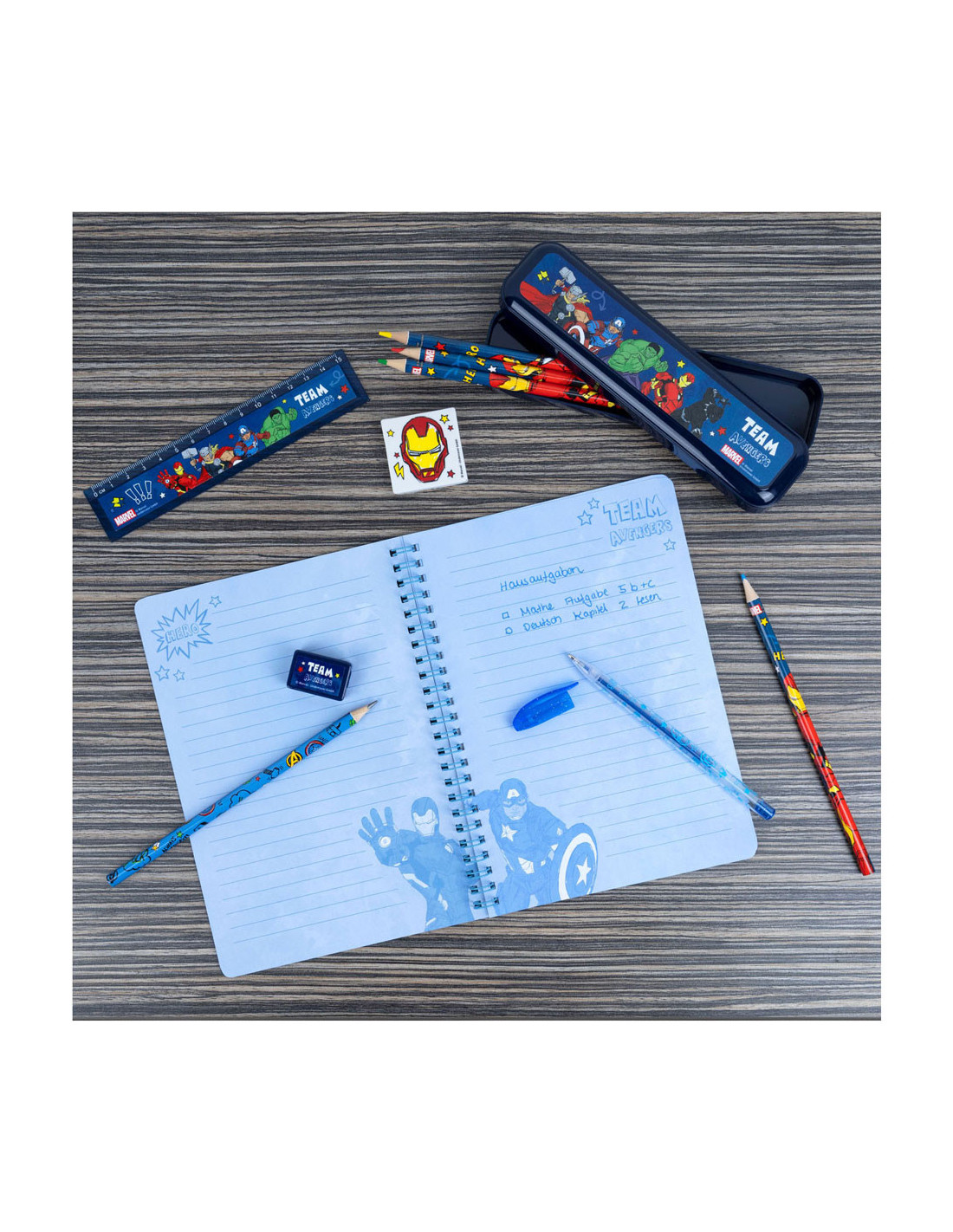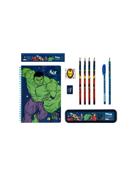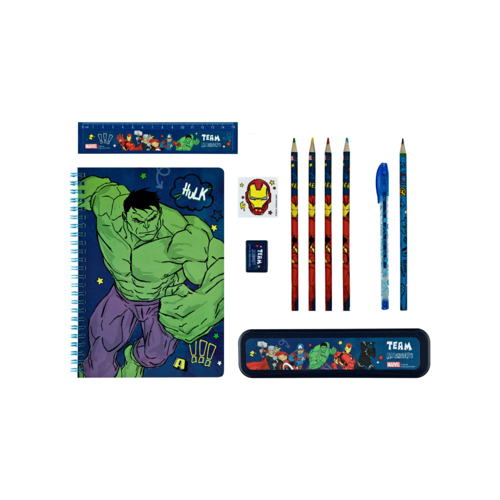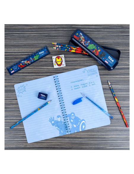 Transparant PVC-etui vol schrijfwaren van De Avengers. Inhoud: