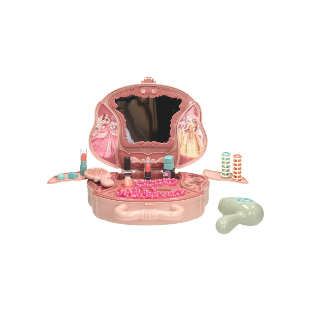 Roze beautycase in speelkoffer met accessoires, vanaf 3 jaar.