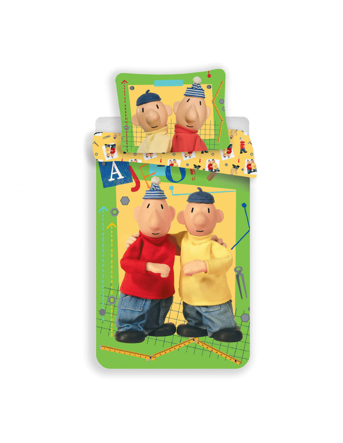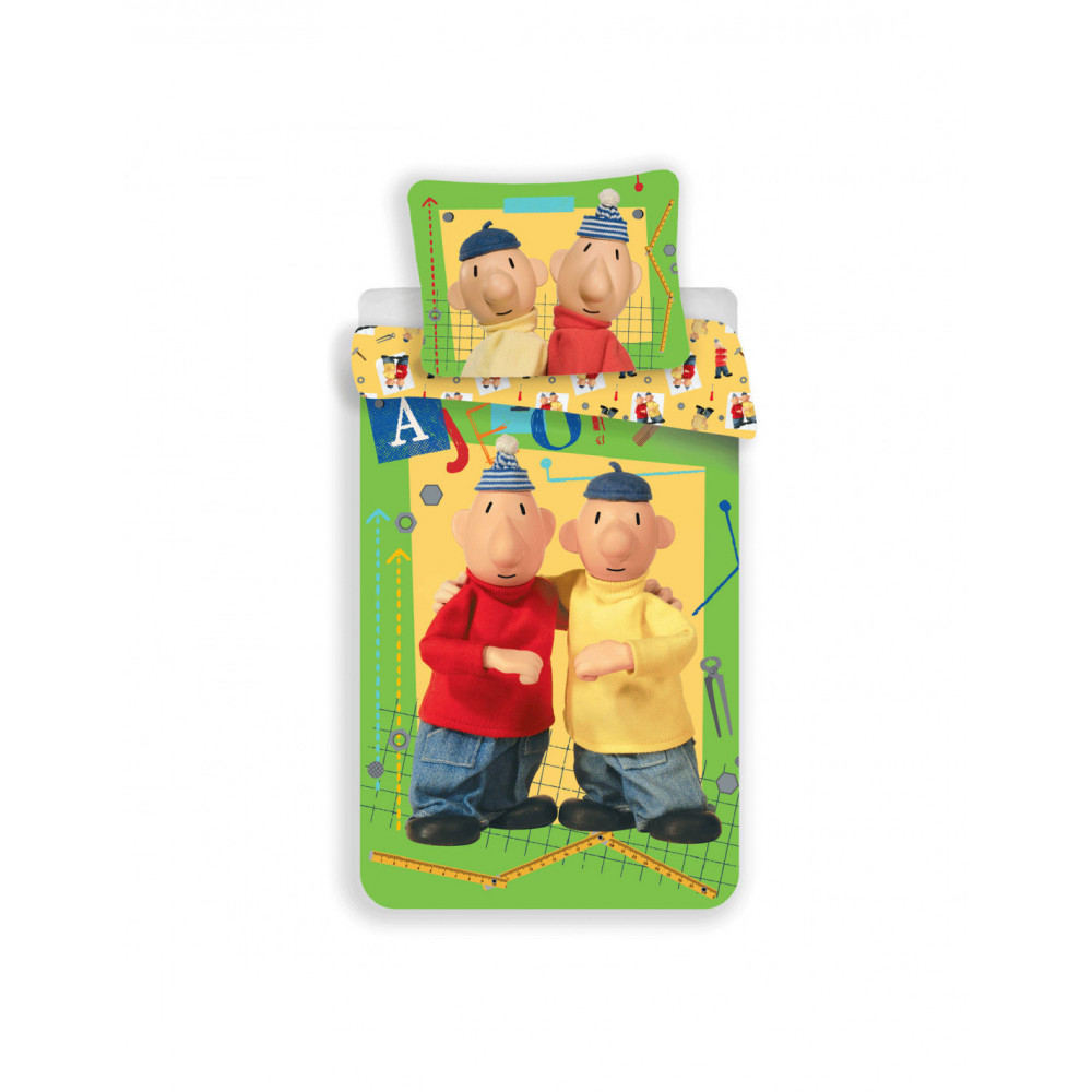 Op het groene kinderovertrek staan de twee buurmannen in hun kenmerkende outfits afgebeeld. A je to! Het 1-persoons dekbedovertrek is 140x200 centimeter. De kussenslopen zijn extra groot met hun 70 x 90 centimeter.