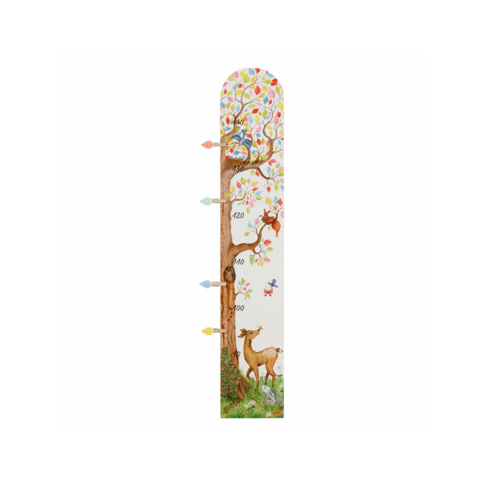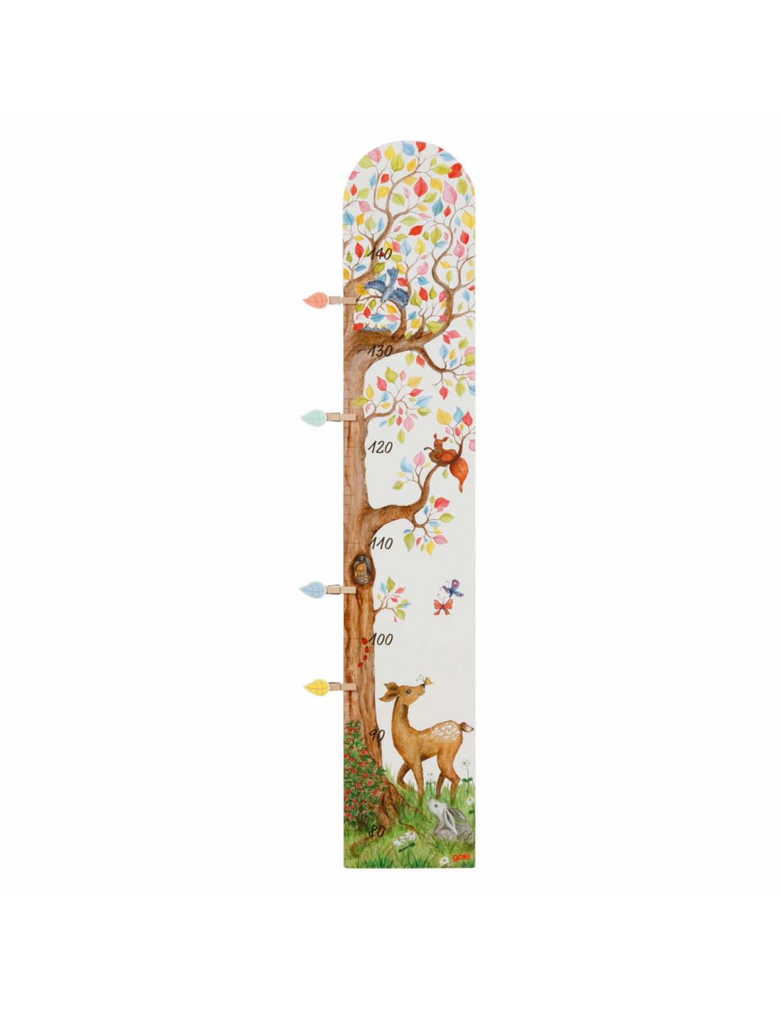 De kleintjes worden zo snel groot, elk stukje moet vastgehouden worden. In dit geval helpen clips met gekleurde bladeren, die tot 145 cm groot kunnen zijn, om alle details op de liefdevol vormgegeven meetlat vast te leggen. De houten meetlat is een klassieker voor elke kinderkamer en is met het idyllische tafereel van een hert op een open plek een echte blikvanger.