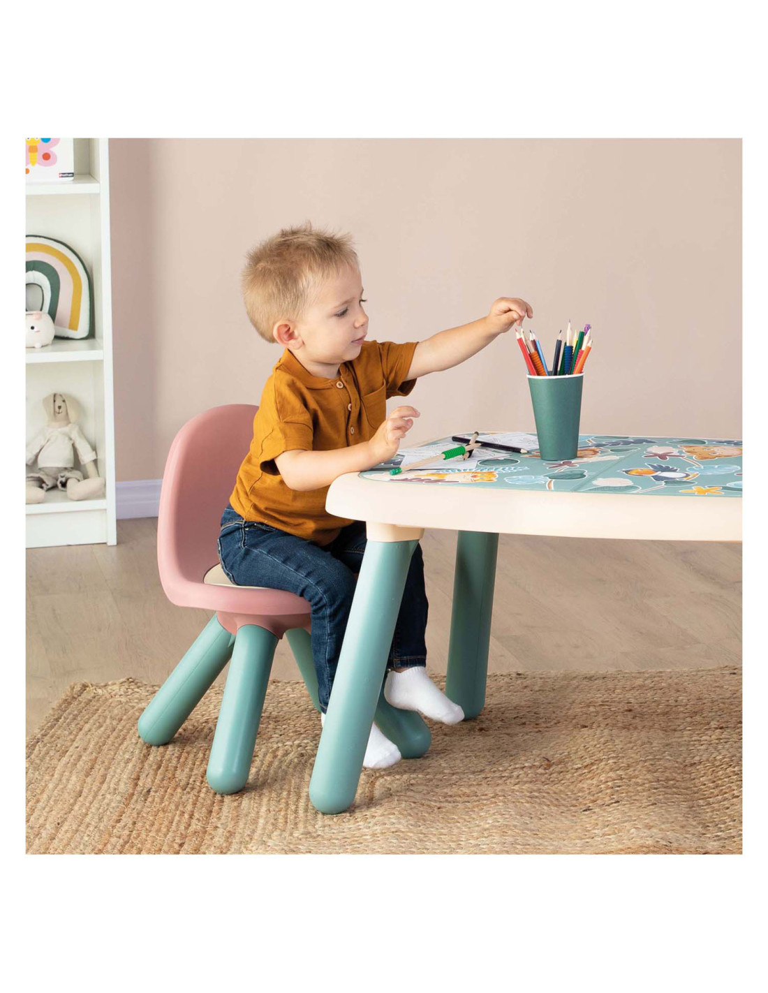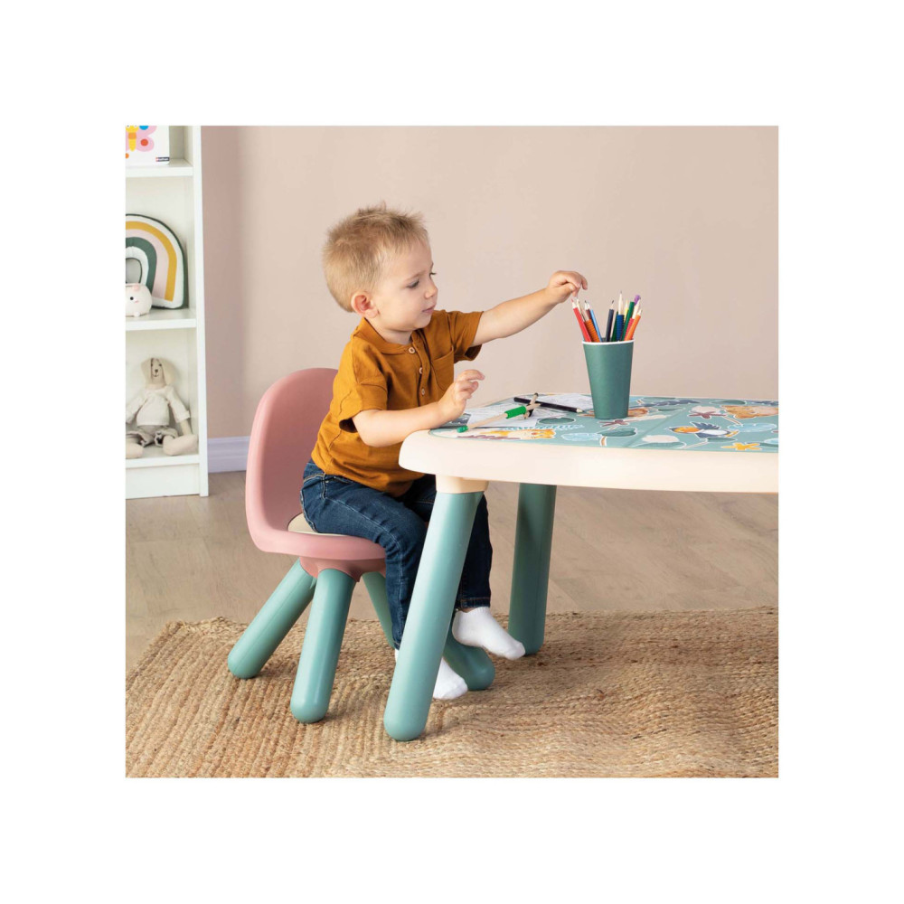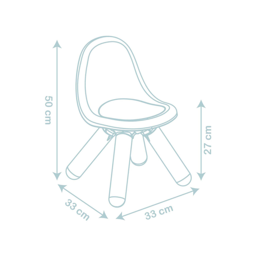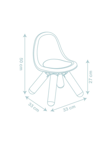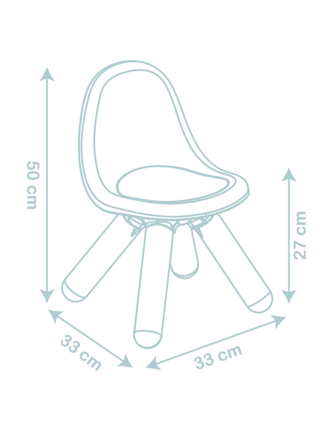 Roze kinderstoel. De stoel heeft een afmeting van 33x33x50 cm en kan tot 50 kg gewicht dragen. Geschikt voor kinderen vanaf 18 maanden.