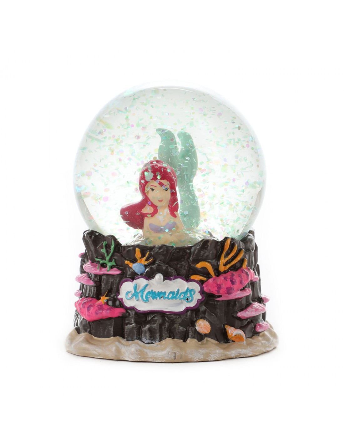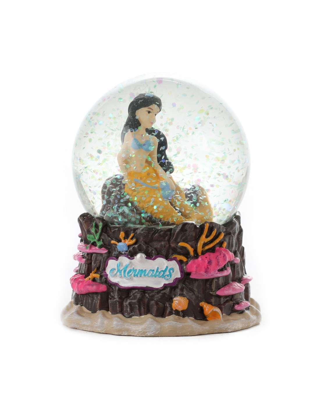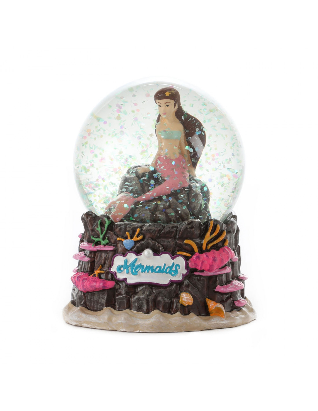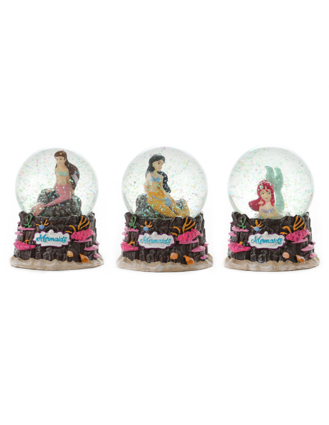 MERMAIDS Sneeuwbol met een zeemeermin. Na het schudden met de glazen bol, bevestigd op een mooie stevige voet, dwarrelen er glitters rond het beeldschone meisje met vissenstaart. Er zijn 3 verschillende soorten beschikbaar.