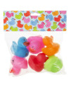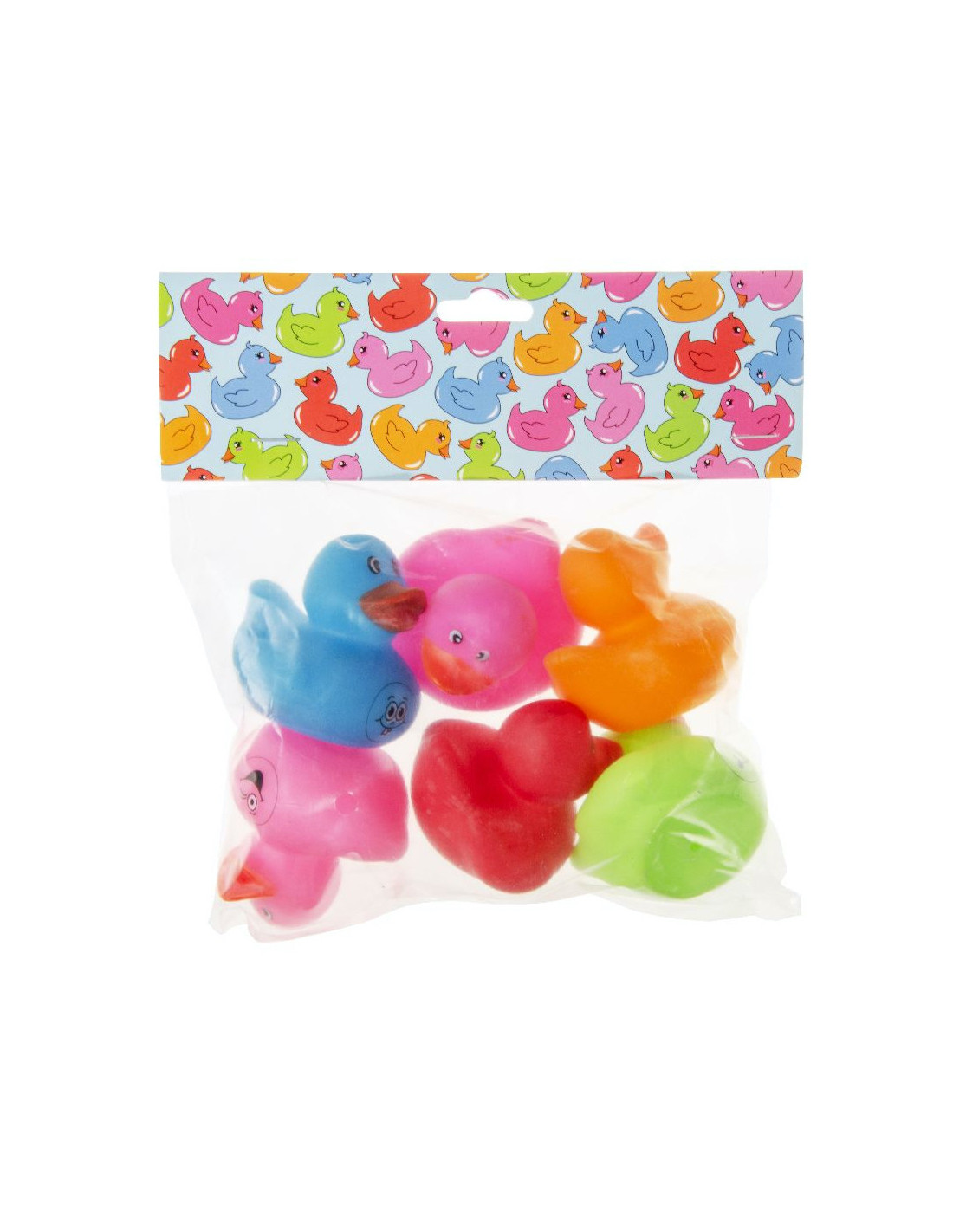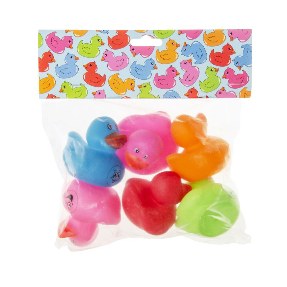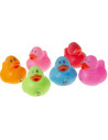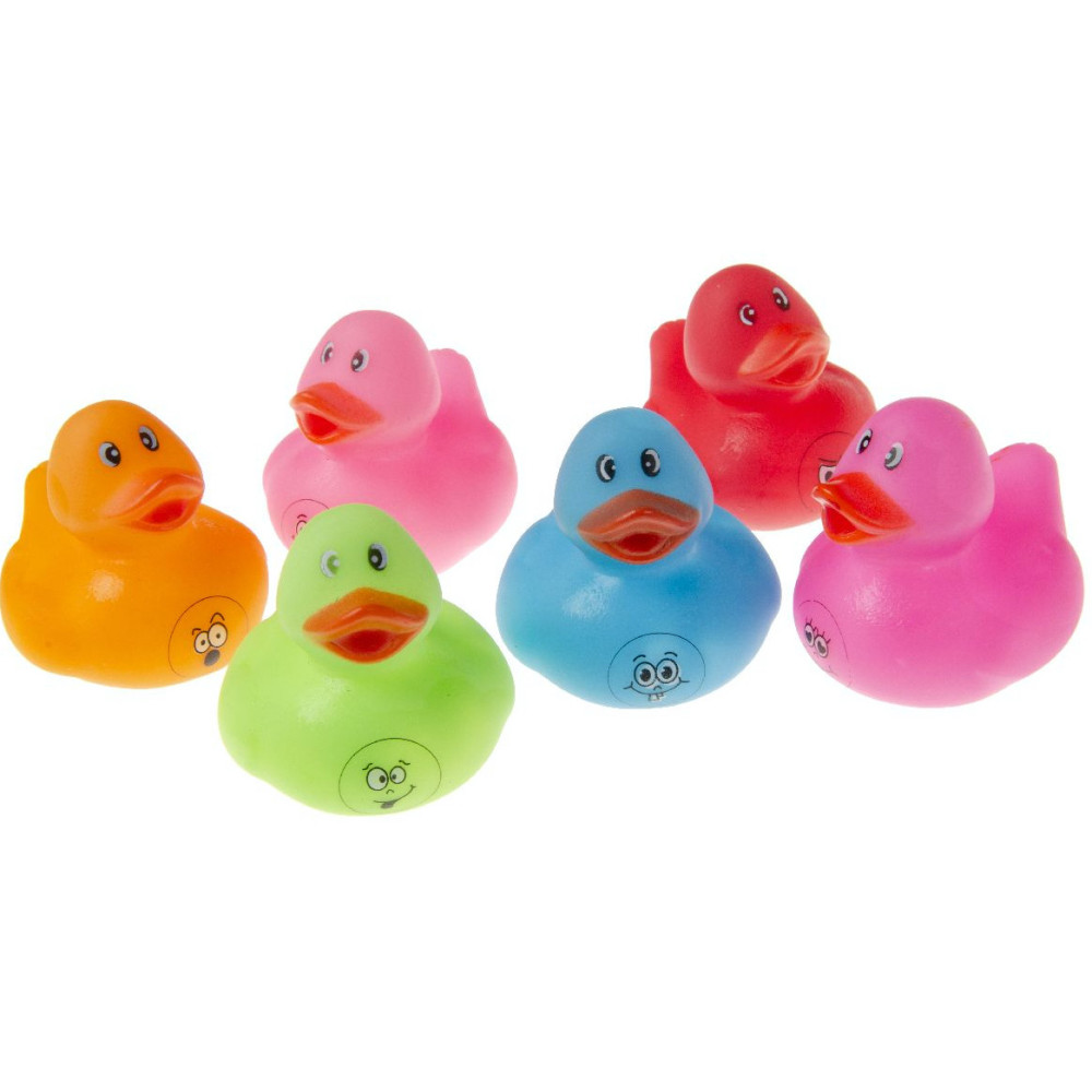 De set bevat verschillende badeendjes met een vrolijk gezichtje in verschillende kleuren. Je kunt dus afwisselen en steeds een andere badeend kiezen om mee te spelen in bad. Door het kleine formaat van de badeendjes zijn ze makkelijk vast te houden en kunnen ze gemakkelijk mee in bad genomen worden.