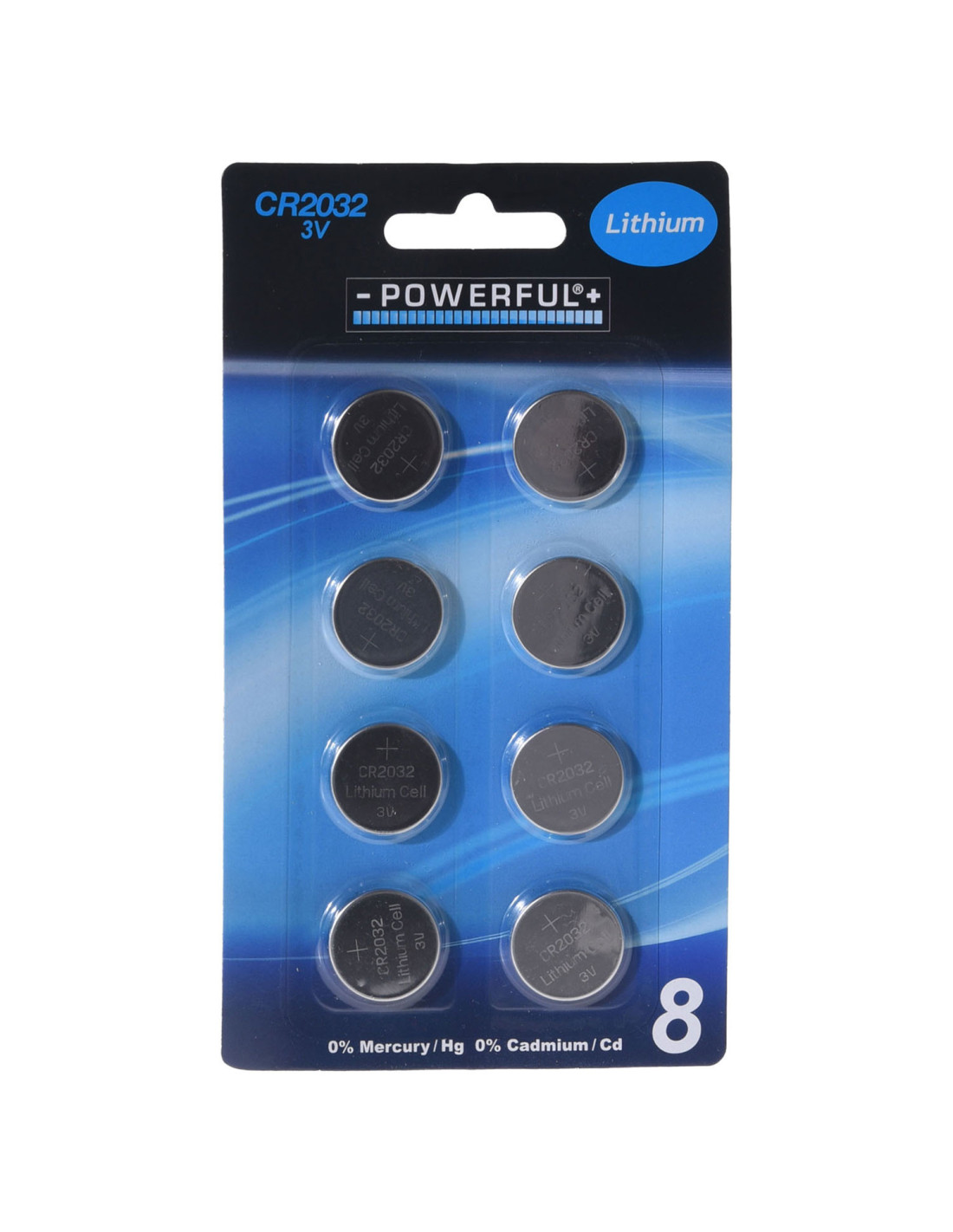 Set van 8 stuks knoopcelbatterijen. Alkaline, 3 volt, CR2032.